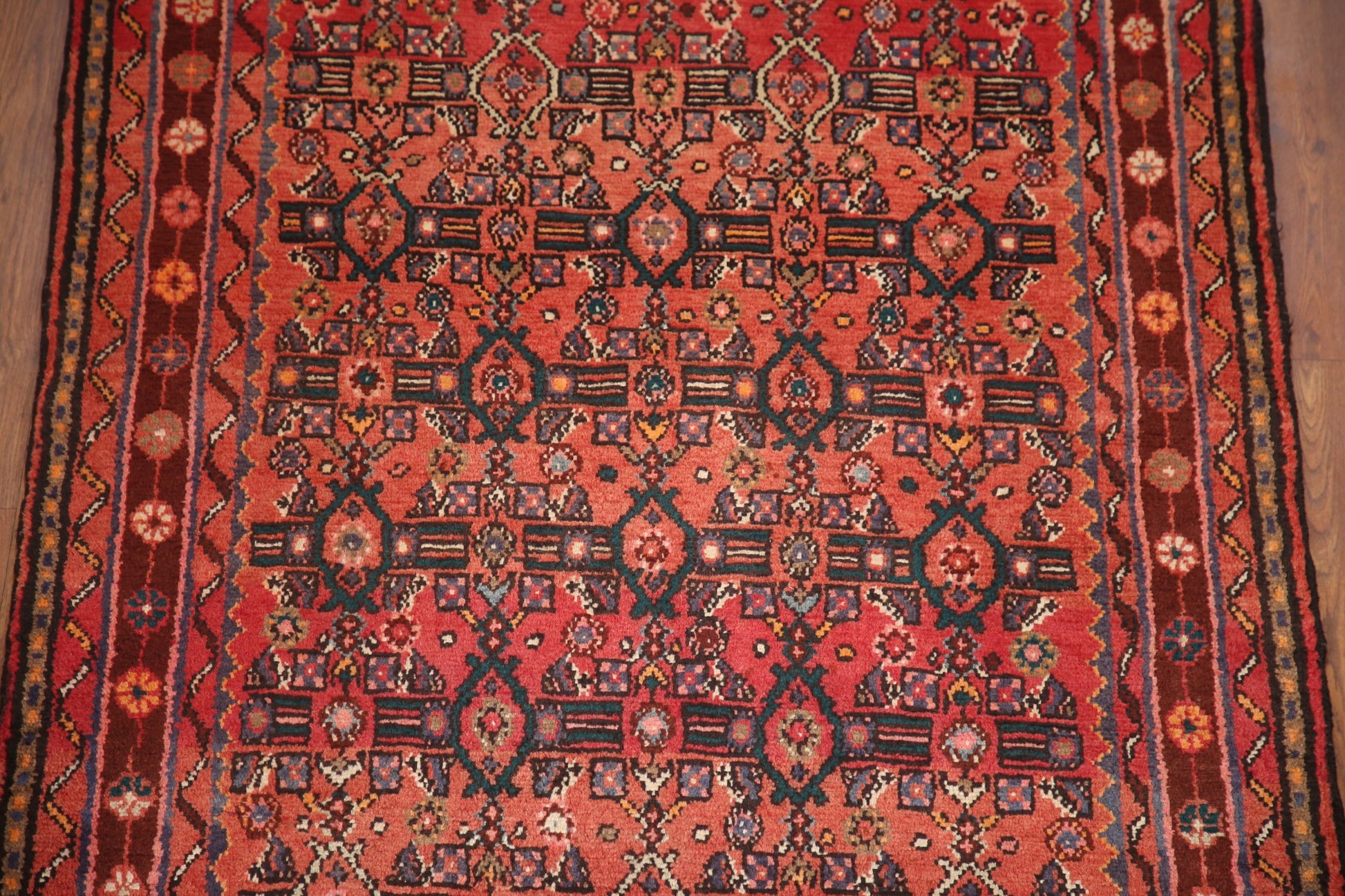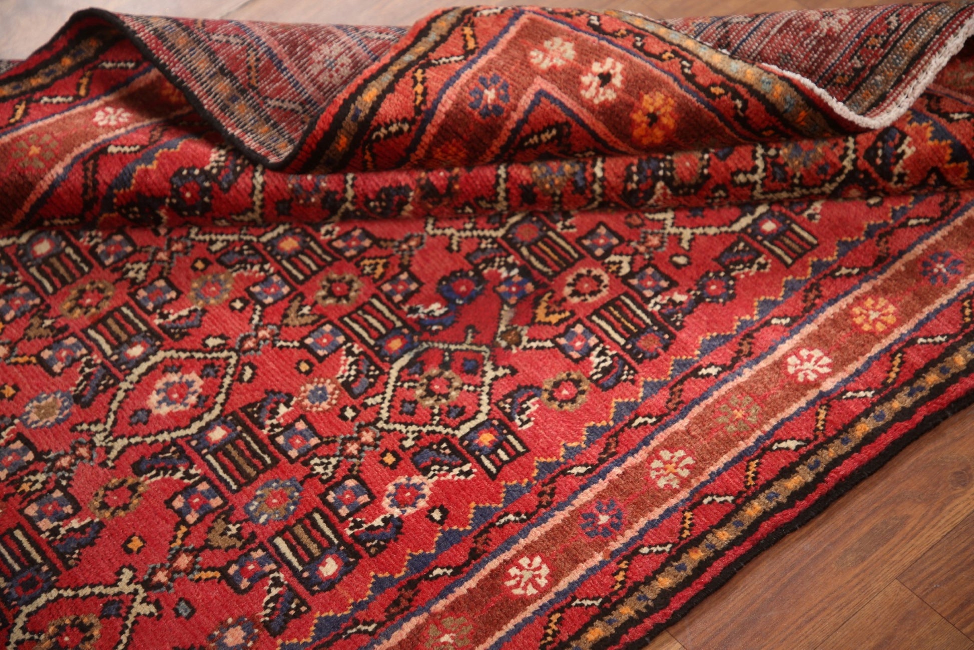 A Beautiful Genuine Persia ( Persia ) Mahal rug is Hand Knotted by skillful weavers in Persia ( Persia ) with 100% Wool Material. This rug is in Very Good condition. dimensions are 9' 8'' X 3' 6'' in foot and 295 X 107 in centimeter. the primary color is Red.