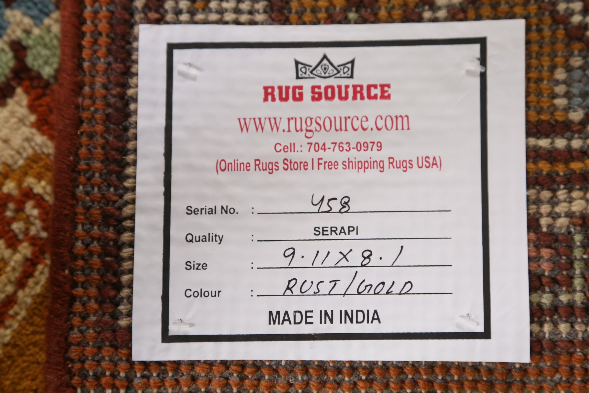 A Beautiful Genuine India Heriz (serapi) rug is Hand Knotted by skillful weavers in India with 100% Wool Material. This rug is in New, First Quality condition. dimensions are 9' 11'' X 8' 1'' in foot and  302 X 246 in centimeter. the primary color is Oranges & Rust.