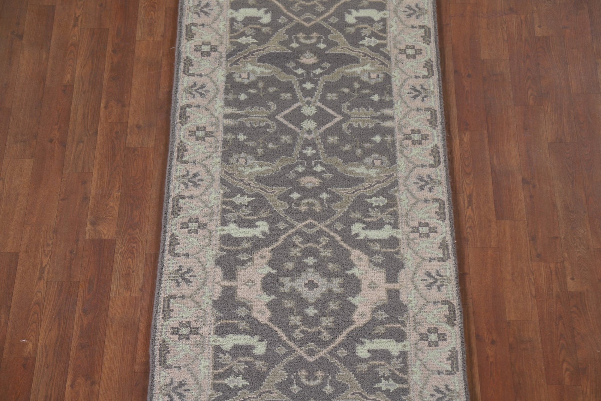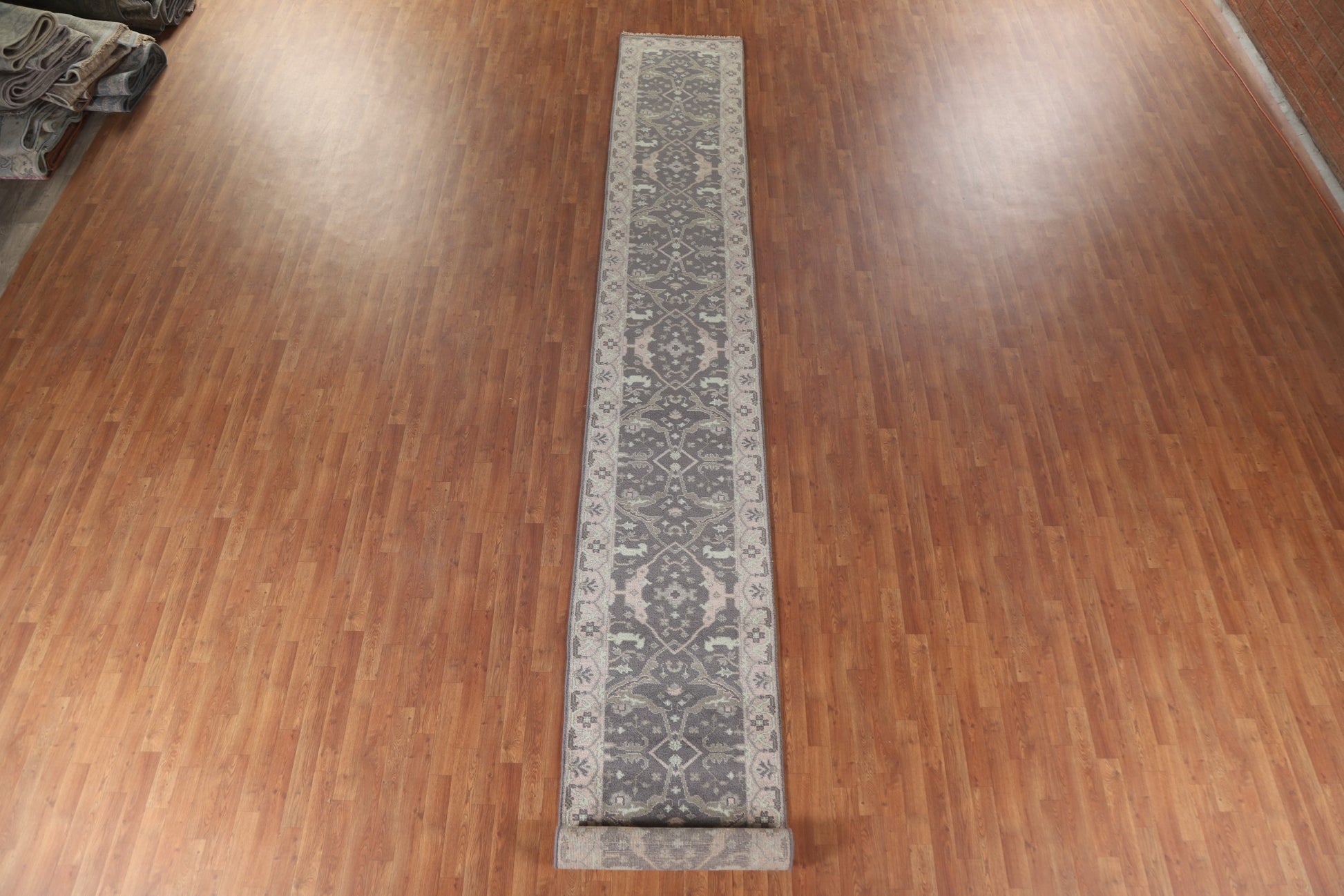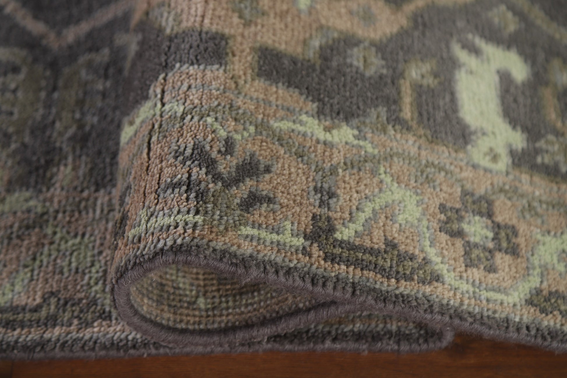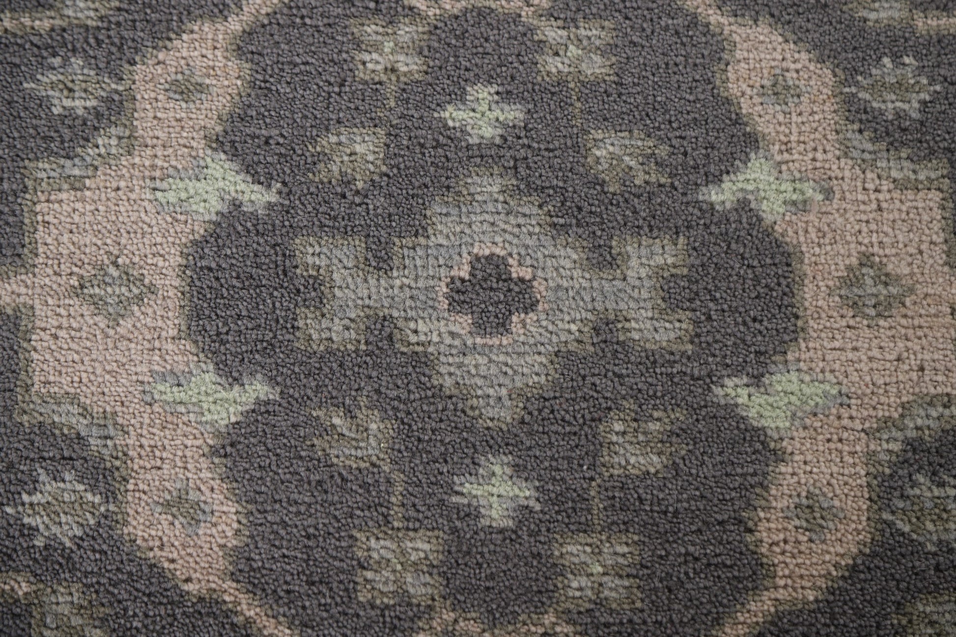 A Beautiful Genuine India Oushak rug is Hand Knotted by skillful weavers in India with 100% Wool Material. This rug is in New, First Quality condition. dimensions are 19' 8'' X 2' 8'' in foot and 599 X 81 in centimeter. the primary color is Greys & Charcoal.