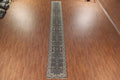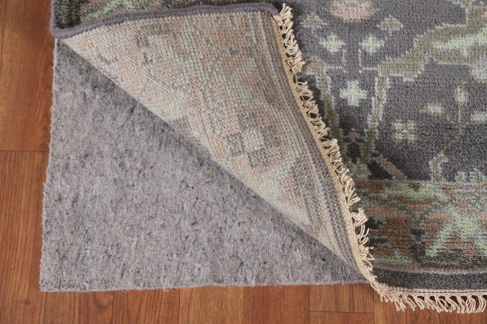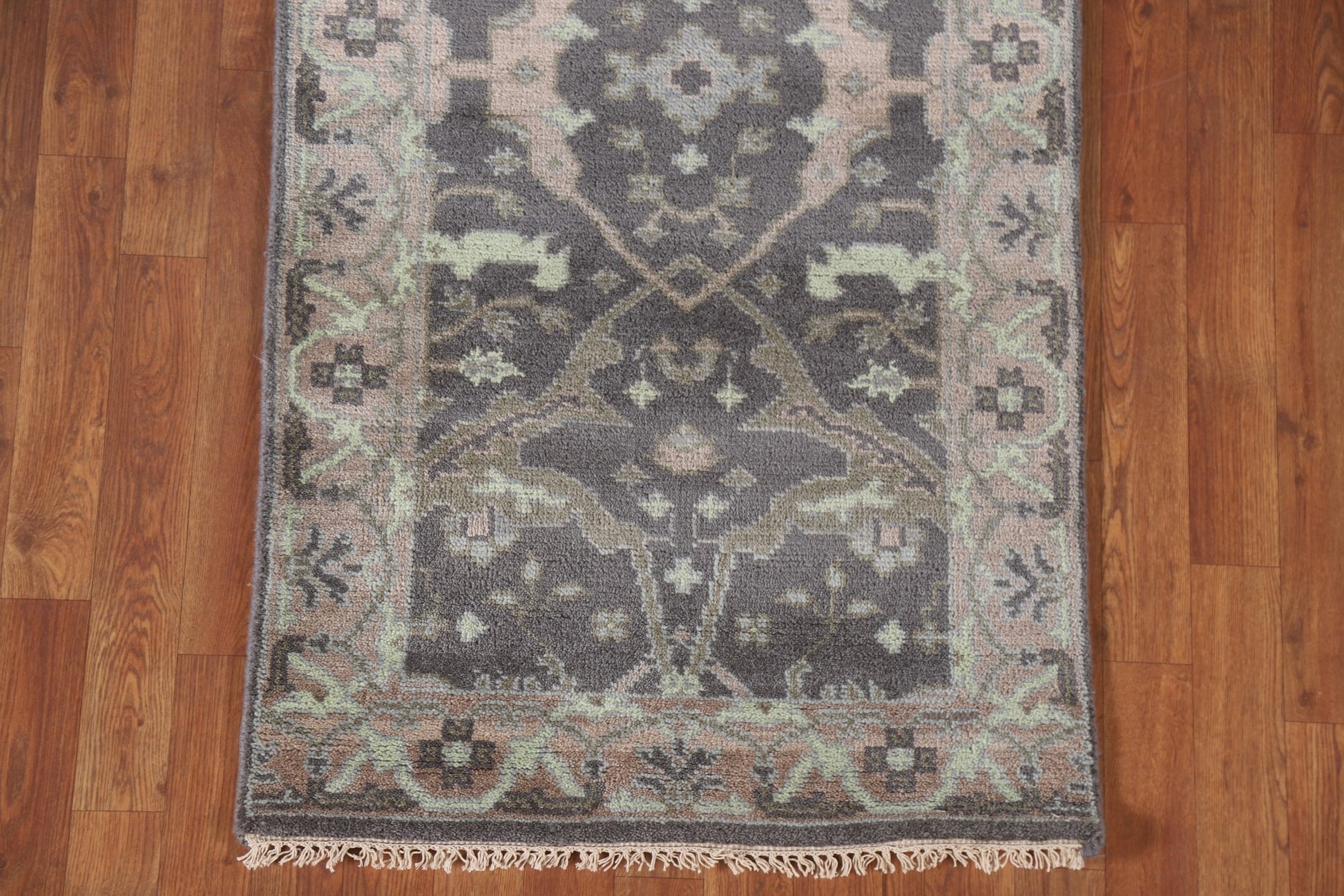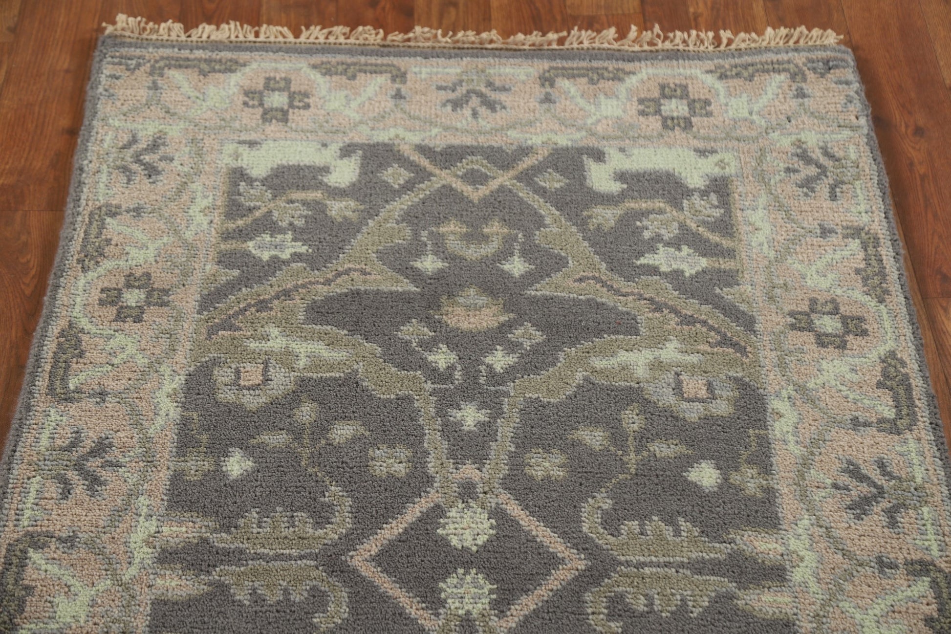 A Beautiful Genuine India Oushak rug is Hand Knotted by skillful weavers in India with 100% Wool Material. This rug is in New, First Quality condition. dimensions are 19' 8'' X 2' 8'' in foot and 599 X 81 in centimeter. the primary color is Greys & Charcoal.