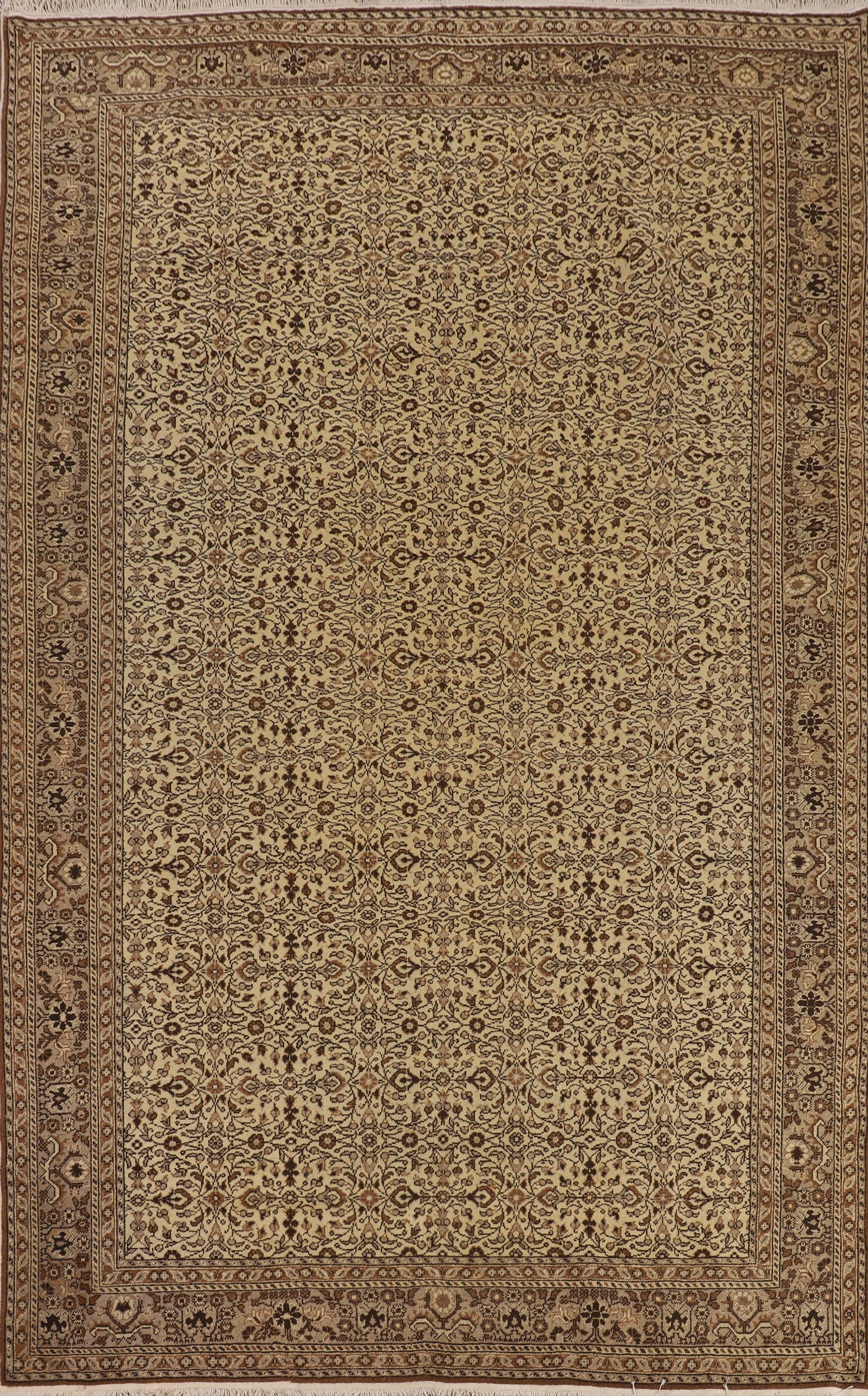 A Beautiful Genuine Turkey Anatolian rug is Hand Knotted by skillful weavers in Turkey with 100% Wool Material. This rug is in Very Good condition. dimensions are 9' 10'' X 6' 7'' in foot and 300 X 201 in centimeter. the primary color is Beige & Ivories.