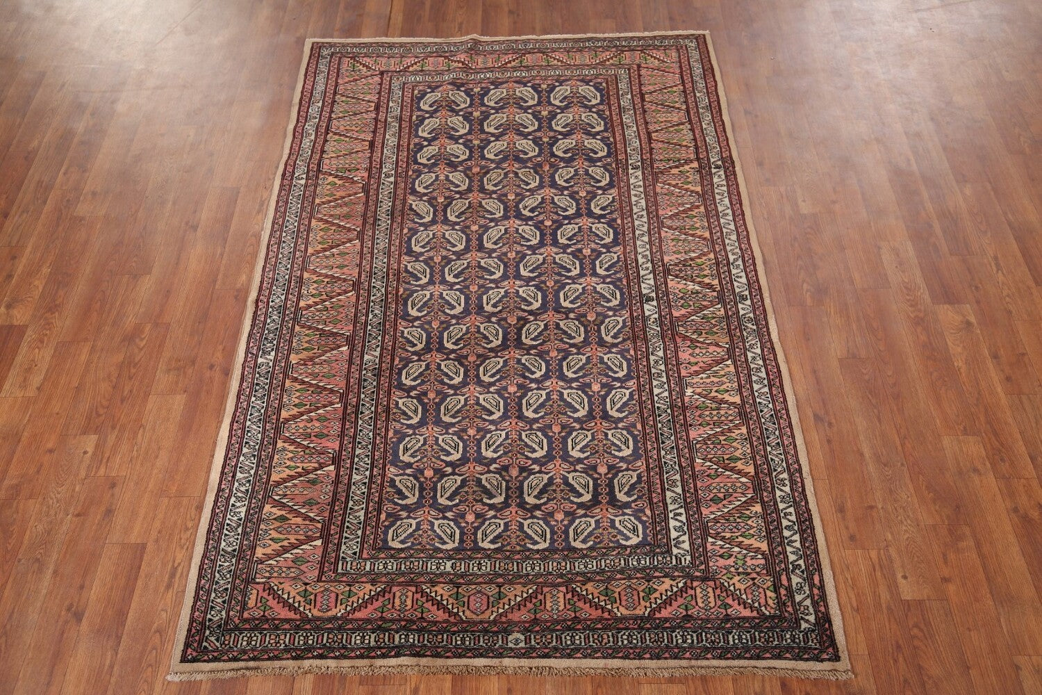 All-Over Wool Vintage Bokhara Oriental Accent Rug 4x6