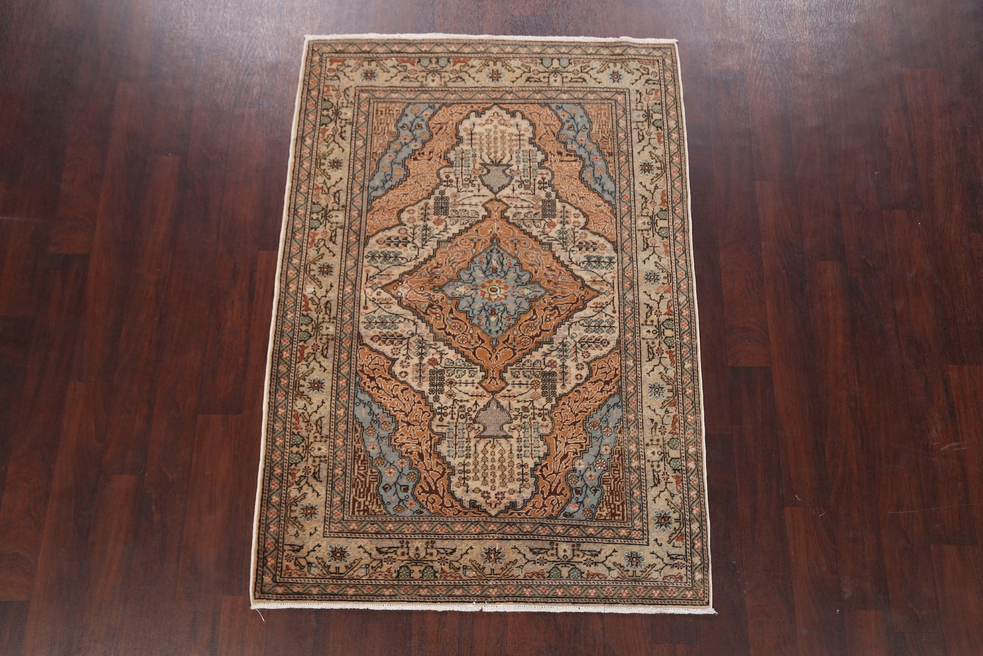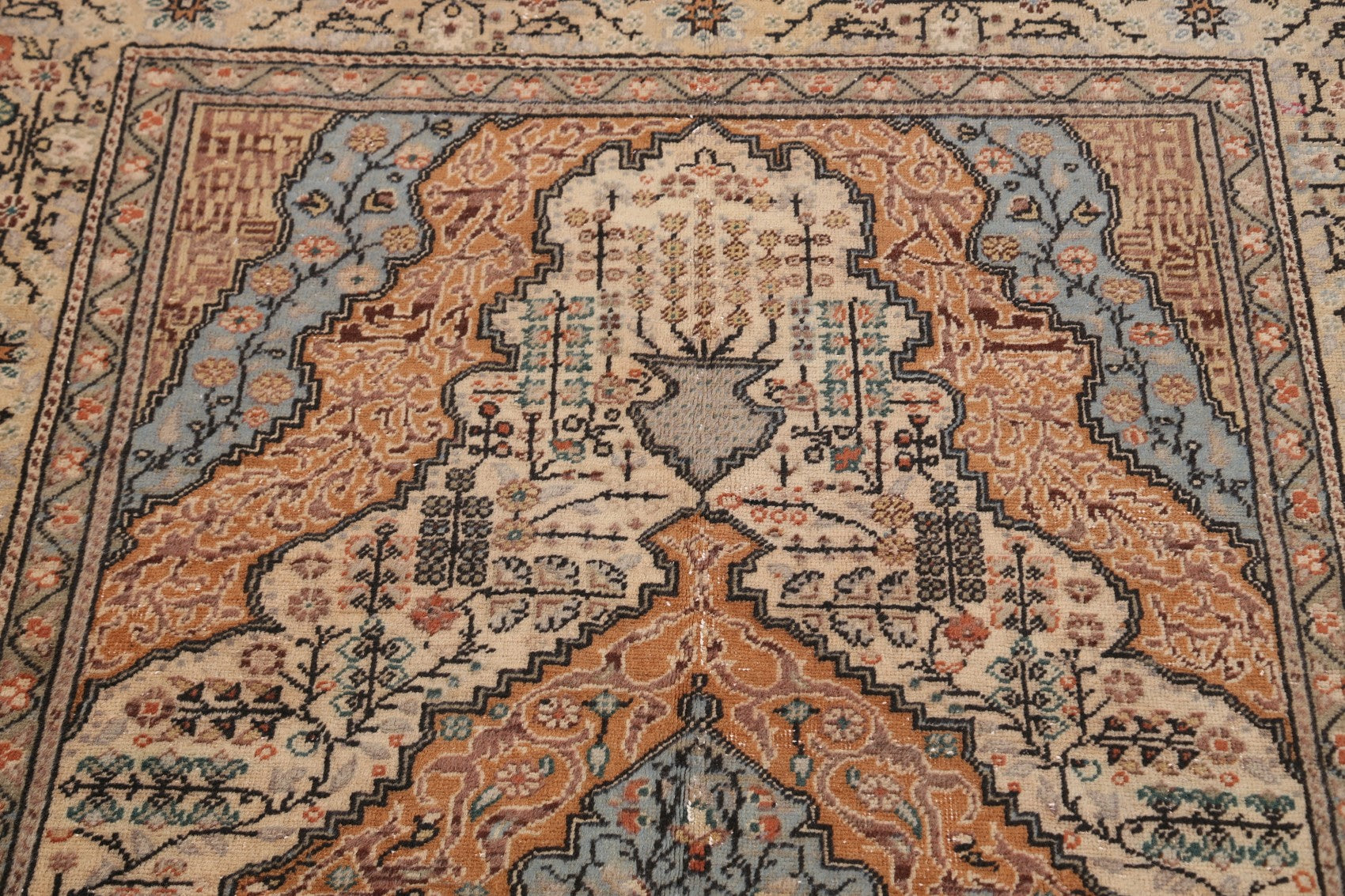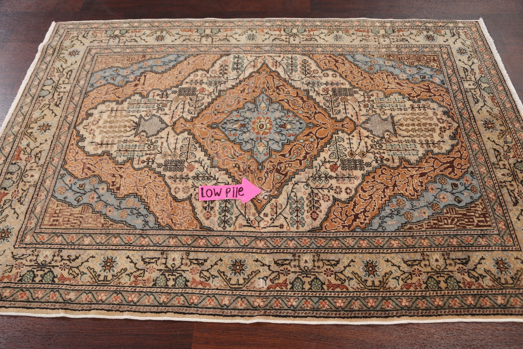 A Beautiful Genuine Turkey Anatolian rug is Hand Knotted by skillful weavers in Turkey with 100% Wool Material. This rug is in Very Good ( Low Pile ) condition. dimensions are 5' 10'' X 3' 9'' in foot and 178 X 114 in centimeter. the primary color is Beige & Ivories.