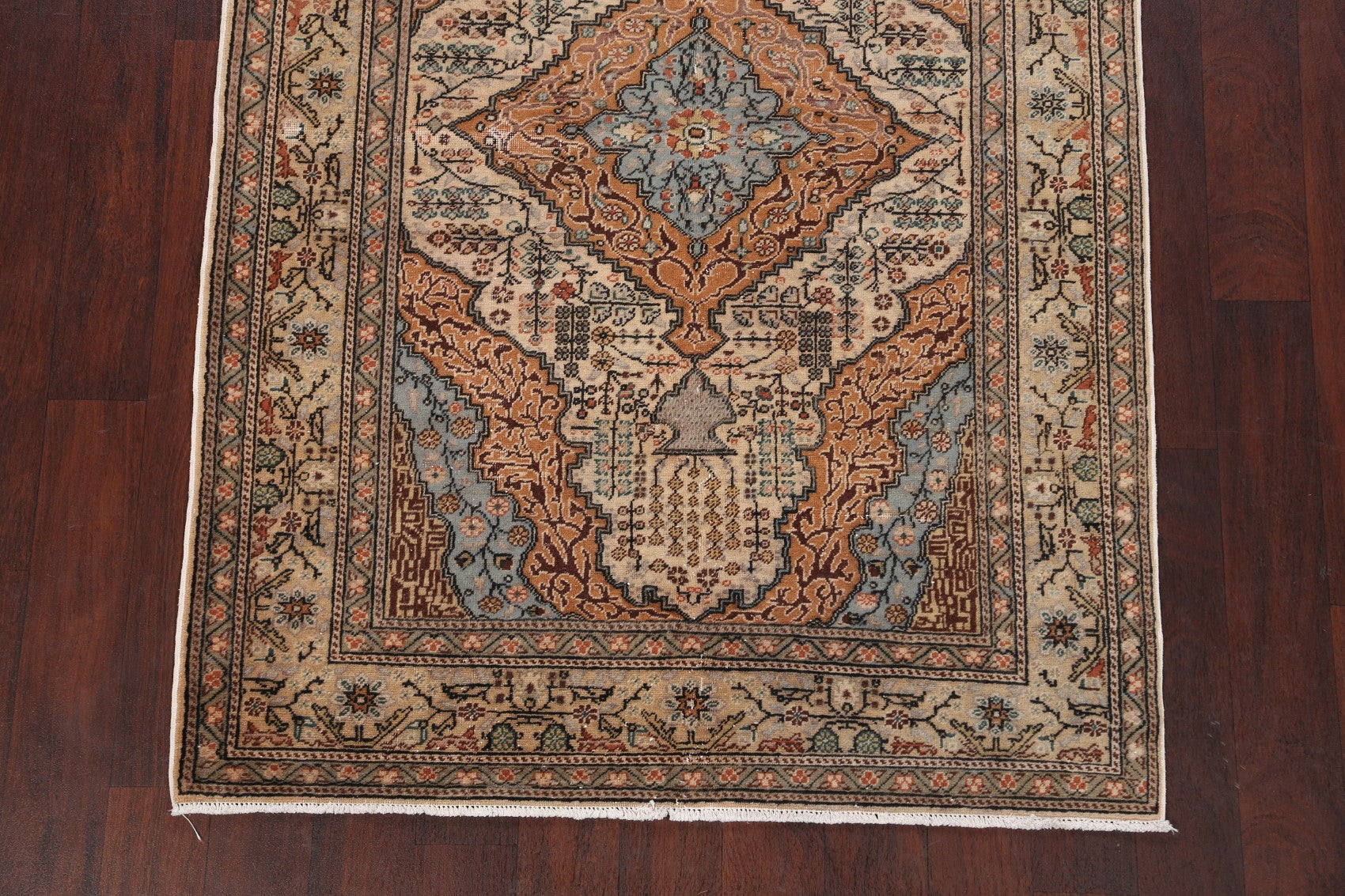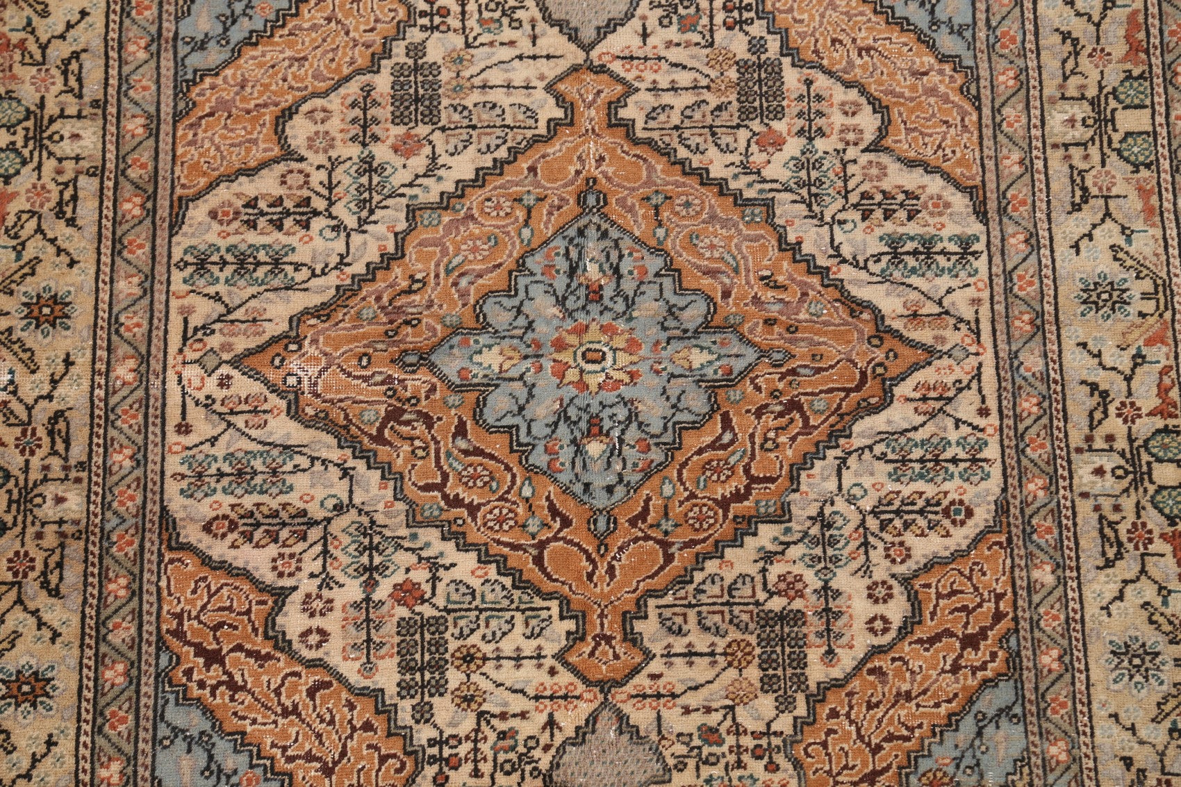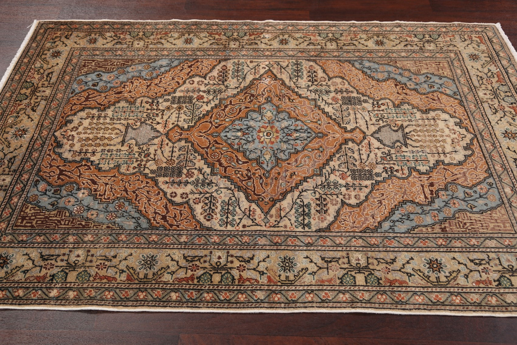 A Beautiful Genuine Turkey Anatolian rug is Hand Knotted by skillful weavers in Turkey with 100% Wool Material. This rug is in Very Good ( Low Pile ) condition. dimensions are 5' 10'' X 3' 9'' in foot and 178 X 114 in centimeter. the primary color is Beige & Ivories.