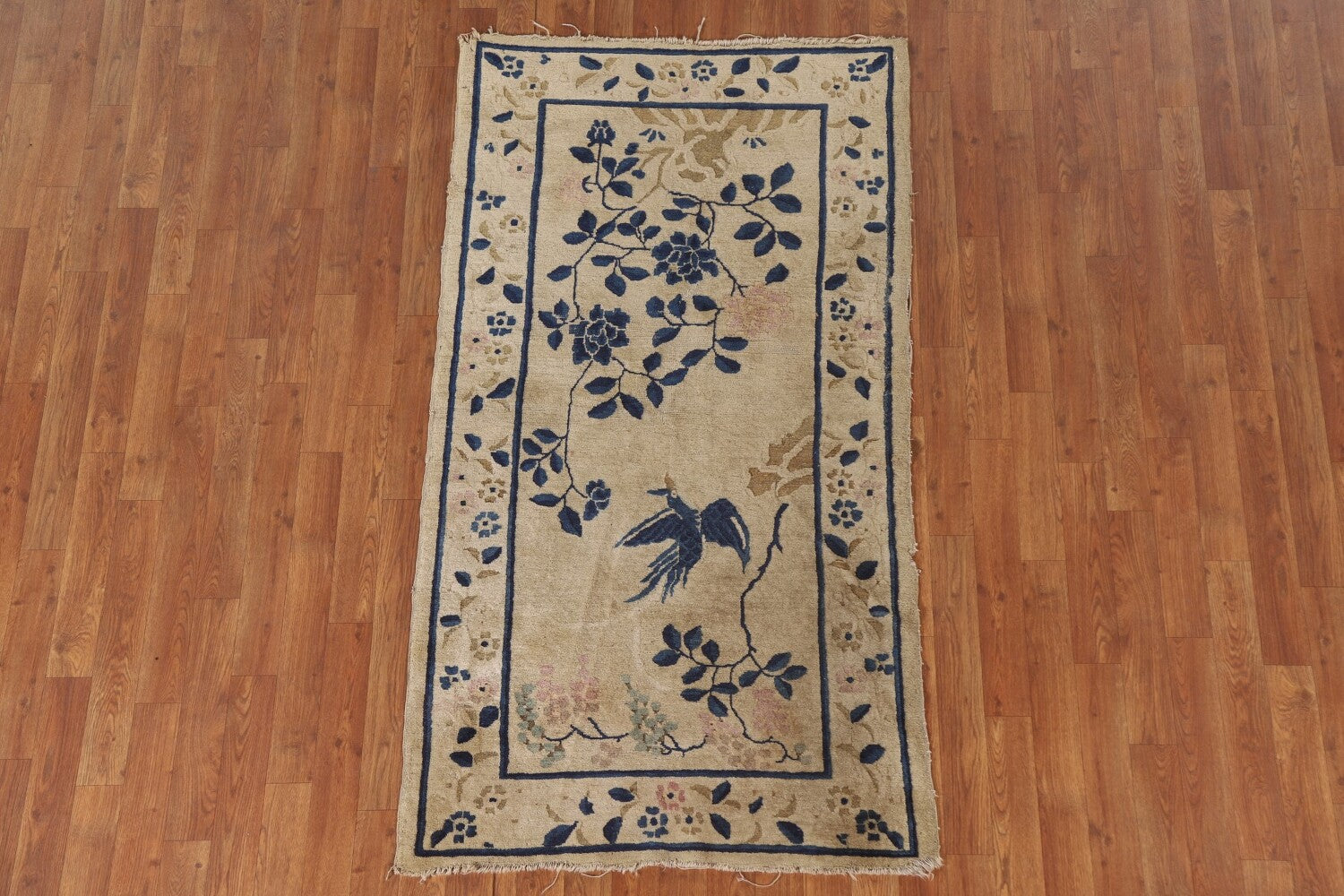 Animal Pictorial Art Deco Vegetable Dye Chinese Rug 3x6