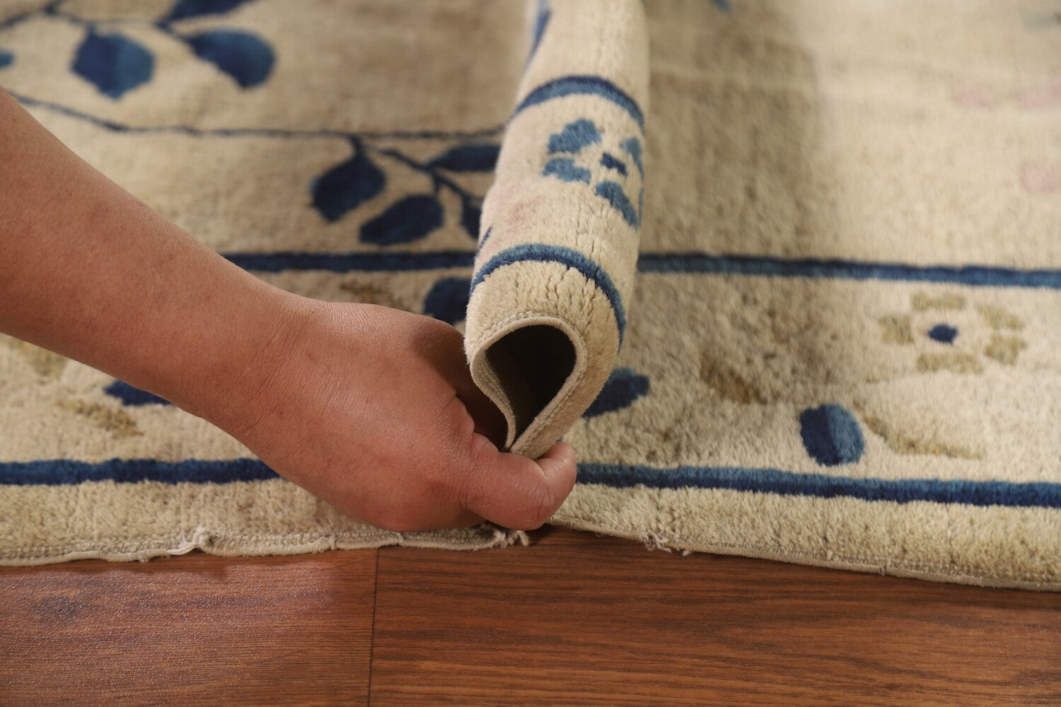 A Beautiful Genuine China Art Deco rug is Hand Knotted by skillful weavers in China with 100% Wool Material. This rug is in Very Good (Evenly Low Pile) condition. dimensions are 5' 9'' X 3' 1'' in foot and 175 X 94 in centimeter. the primary color is Beige & Ivories.