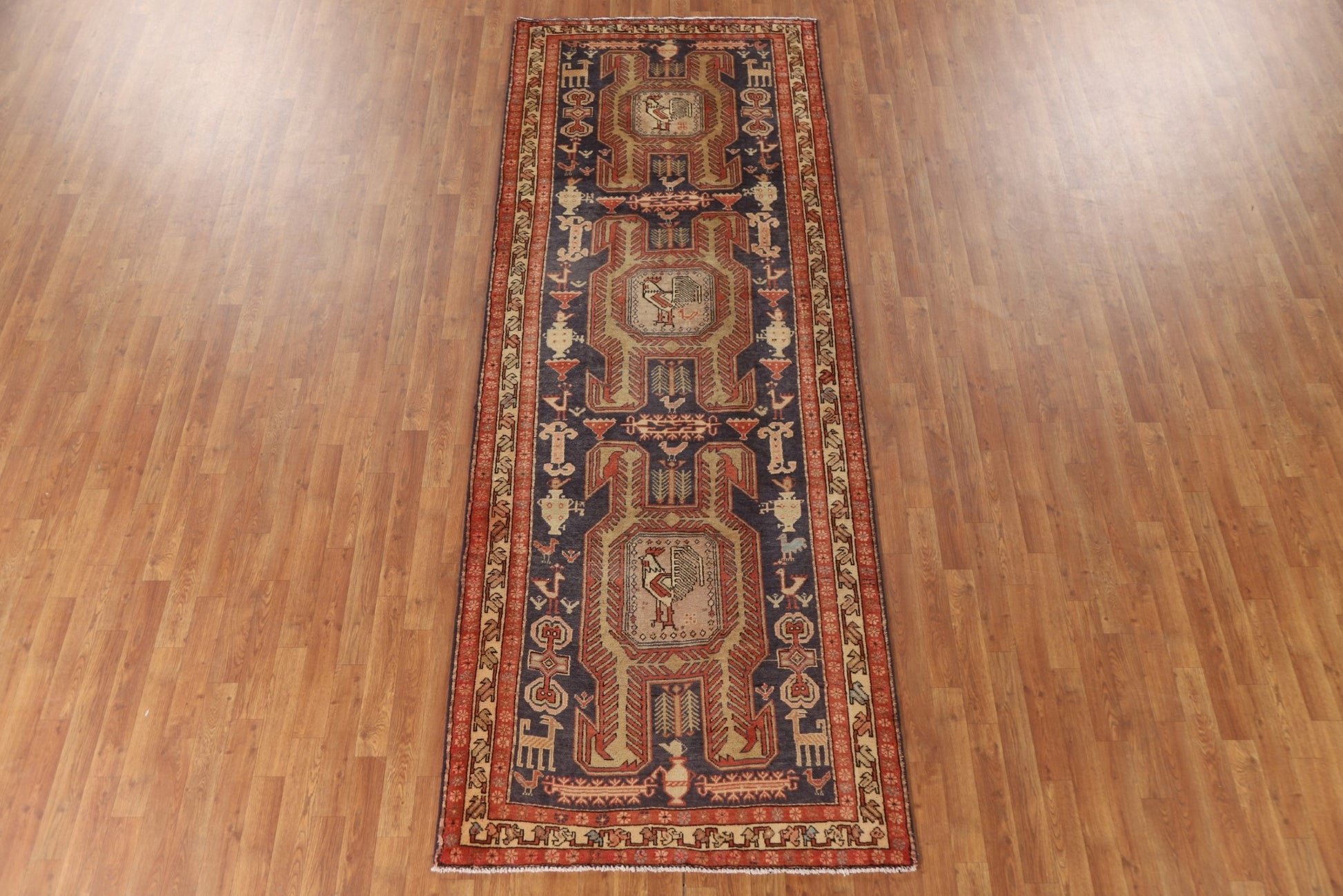 Animal Pictorial Meshkin Persian Runner Rug 4x11