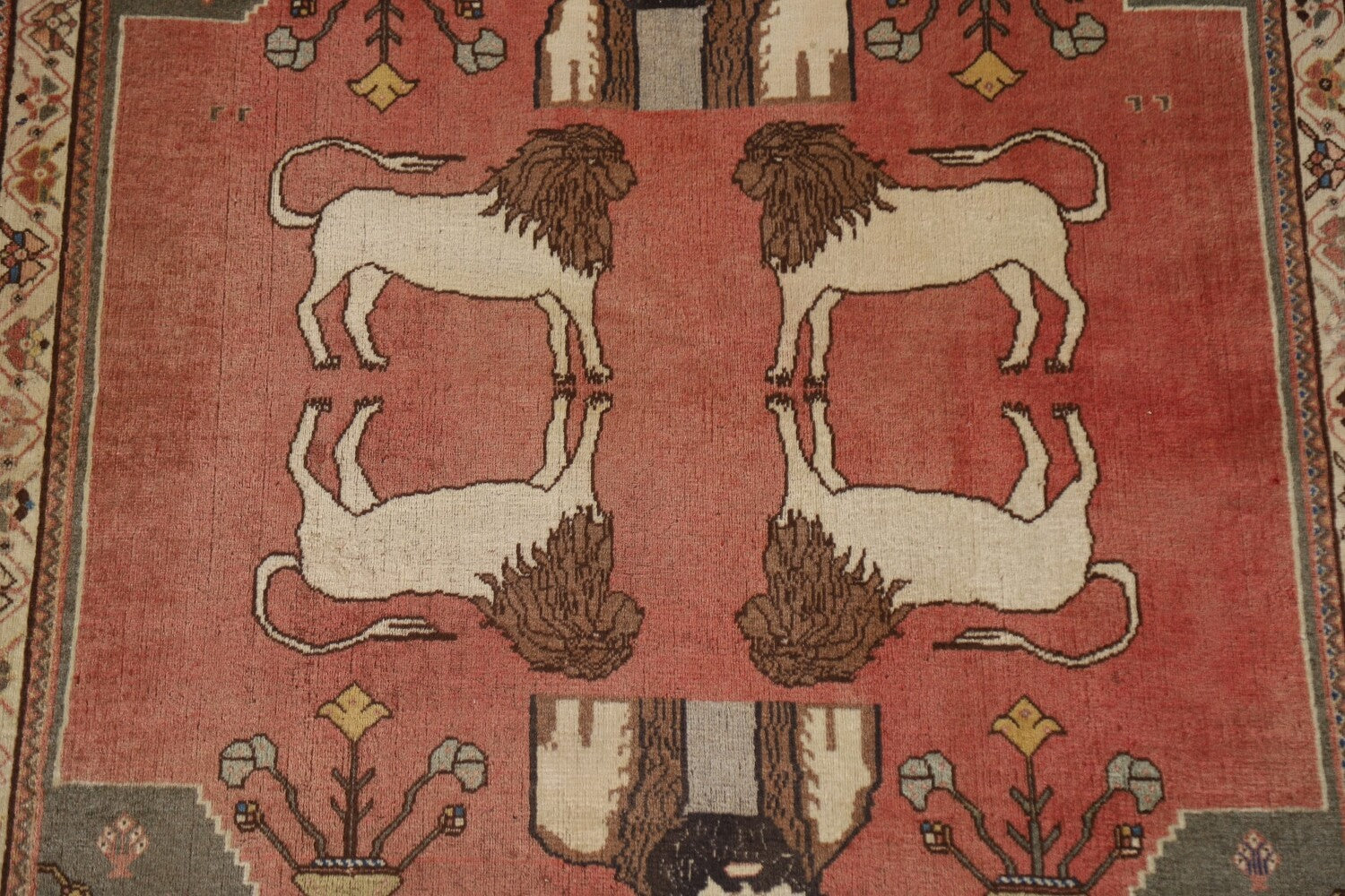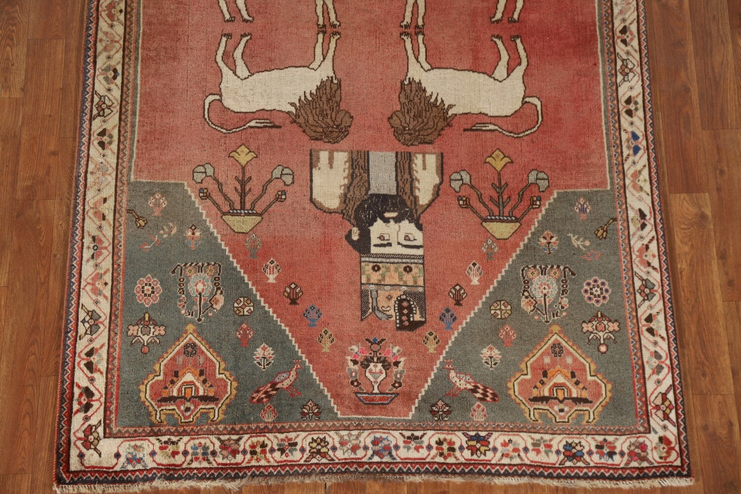 A Beautiful Genuine Persia ( Persia ) Shiraz rug is Hand Knotted by skillful weavers in Persia ( Persia ) with 100% Wool Material. This rug is in Very Good condition. dimensions are 6' 9'' X 4' 3'' in foot and 206 X 130 in centimeter. the primary color is Pink.