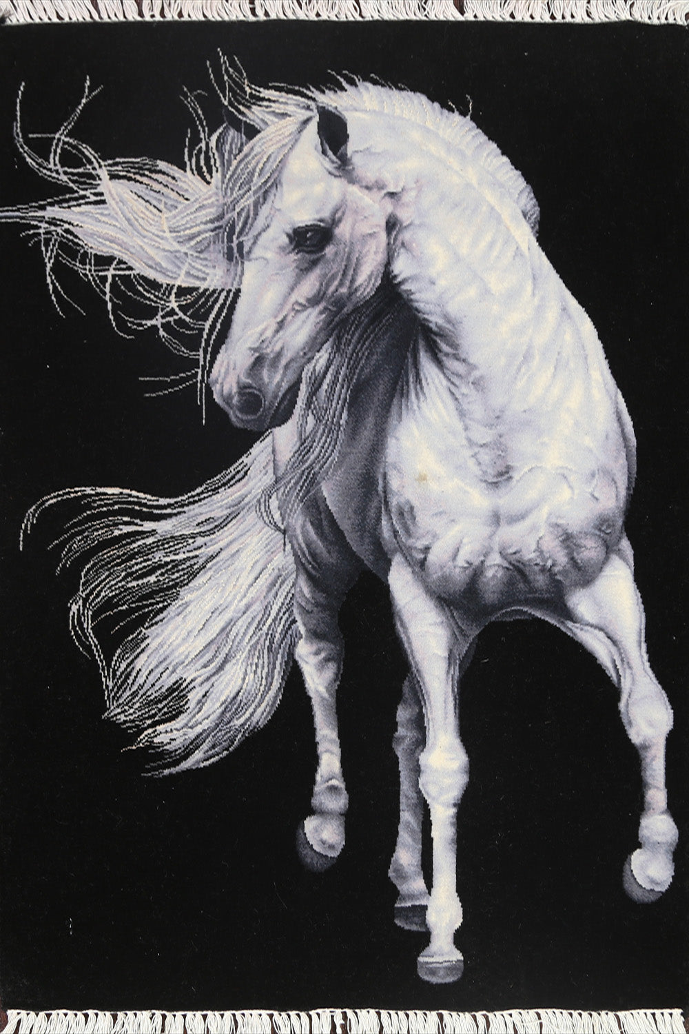 Animal Pictorial Wool/ Silk Tabriz Persian Area Rug 2x3