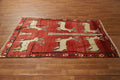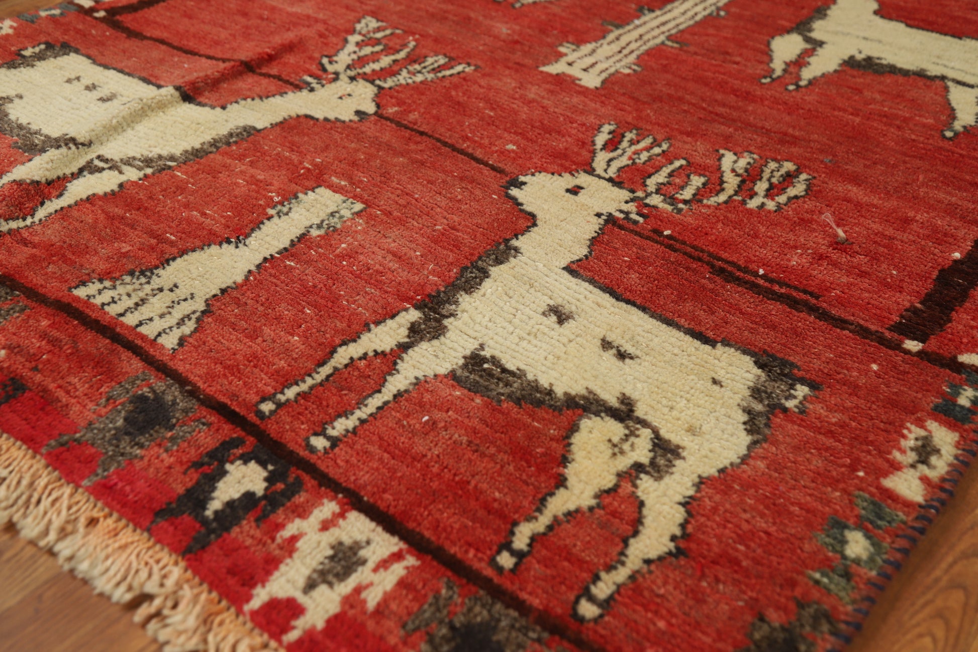 A Beautiful Genuine Persia ( Persia ) Gabbeh (Qashqai) rug is Hand Knotted by skillful weavers in Persia ( Persia ) with 100% Wool Material. This rug is in Very Good (Abrash) condition. dimensions are 5' 9'' X 3' 4'' in foot and 175 X 102 in centimeter. the primary color is Red.
