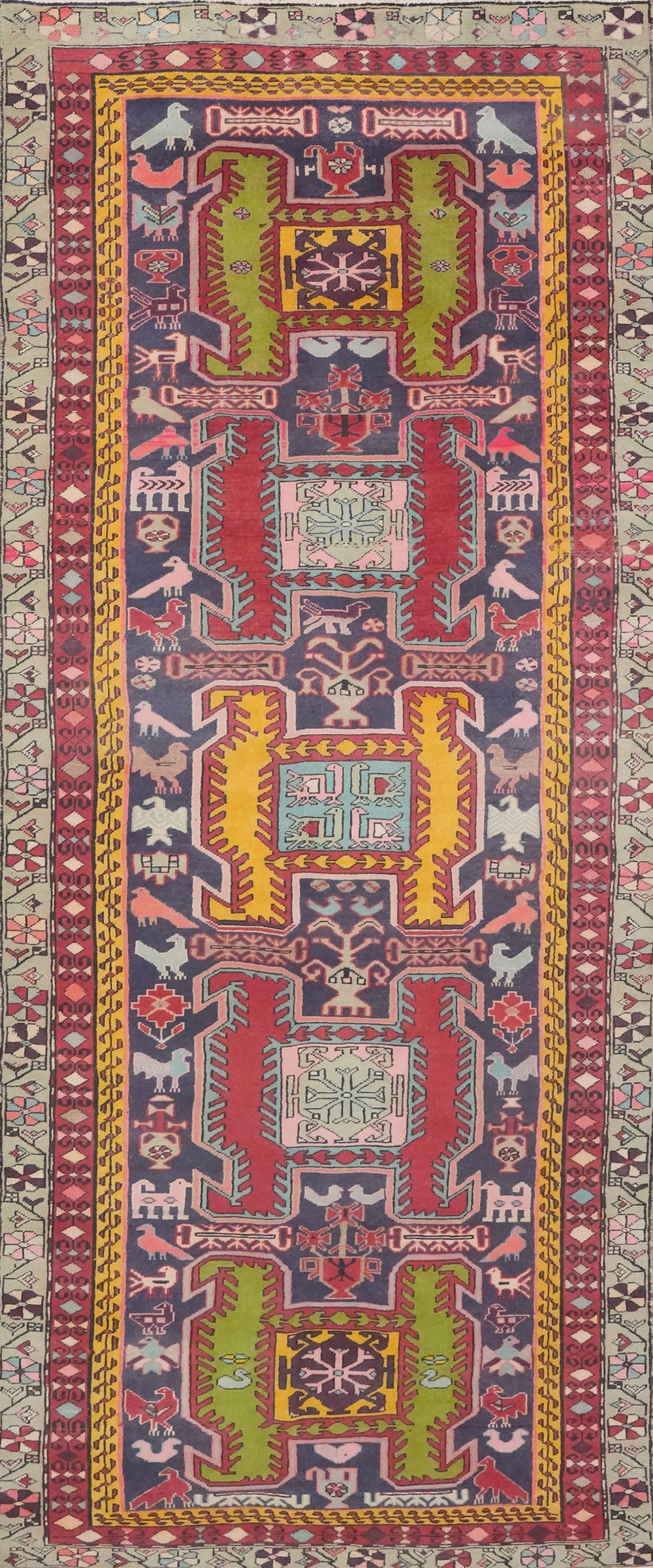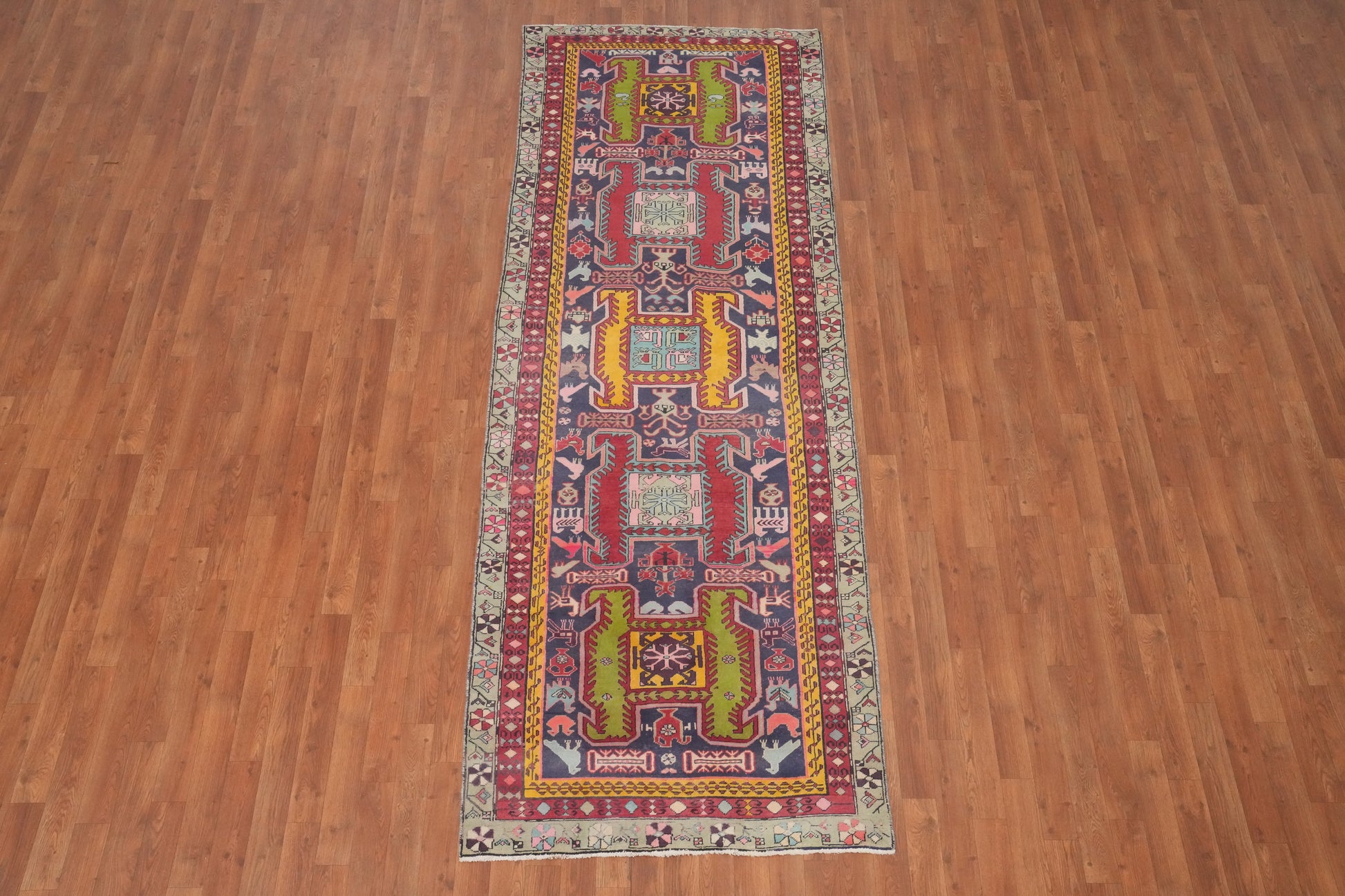 Animals Design Wool Meshkin Persian Runner Rug 4x10