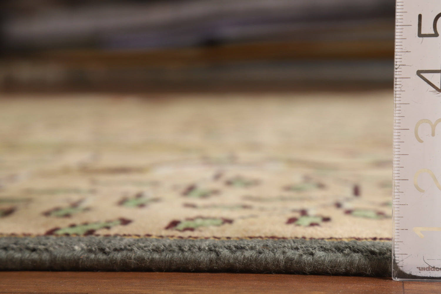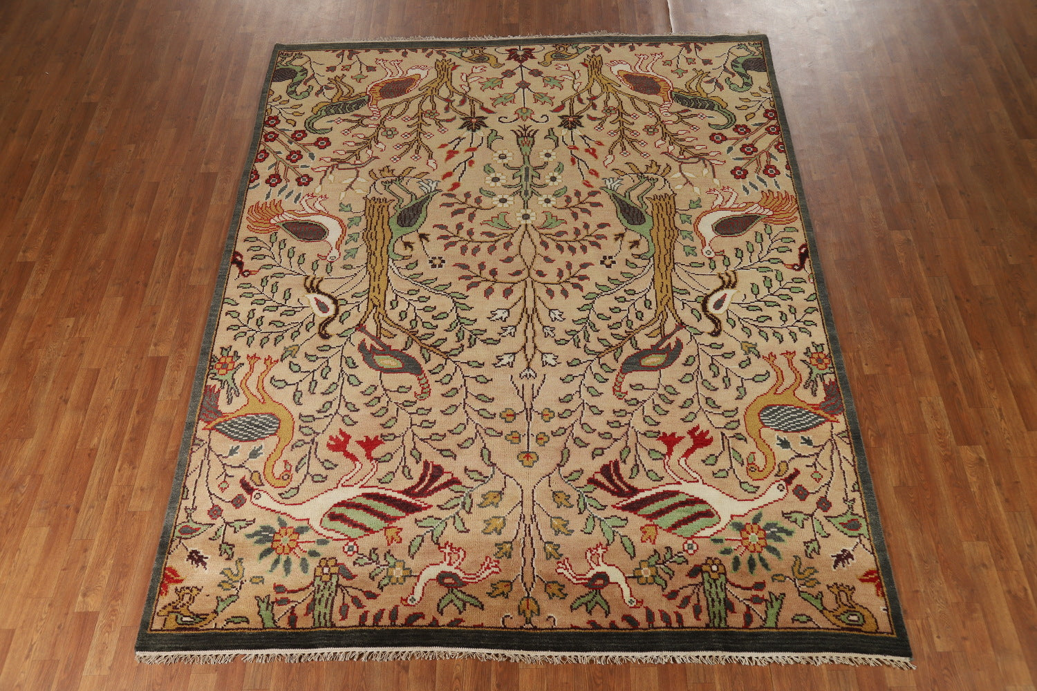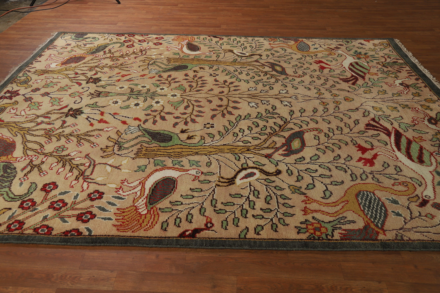 A Beautiful Genuine India Ziegler rug is Hand Knotted by skillful weavers in India with 100% Wool Material. This rug is in New, First Quality condition. dimensions are 9' 10'' X 7' 11'' in foot and 300 X 241 in centimeter. the primary color is Peach.