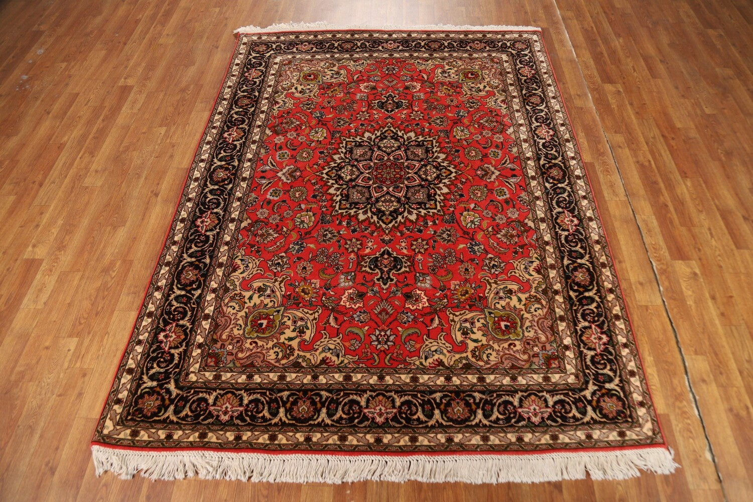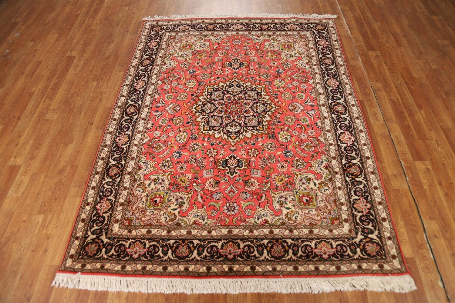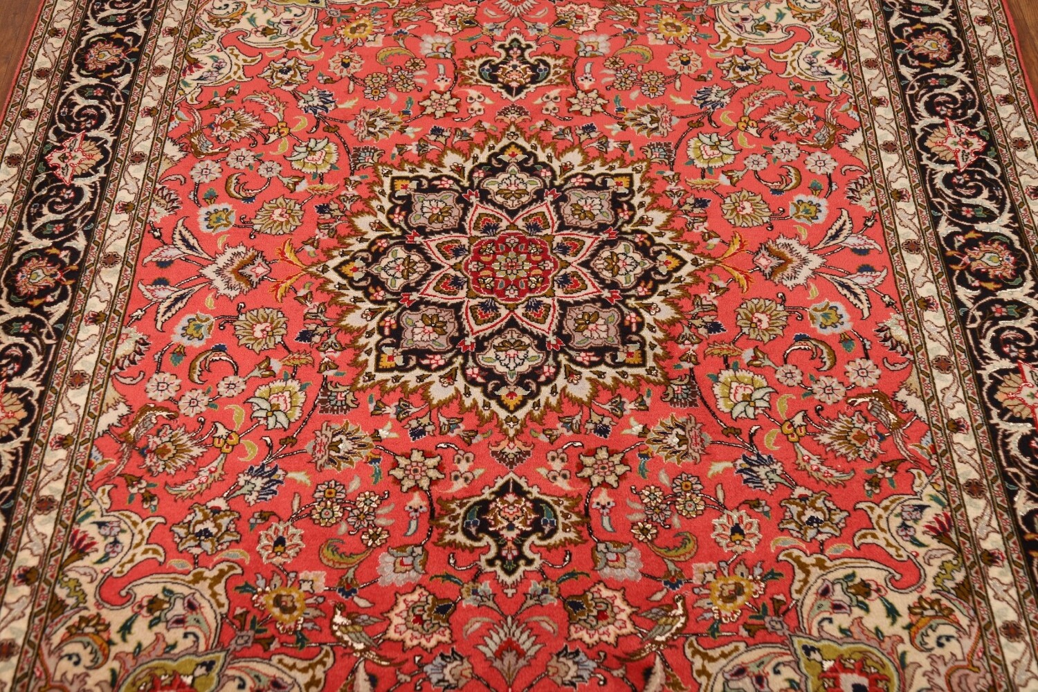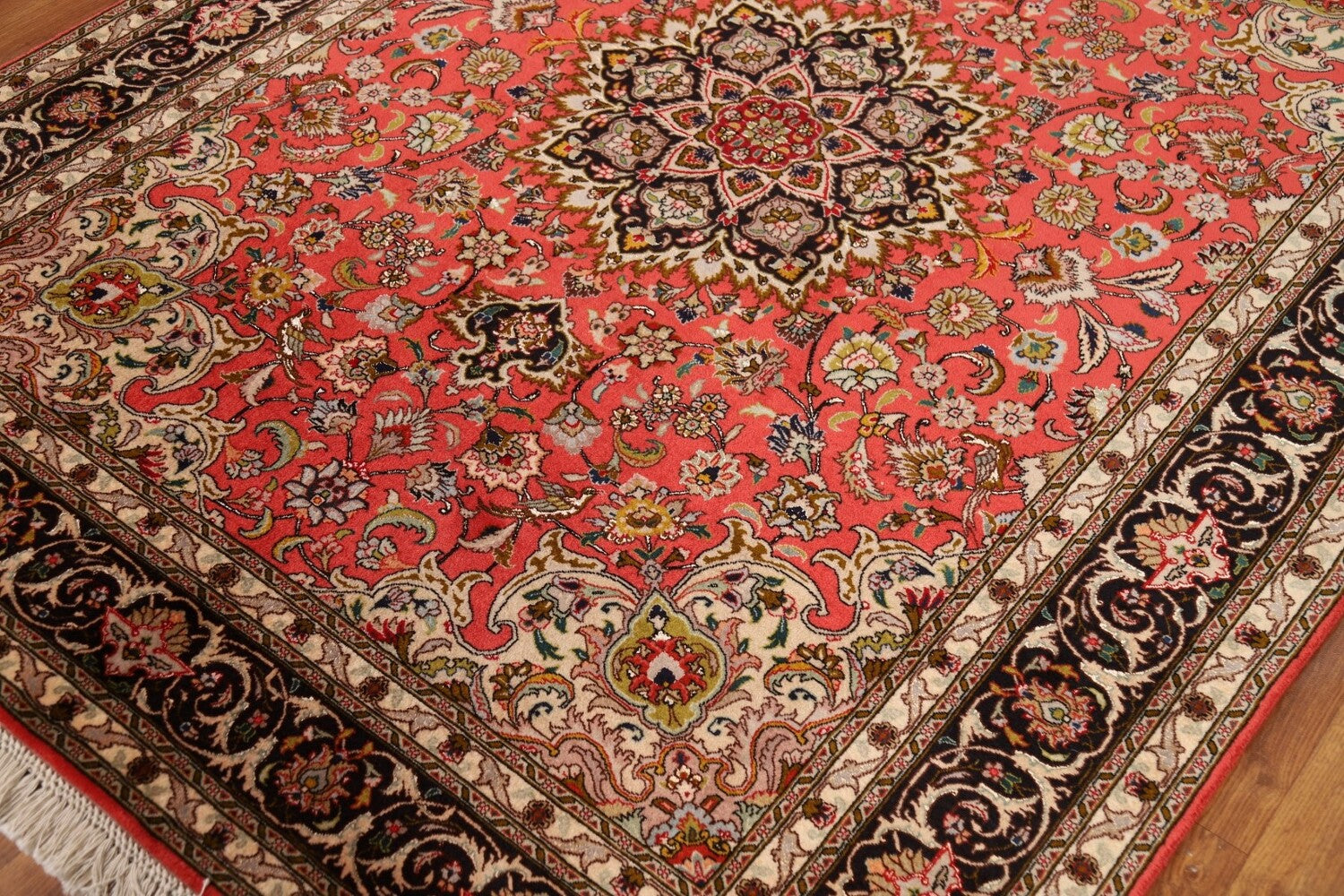 A Beautiful Genuine Persia ( Persia ) Tabriz rug is Hand Knotted by skillful weavers in Persia ( Persia ) with Wool & Silk Material. This rug is in Excellent condition. dimensions are 6' 9'' X 5' 1'' in foot and 206 X 155 in centimeter. the primary color is Red.