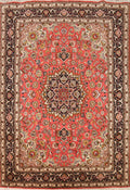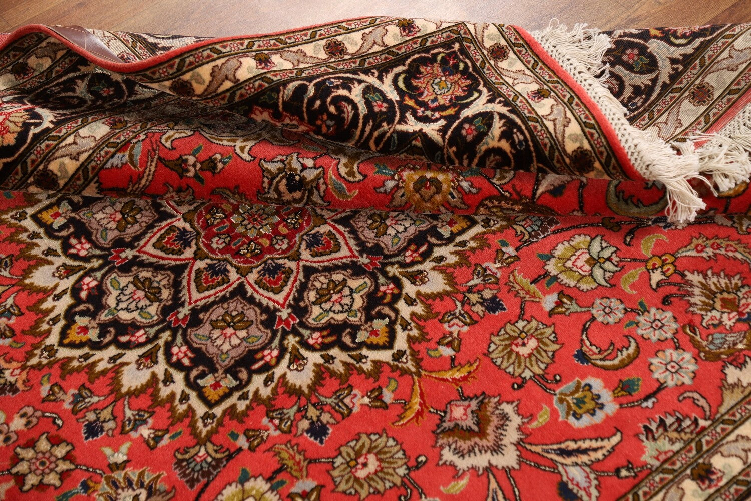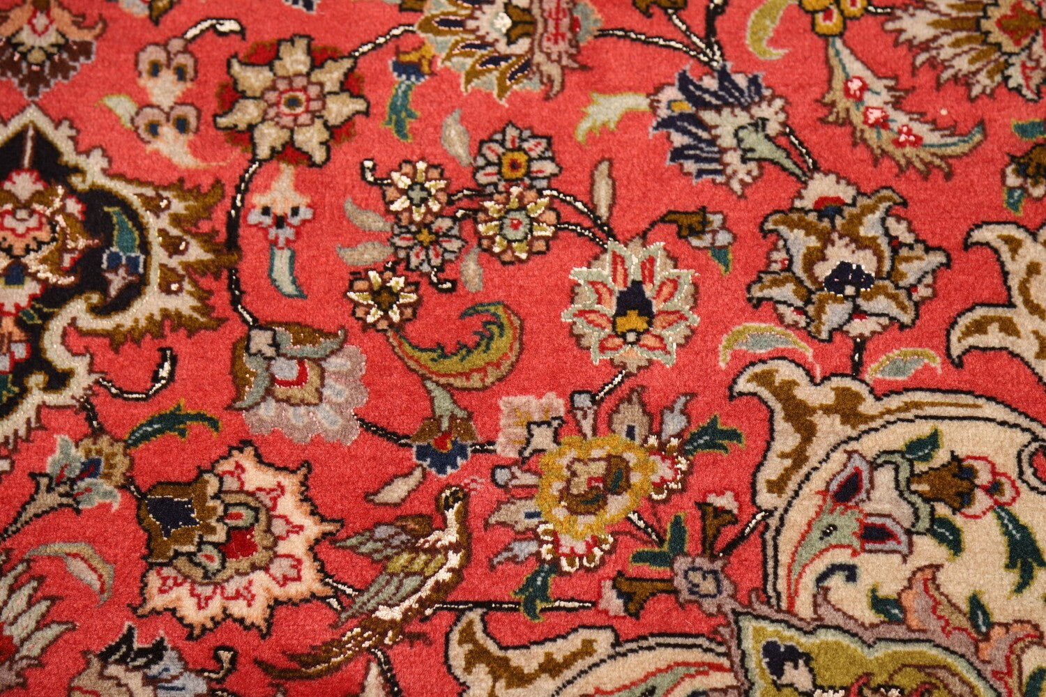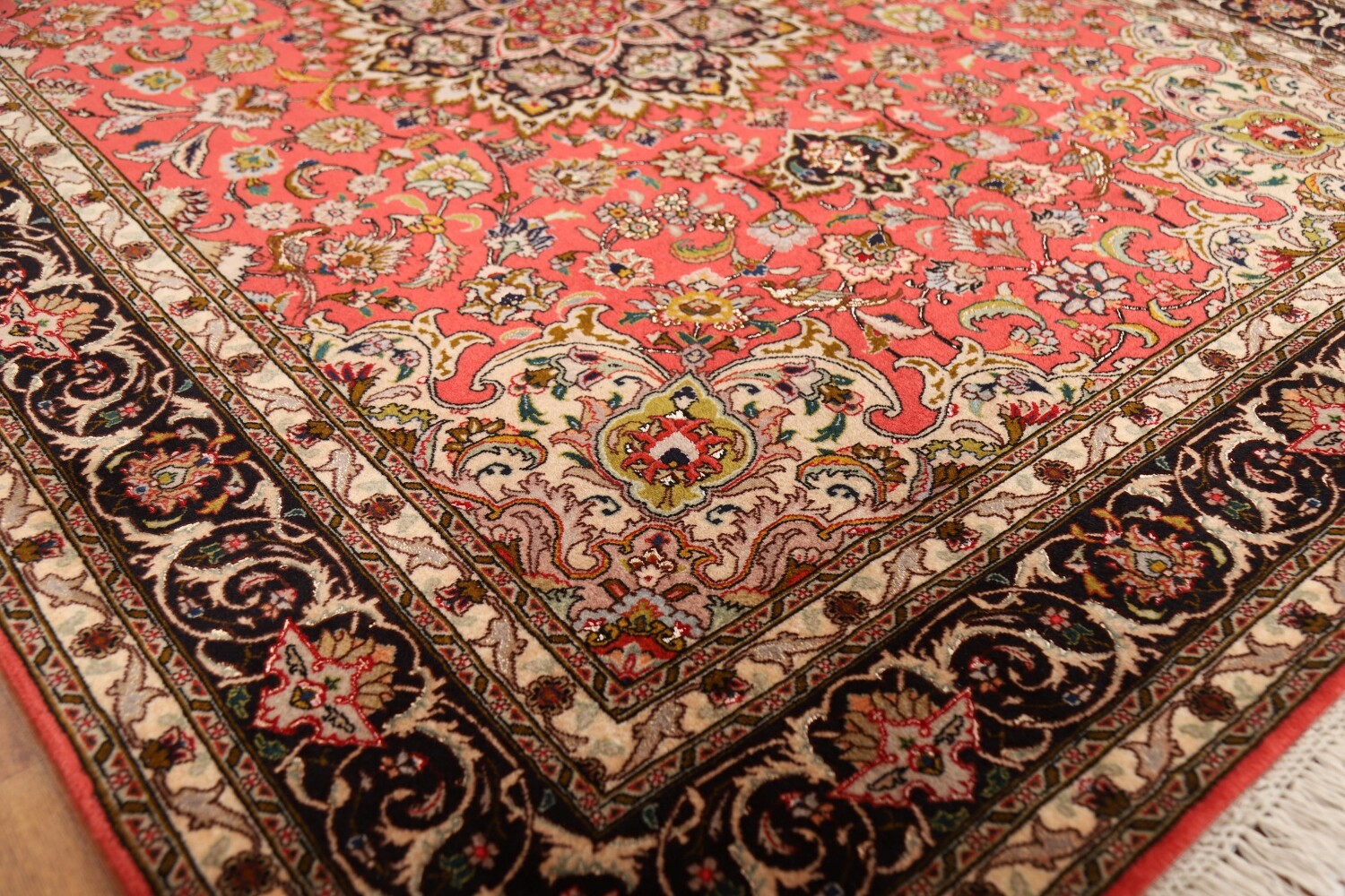 A Beautiful Genuine Persia ( Persia ) Tabriz rug is Hand Knotted by skillful weavers in Persia ( Persia ) with Wool & Silk Material. This rug is in Excellent condition. dimensions are 6' 9'' X 5' 1'' in foot and 206 X 155 in centimeter. the primary color is Red.
