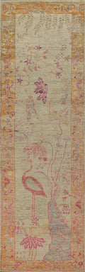 Animals Pictorial Art Deco Turkish Runner Rug 3x13
