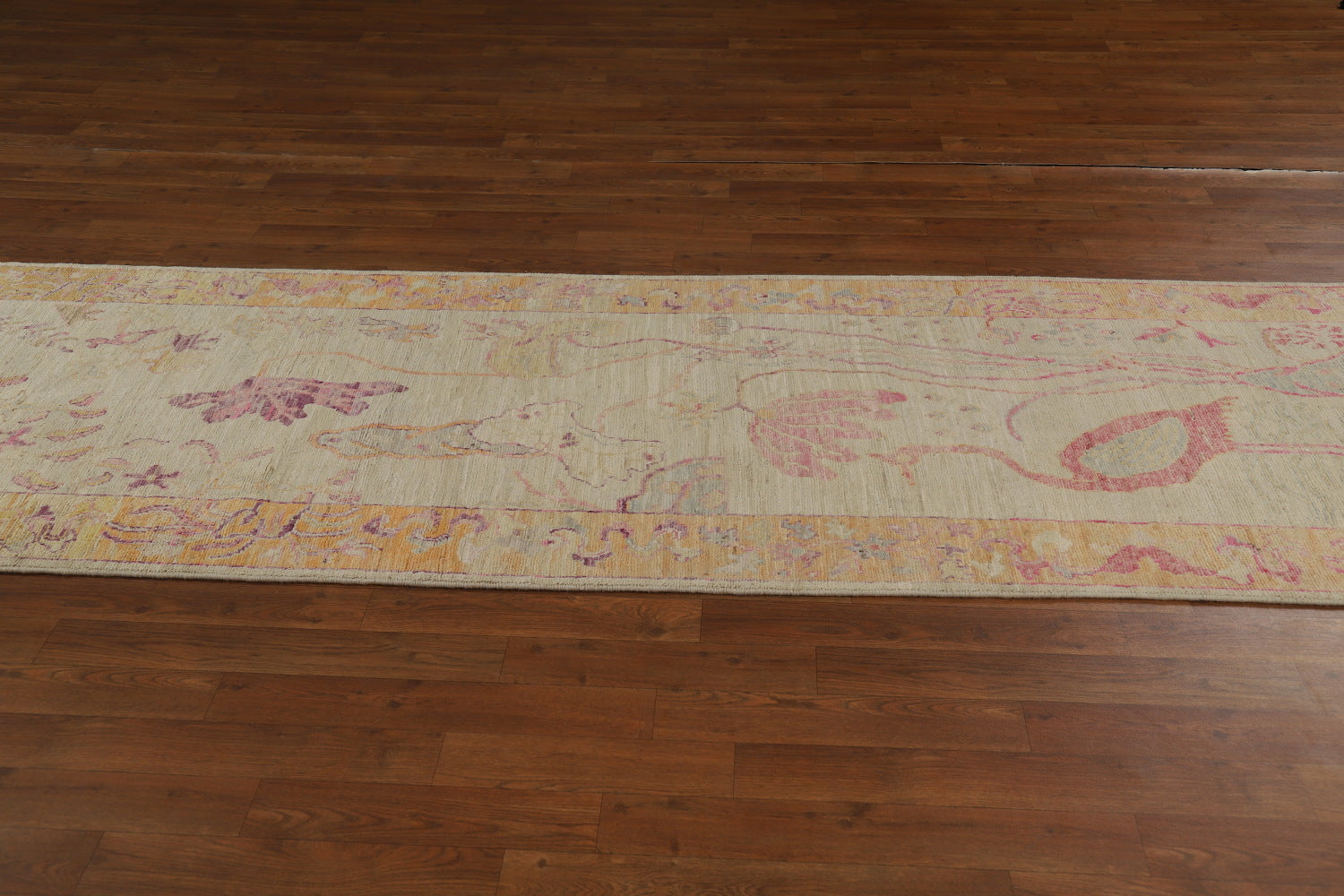 A Beautiful Genuine Turkey Art Deco rug is Hand Knotted by skillful weavers in Turkey with 100% Wool Material. This rug is in New, First Quality condition. dimensions are 13' 0'' X 2' 10'' in foot and 396 X 86 in centimeter. the primary color is Beige & Ivories.