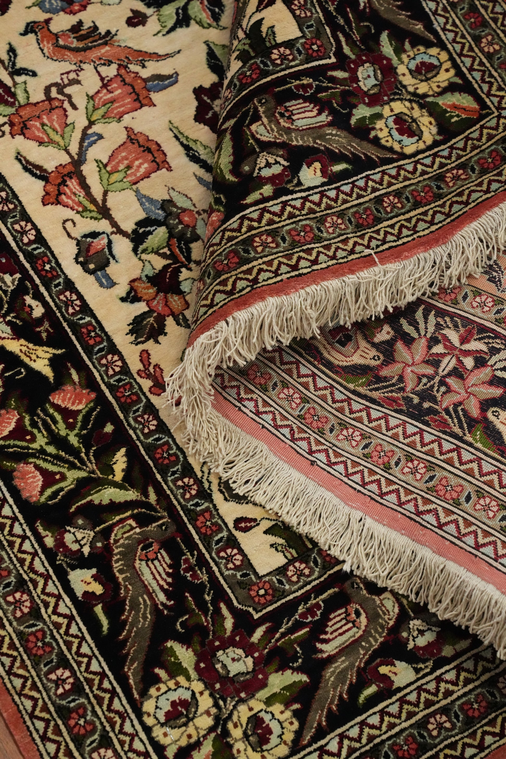 Animals Pictorial Silk Qum Vegetable Dye Persian Rug 4x5