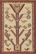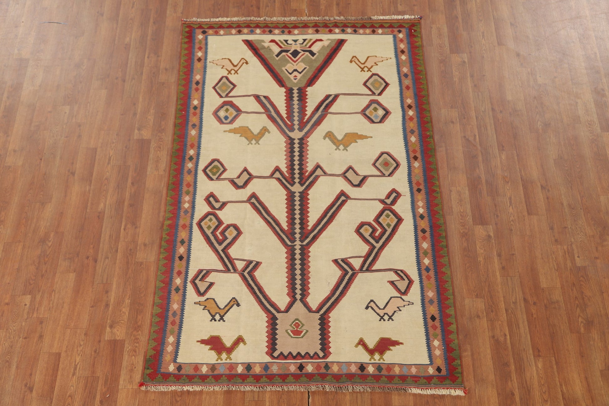 Animals Vegetable Dye Kilim Qashqai Persian Rug 4x6