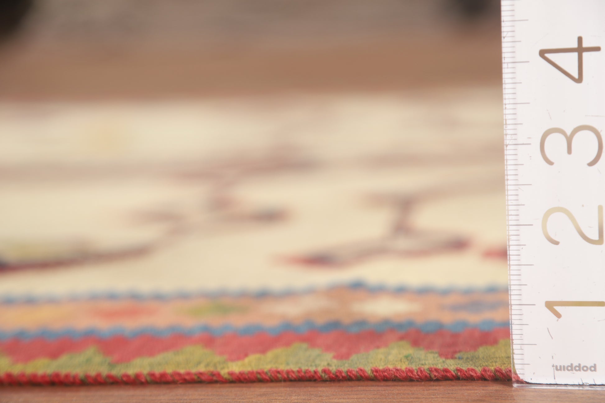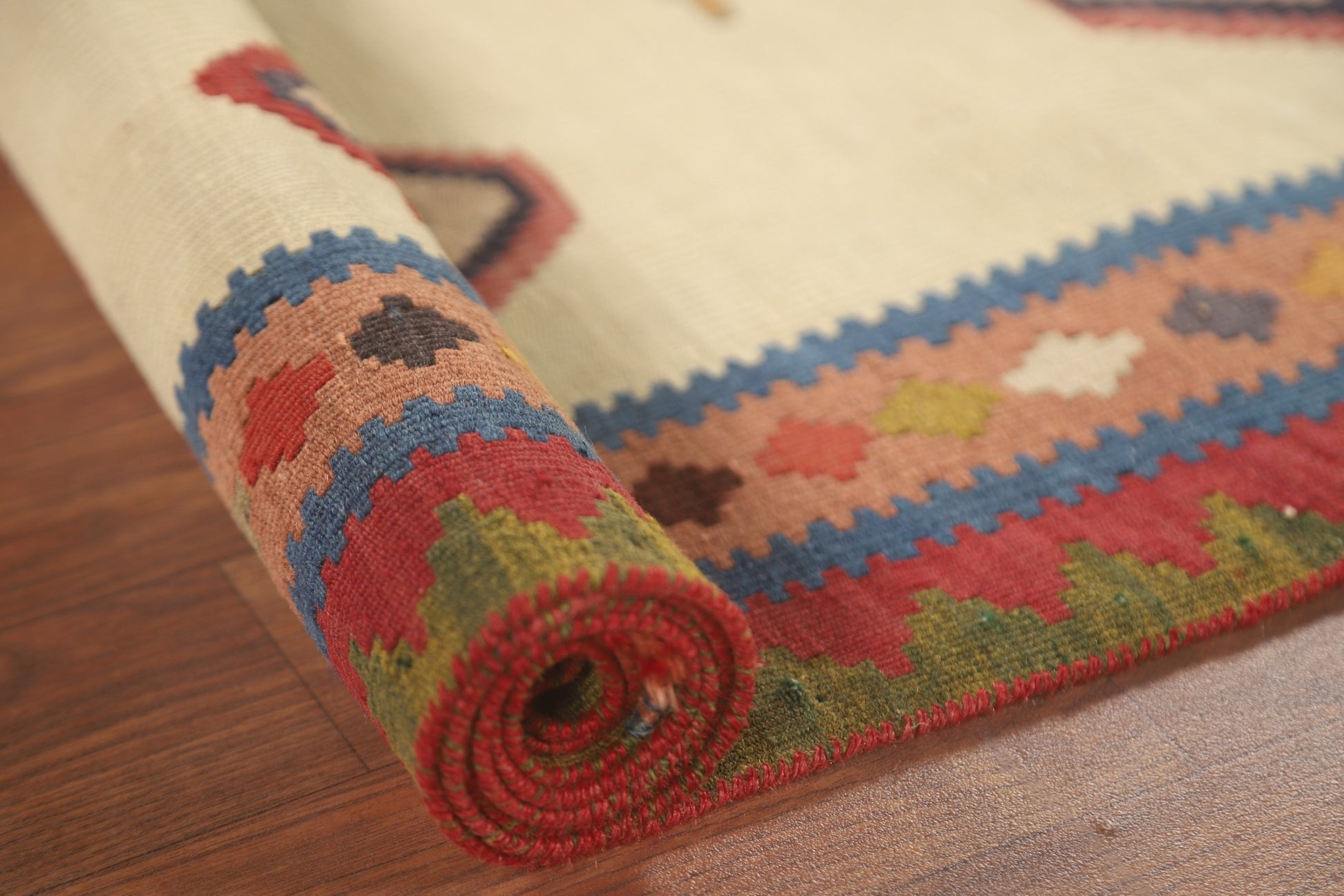 A Beautiful Genuine Persia ( Persia ) Kilim (Qashqai) rug is Hand Woven by skillful weavers in Persia ( Persia ) with 100% Wool Material. This rug is in Very Good condition. dimensions are 6' 5'' X 4' 2'' in foot and 196 X 127 in centimeter. the primary color is Beige & Ivories.