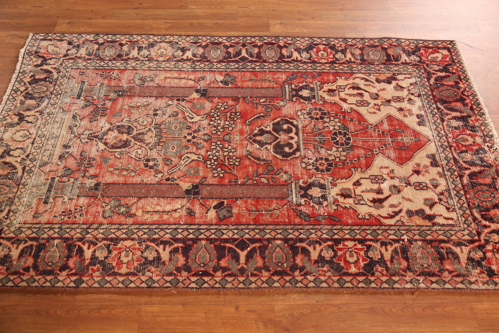 A Beautiful Genuine Persia ( Persia ) Kashan rug is Hand Knotted by skillful weavers in Persia ( Persia ) with 100% Wool Material. This rug is in Good (Evenly Worn) condition. dimensions are 6' 4'' X 3' 11'' in foot and 193 X 119 in centimeter. the primary color is Oranges & Rust.