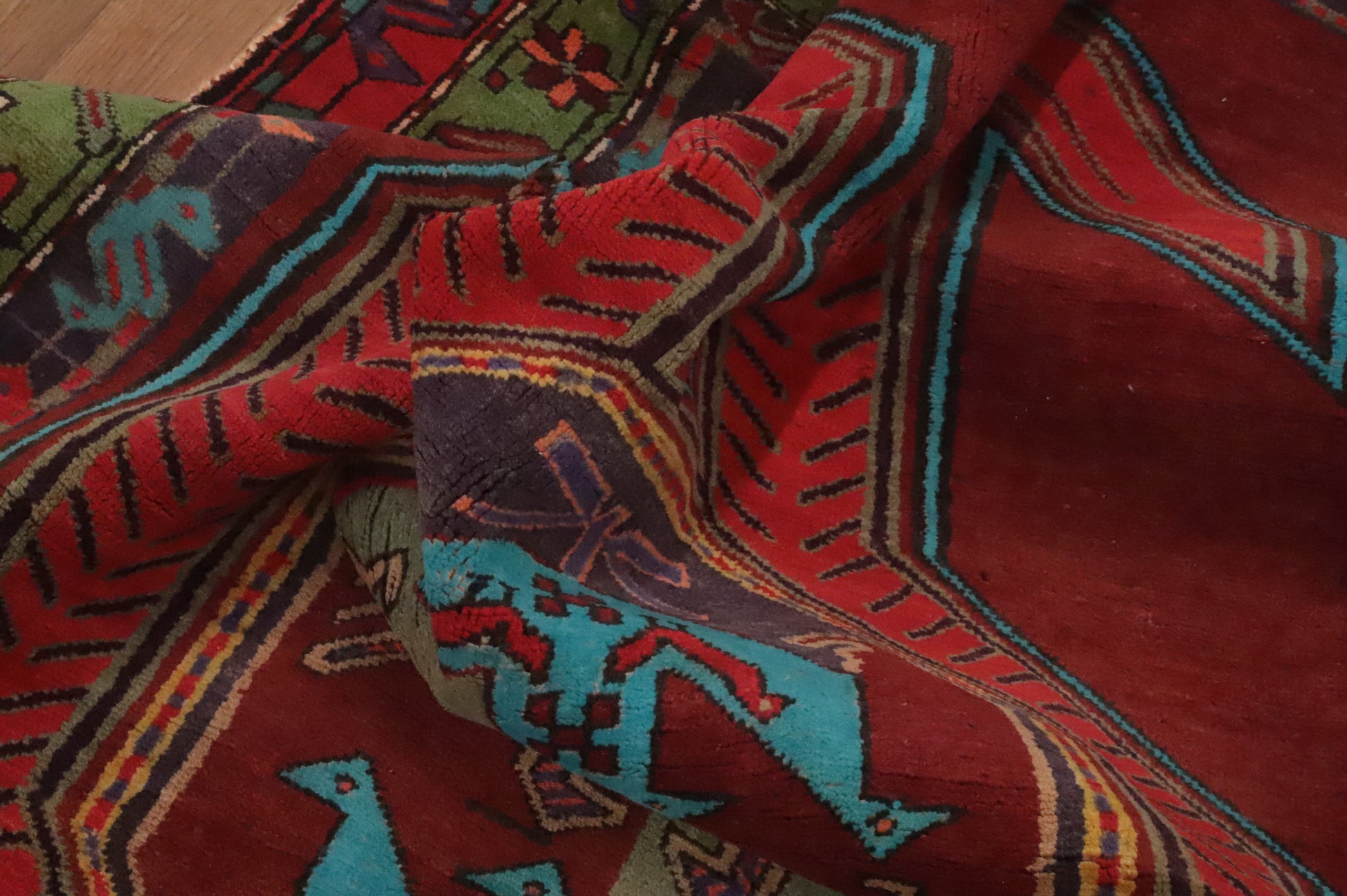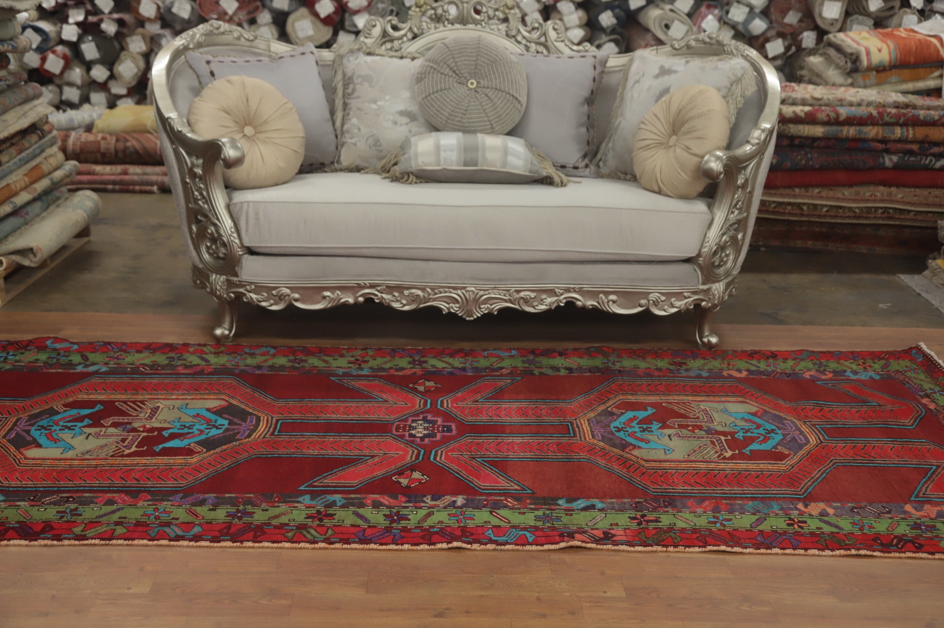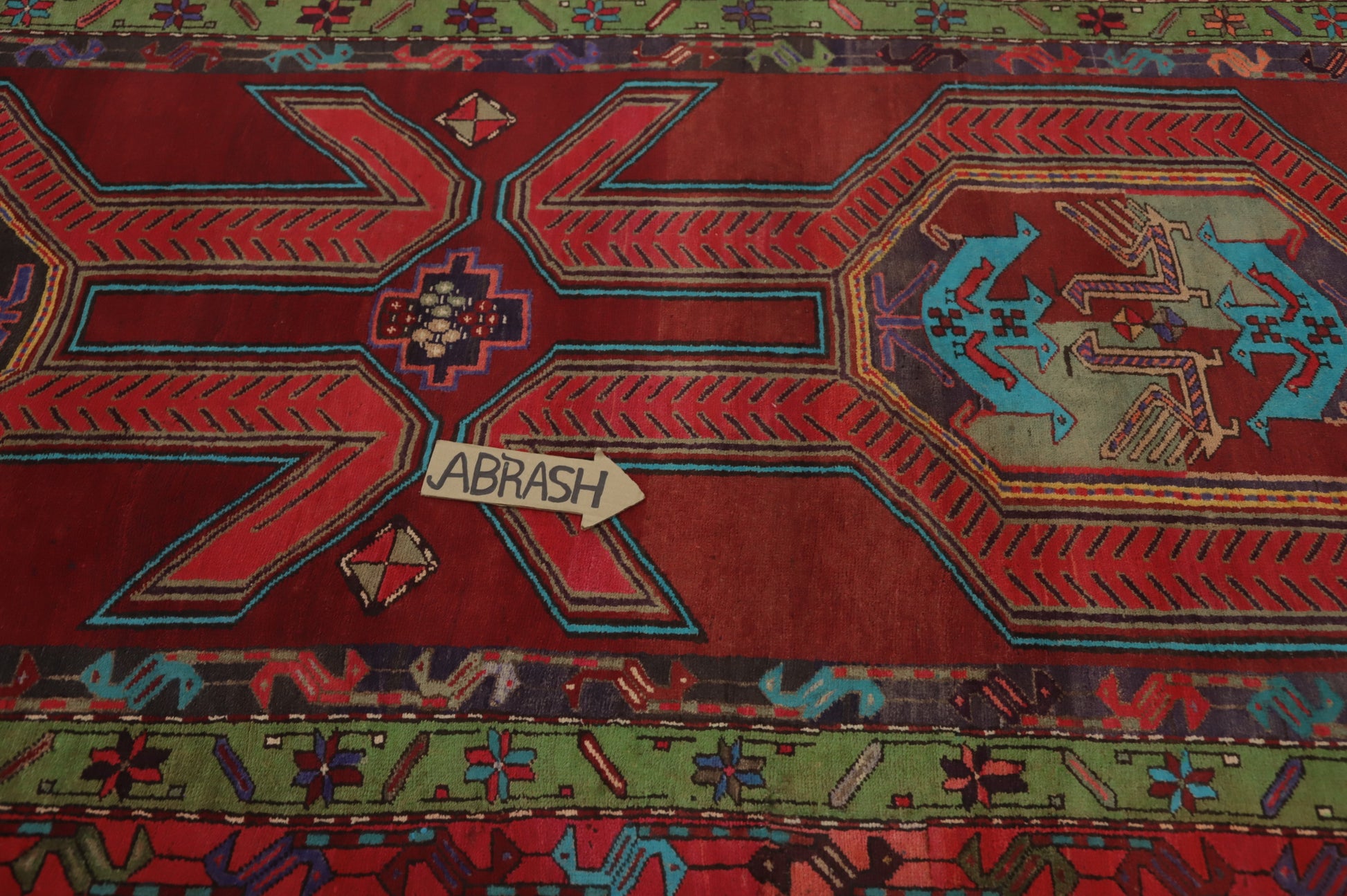 A Beautiful Genuine Persia ( Persia ) Meshkin rug is Hand Knotted by skillful weavers in Persia ( Persia ) with 100% Wool Material. This rug is in Very Good (Abrash) condition. dimensions are 11' 5'' X 4' 4'' in foot and 348 X 132 in centimeter. the primary color is Red.