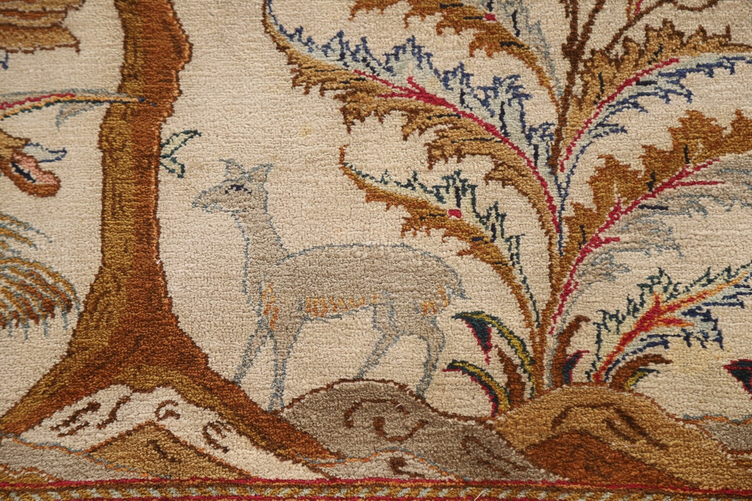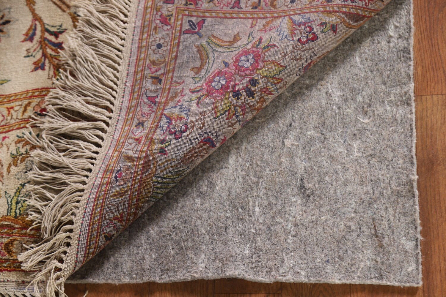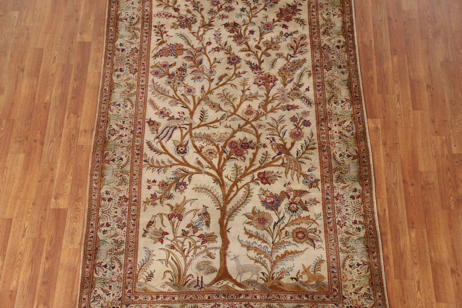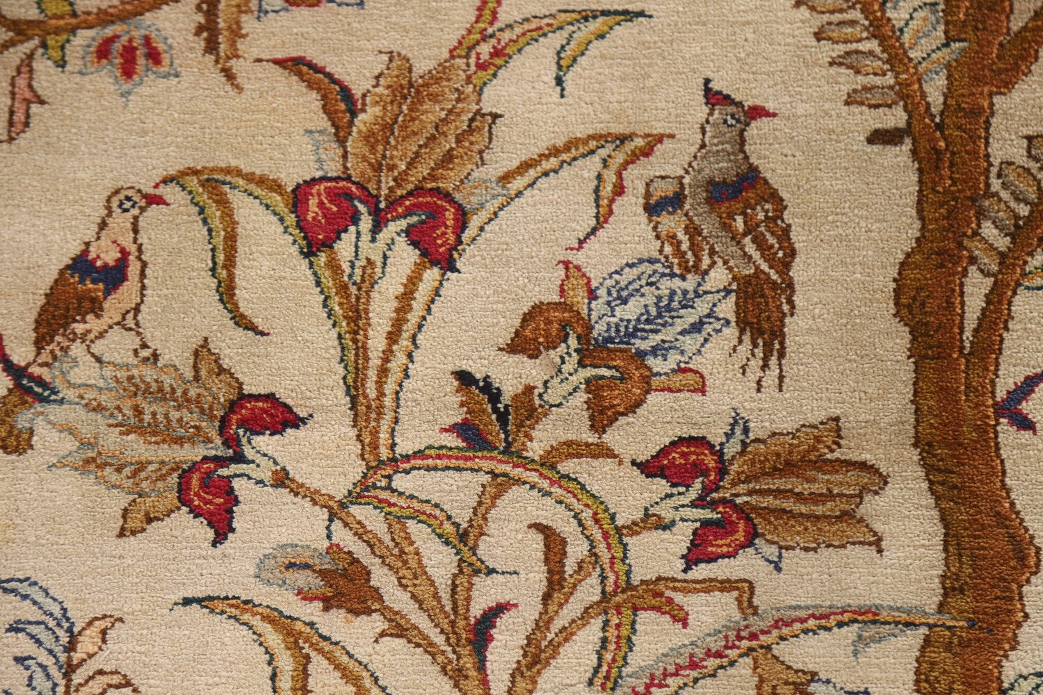 A Beautiful Genuine Persia ( Persia ) Kashan rug is Hand Knotted by skillful weavers in Persia ( Persia ) with 100% Silk Material. This rug is in Very Good condition. dimensions are 7' 5'' X 4' 8'' in foot and 226 X 142 in centimeter. the primary color is Beige & Ivories.