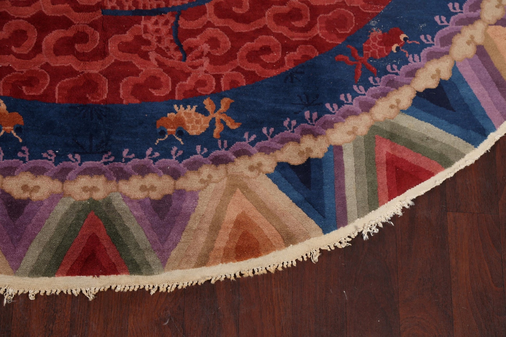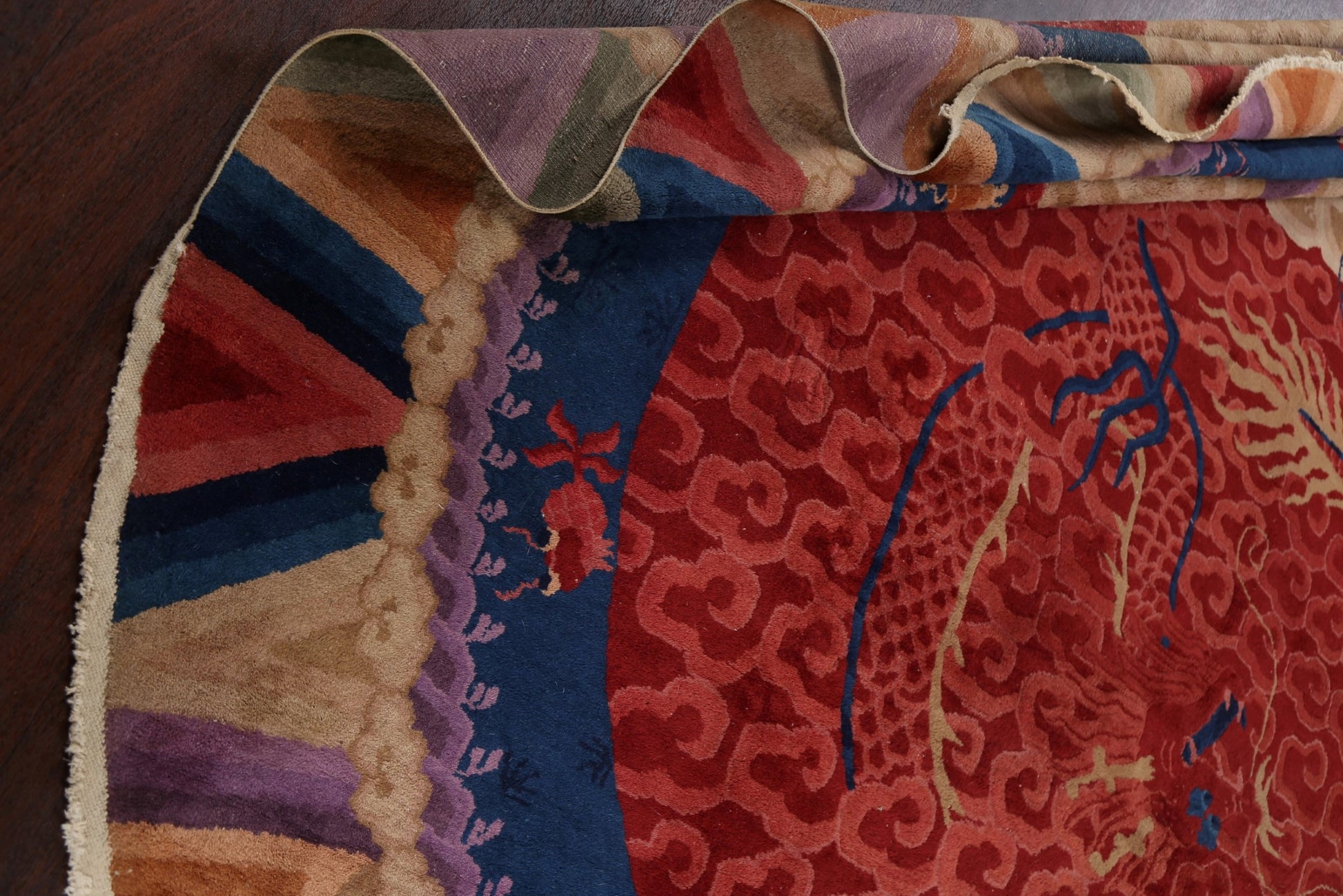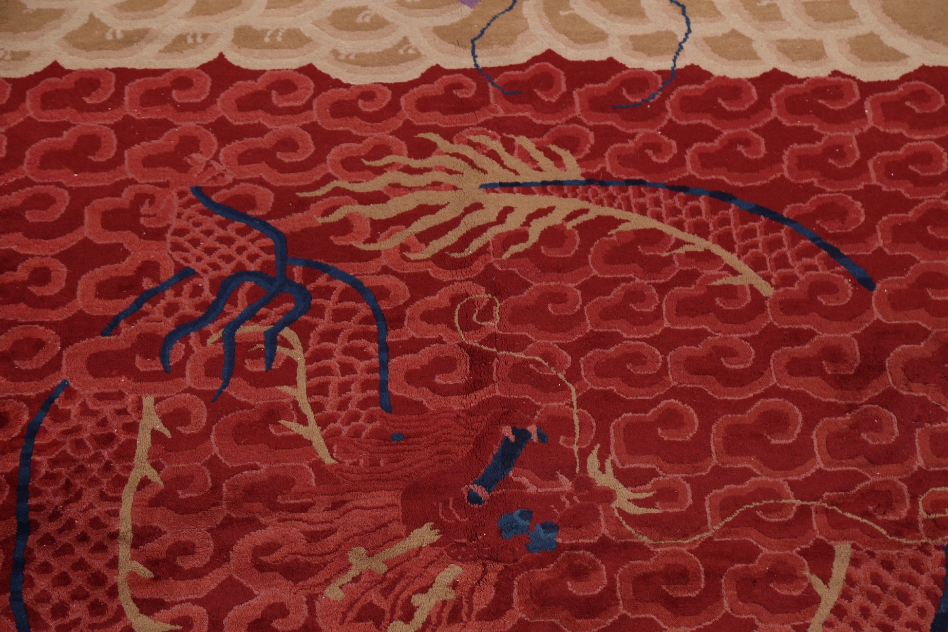 A Beautiful Genuine China Art Deco rug is Hand Knotted by skillful weavers in China with 100% Wool Material. This rug is in Very Good condition. dimensions are 11' 2'' X 9' 0'' in foot and 340 X 274 in centimeter. the primary color is Red.