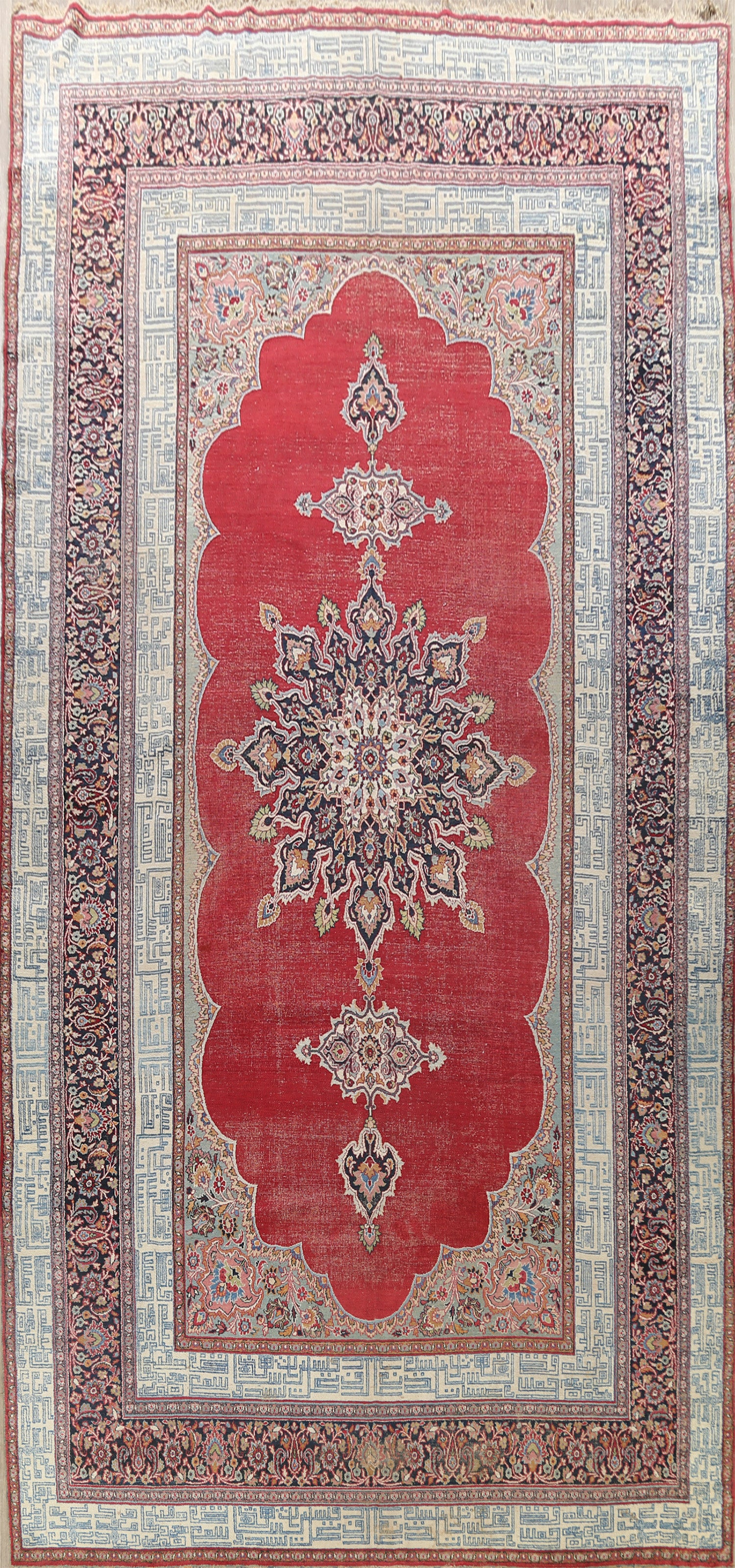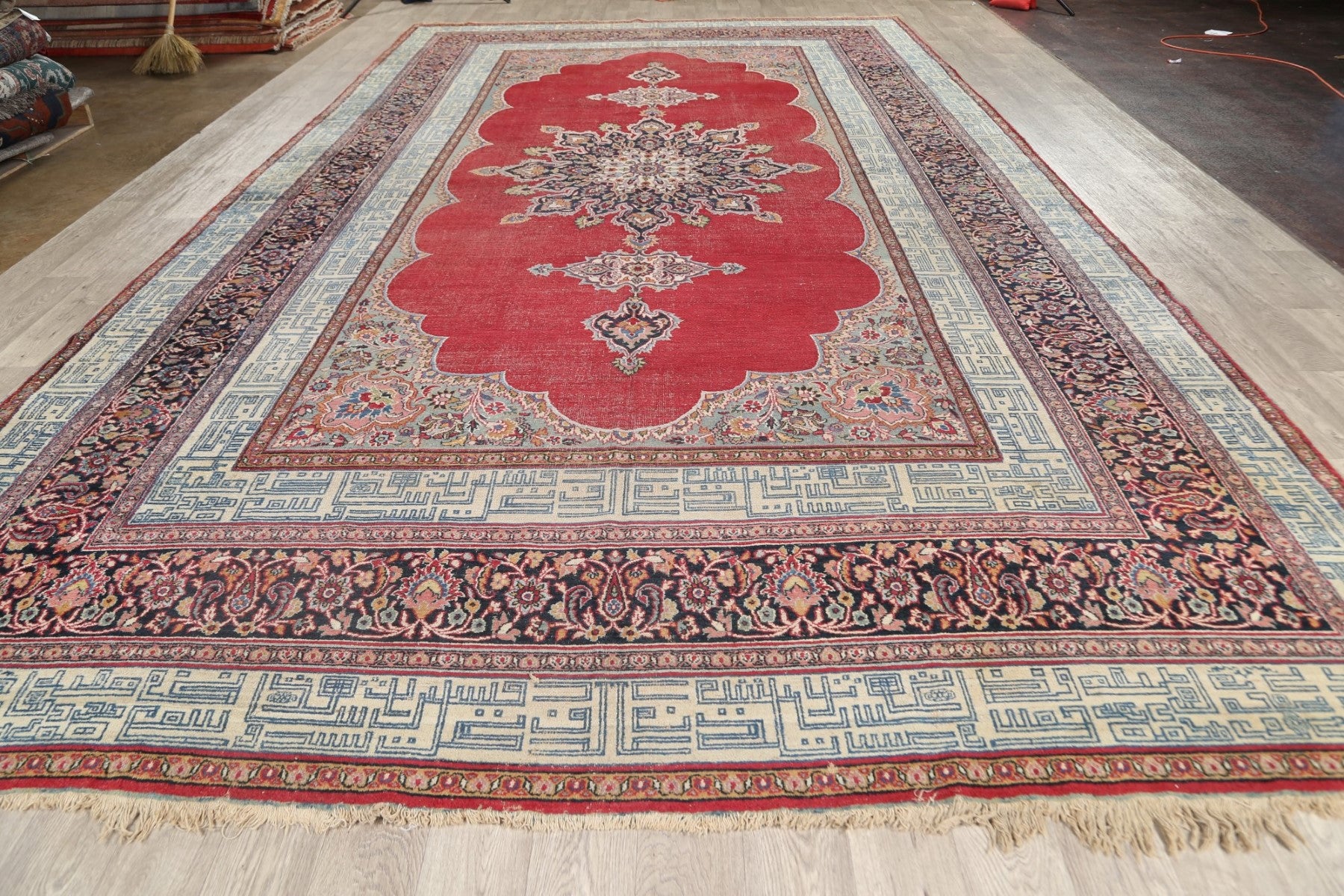 A Beautiful Genuine Persia ( Persia ) Dorokhsh rug is Hand Knotted by skillful weavers in Persia ( Persia ) with 100% Wool Material. This rug is in Very Good (Evenly Low Pile) condition. dimensions are 17' 8'' X 9' 10'' in foot and 538 X 300 in centimeter. the primary color is Red.
