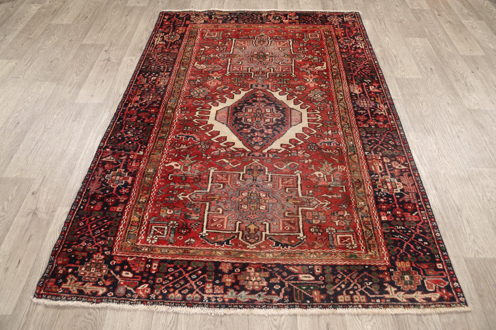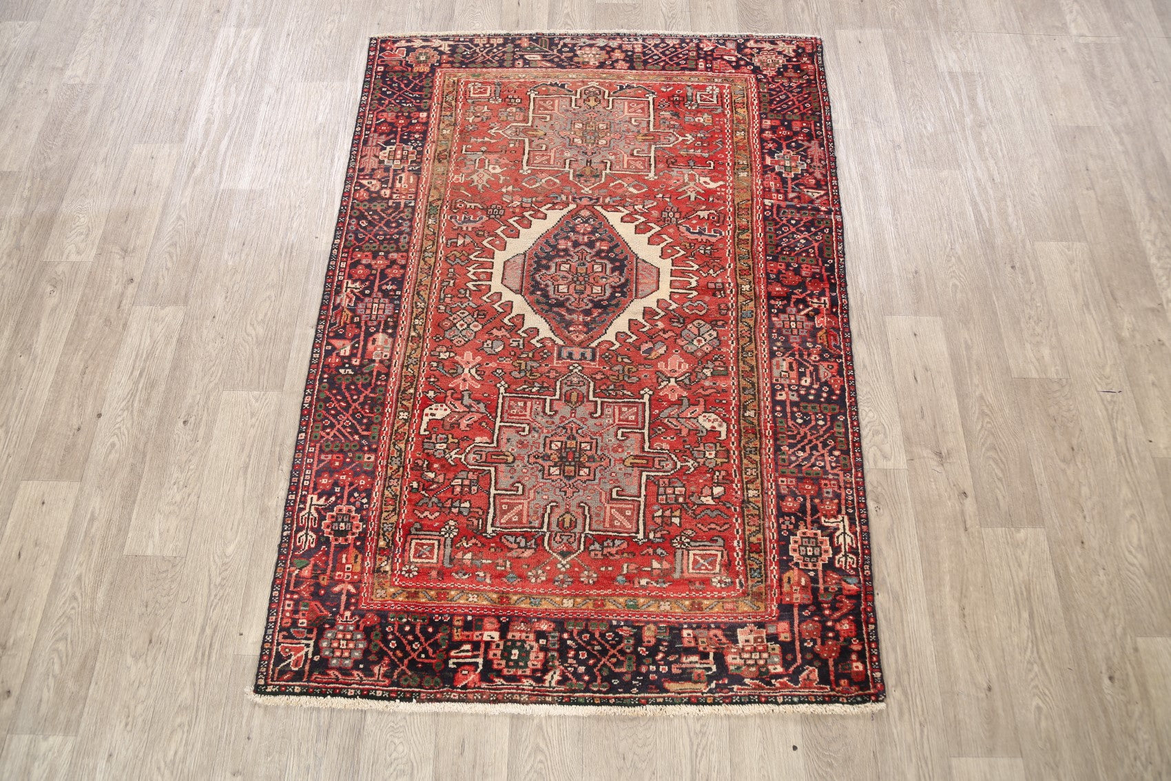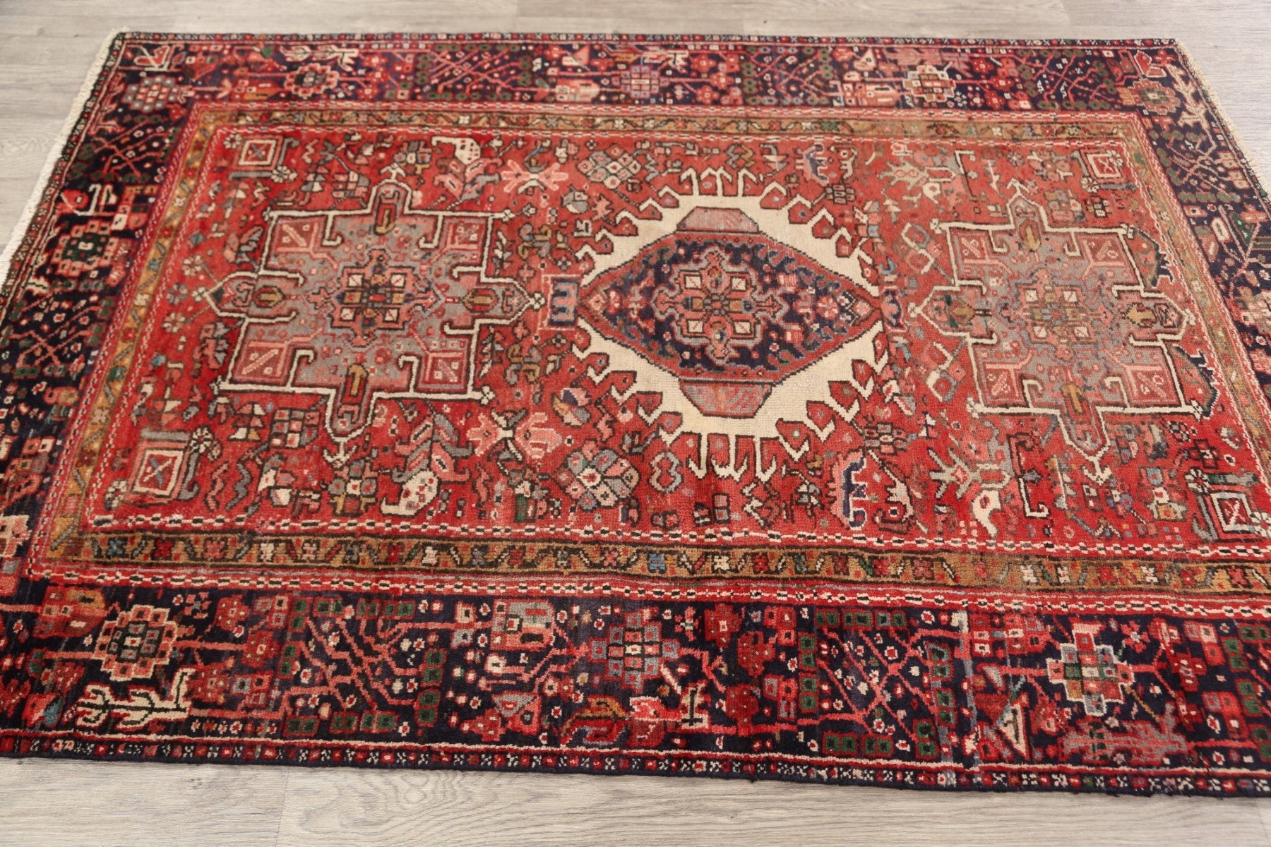Antique 100% Vegetable Dye Gharajeh Persian Area Rug 4x6
