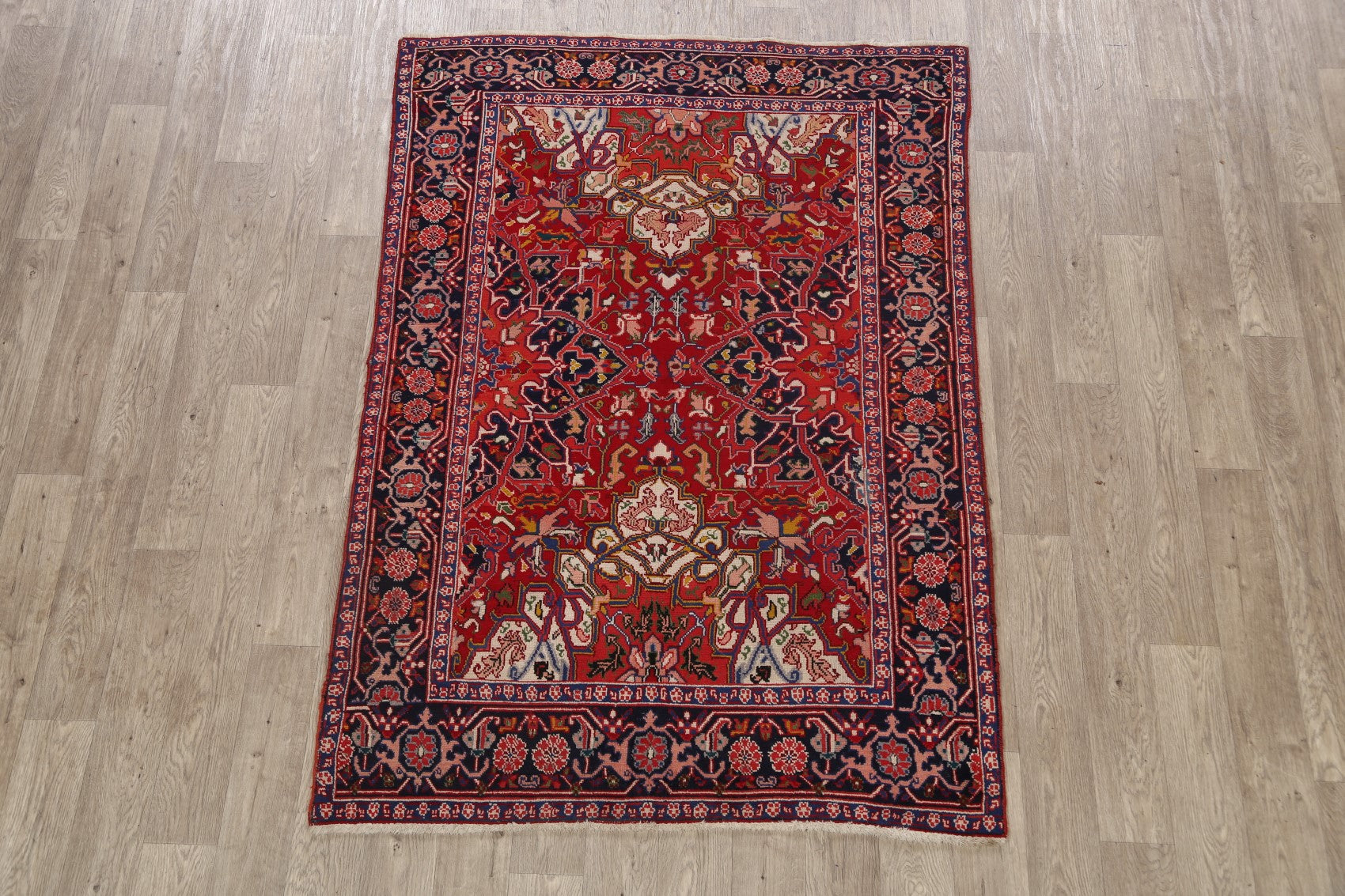 Antique 100% Vegetable Dye Heriz Serapi Persian Area Rug 5x6