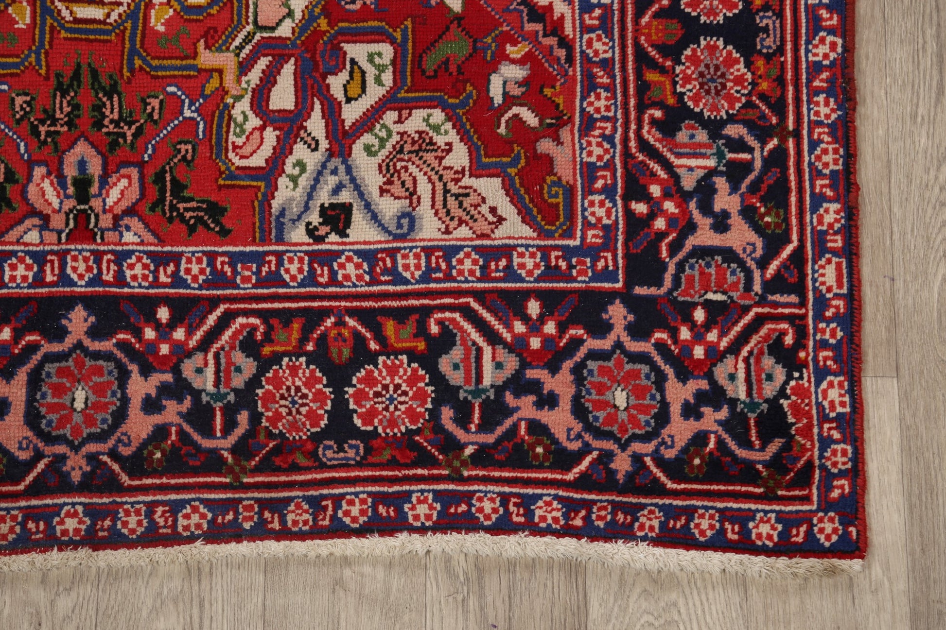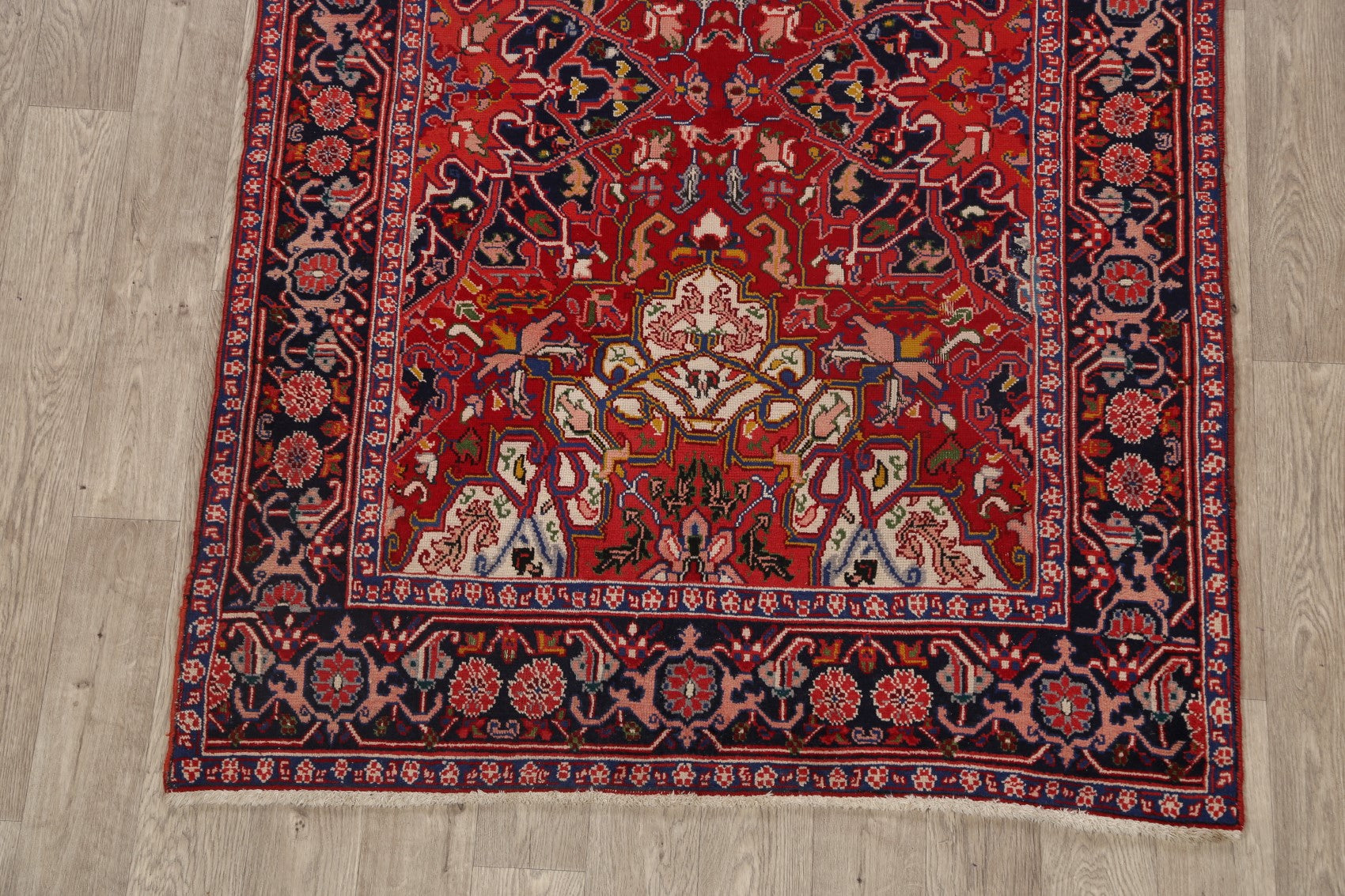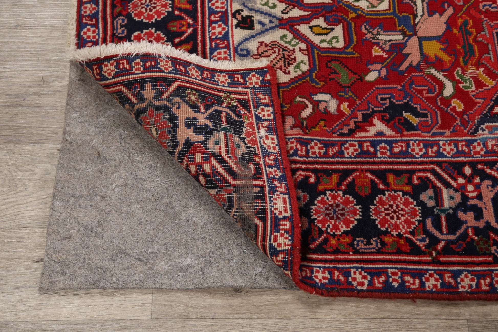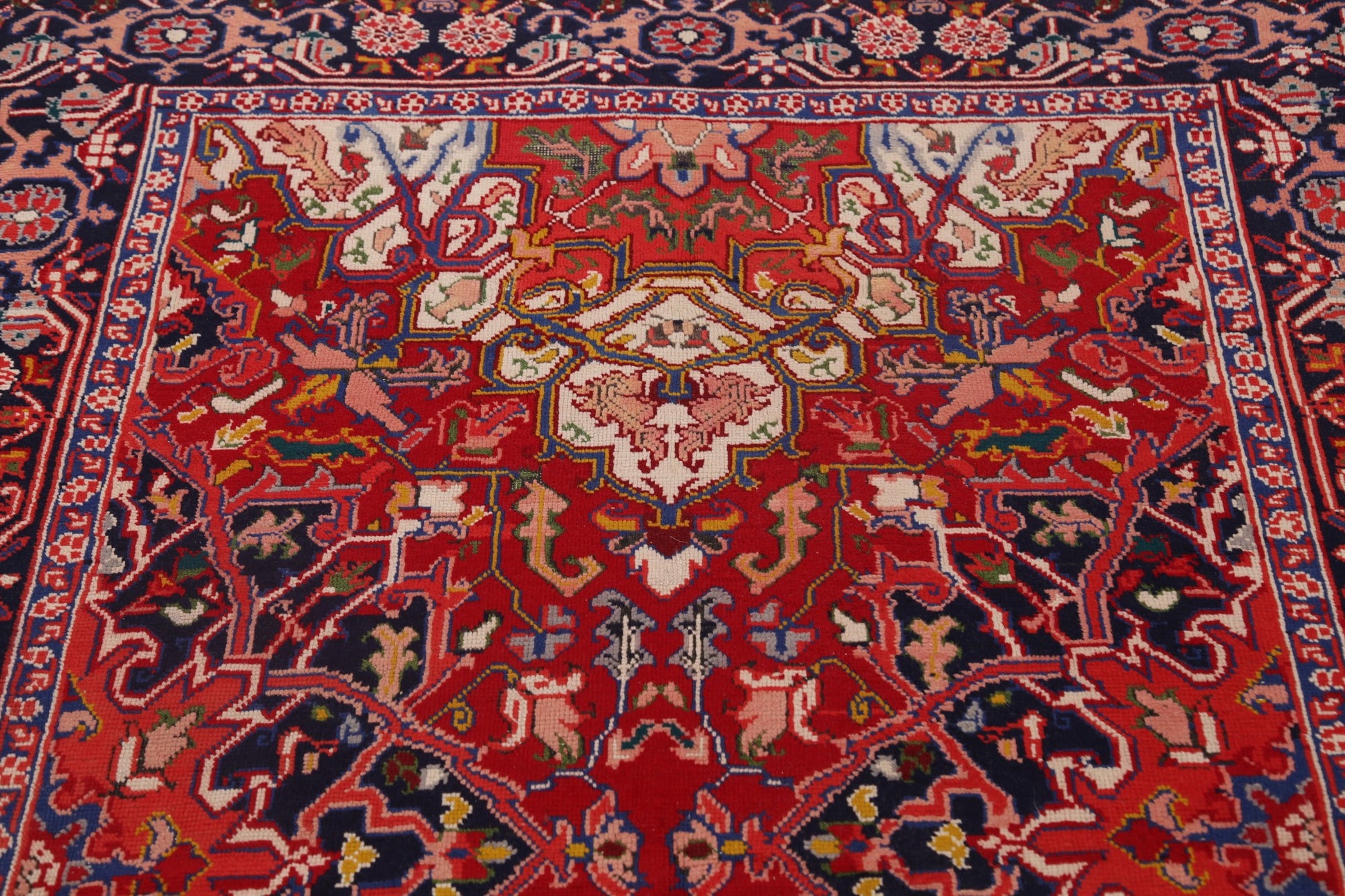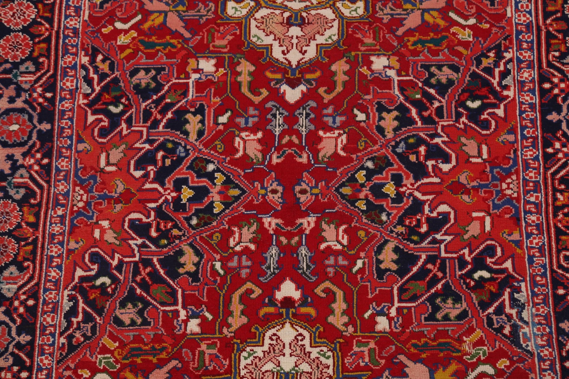 A Beautiful Genuine Persia ( Persia ) Heriz (serapi) rug is Hand Knotted by skillful weavers in Persia ( Persia ) with 100% Wool Material. This rug is in Very Good ( Low Pile ) condition. dimensions are 6' 4'' X 4' 6'' in foot and 193 X 137 in centimeter. the primary color is Red.