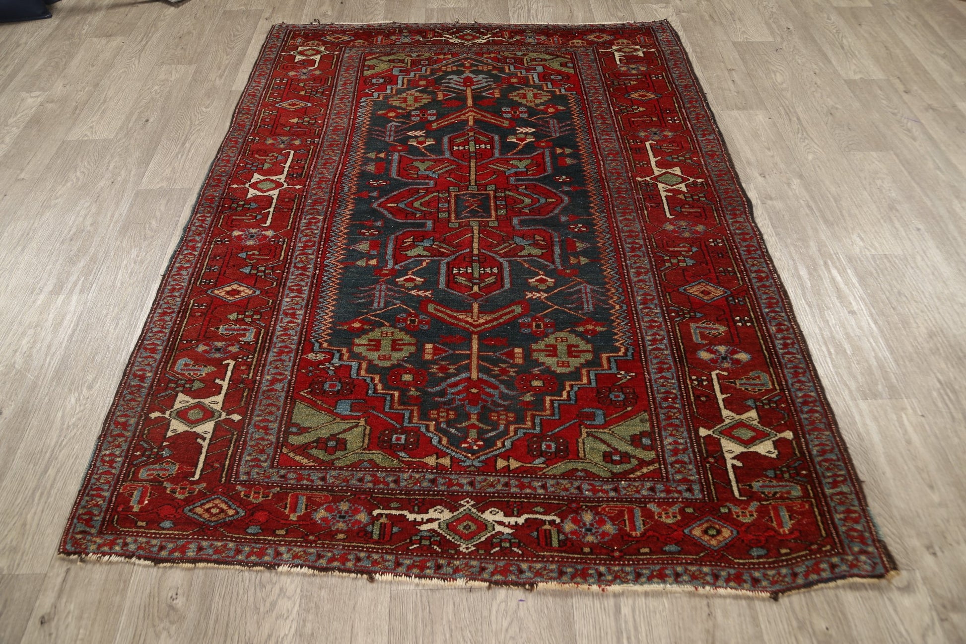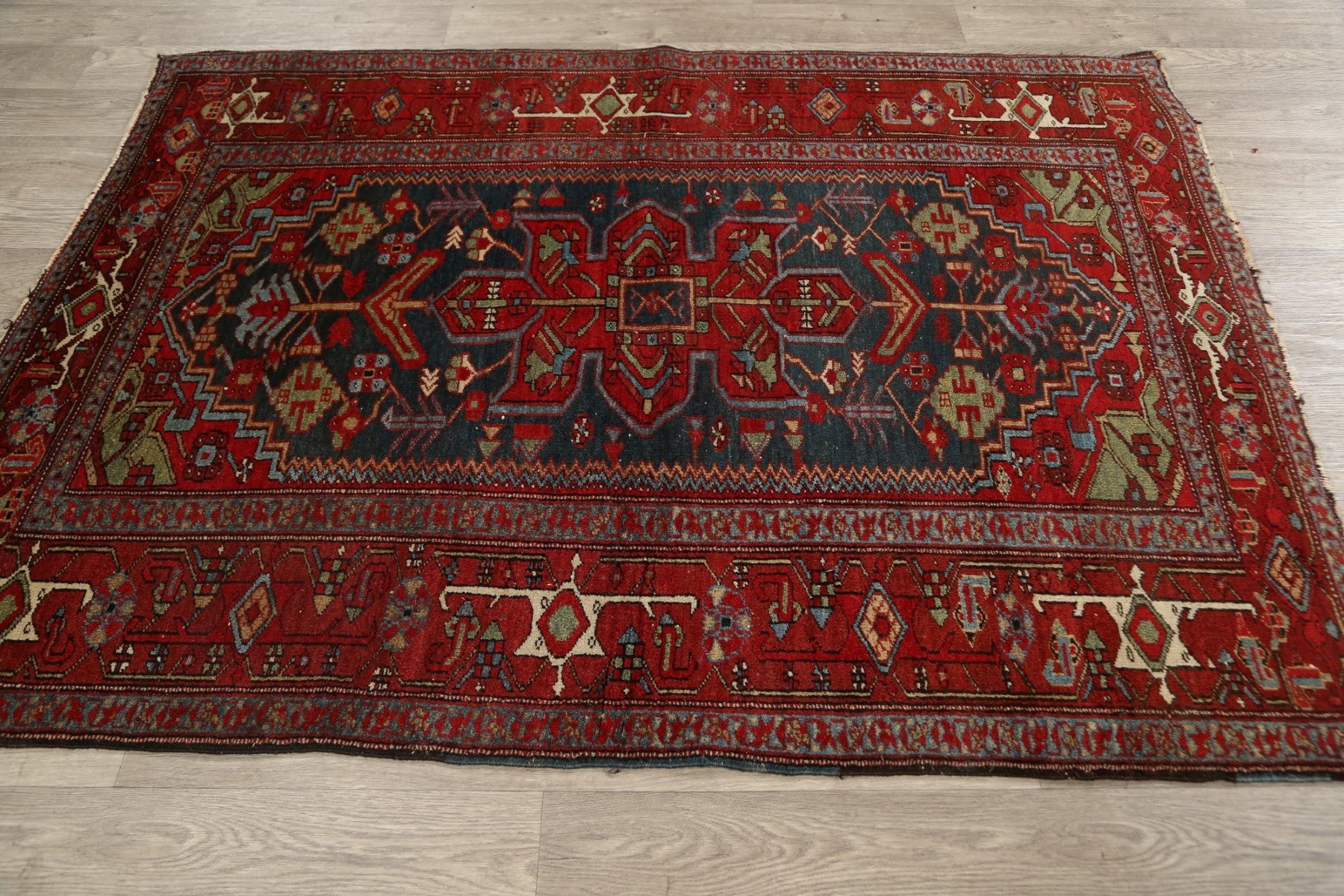 Antique 100% Vegetable Dye Heriz Serapi Persian Area Rug 5x6