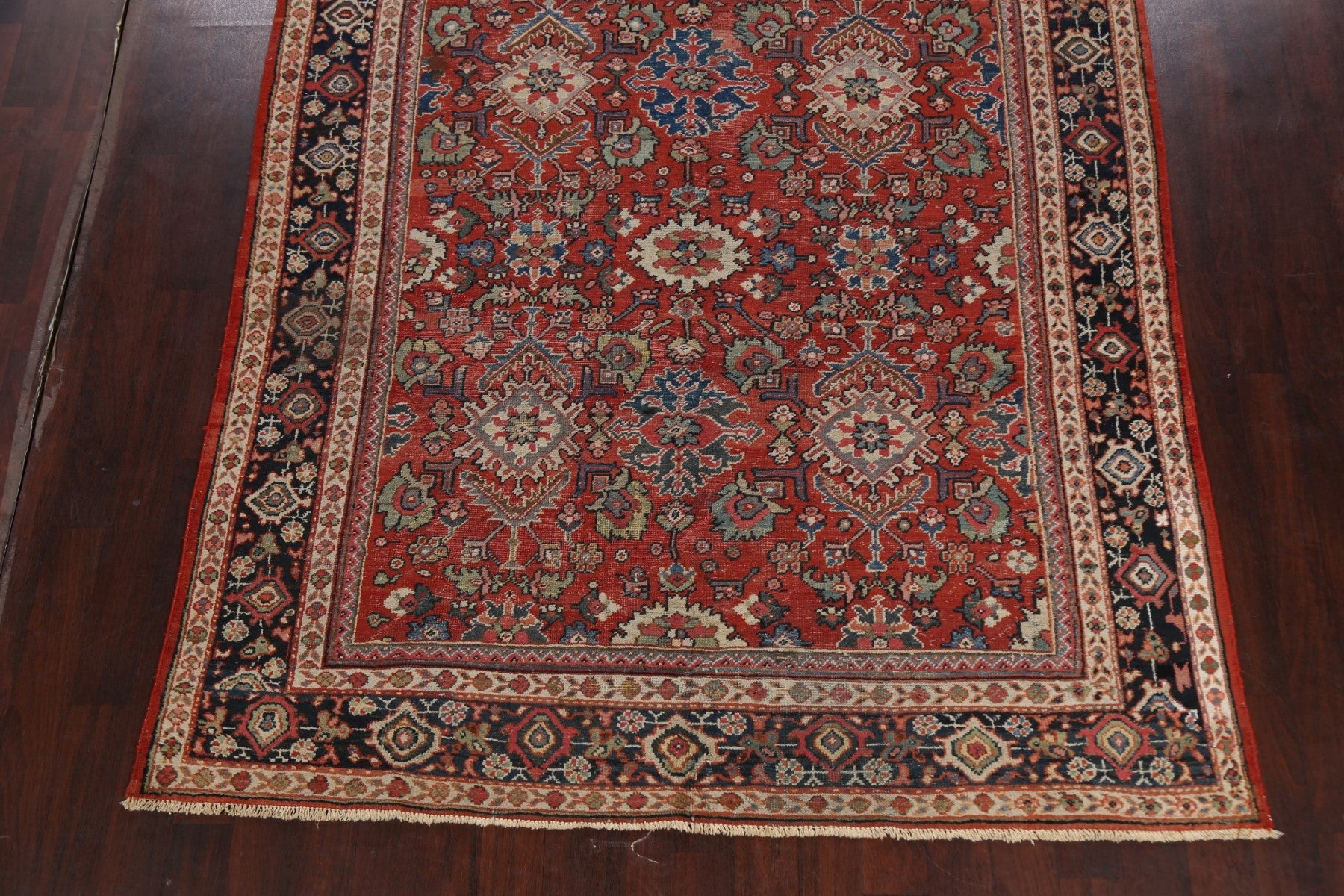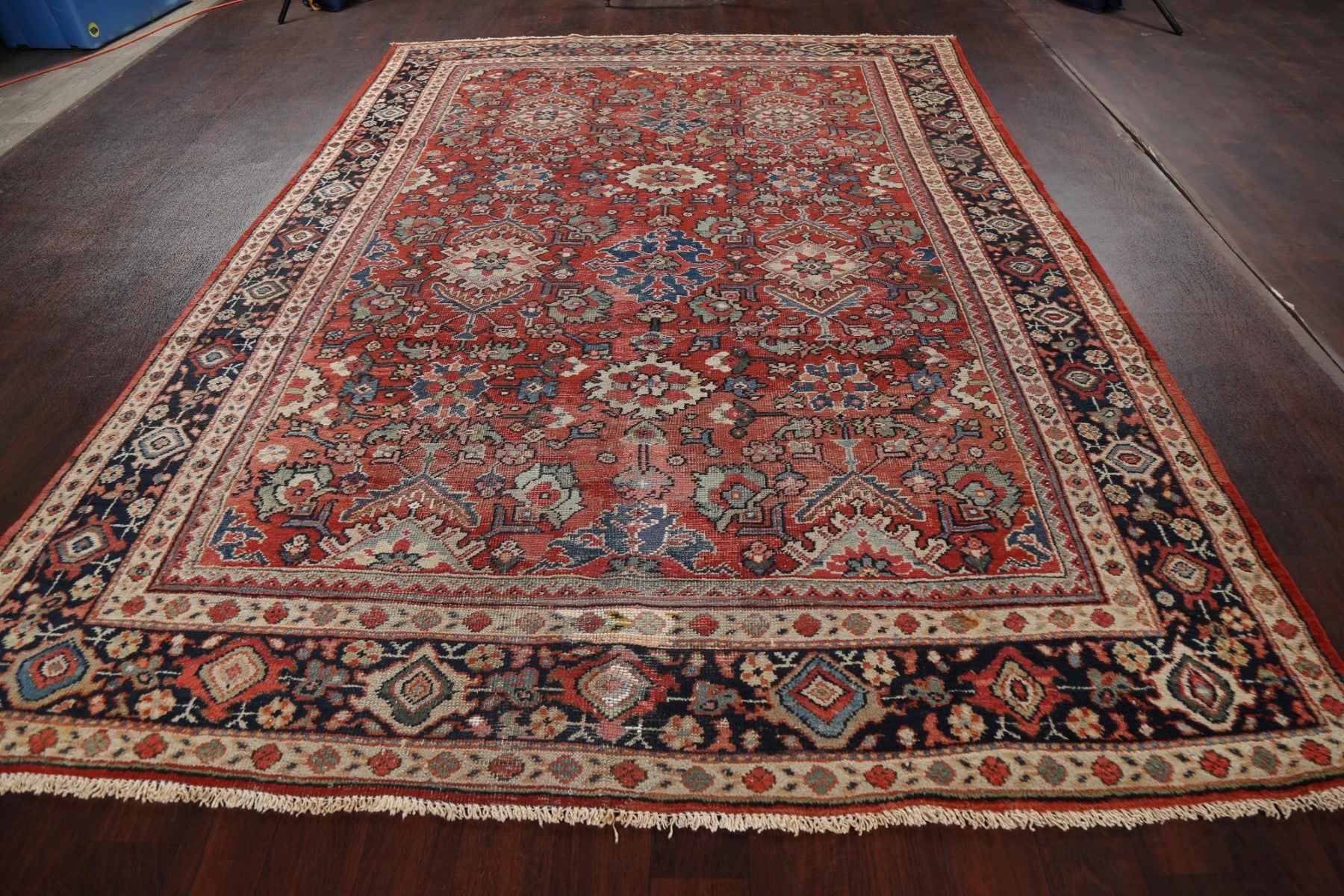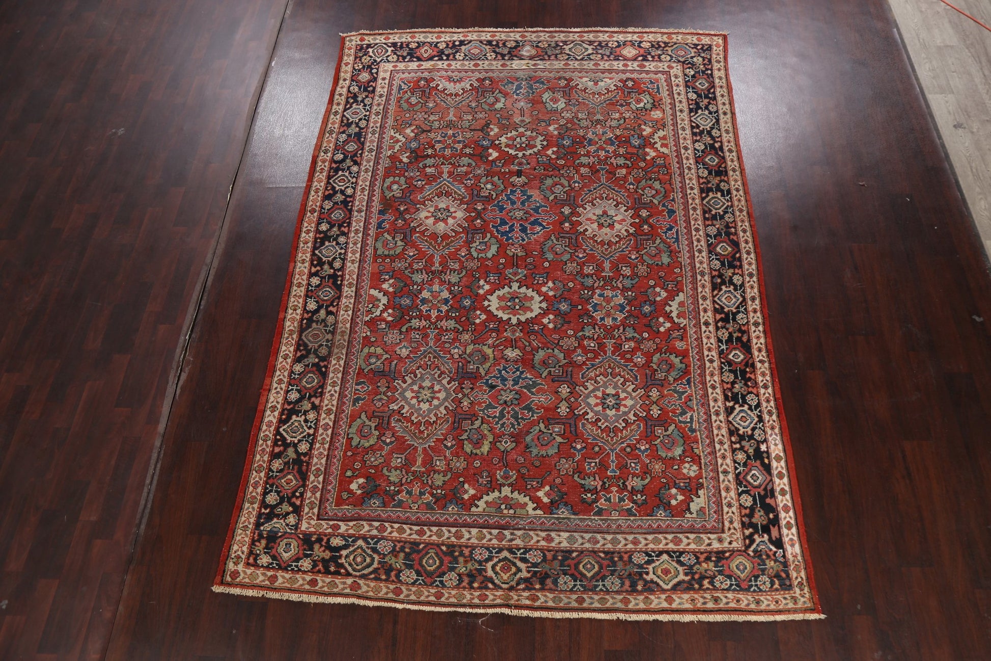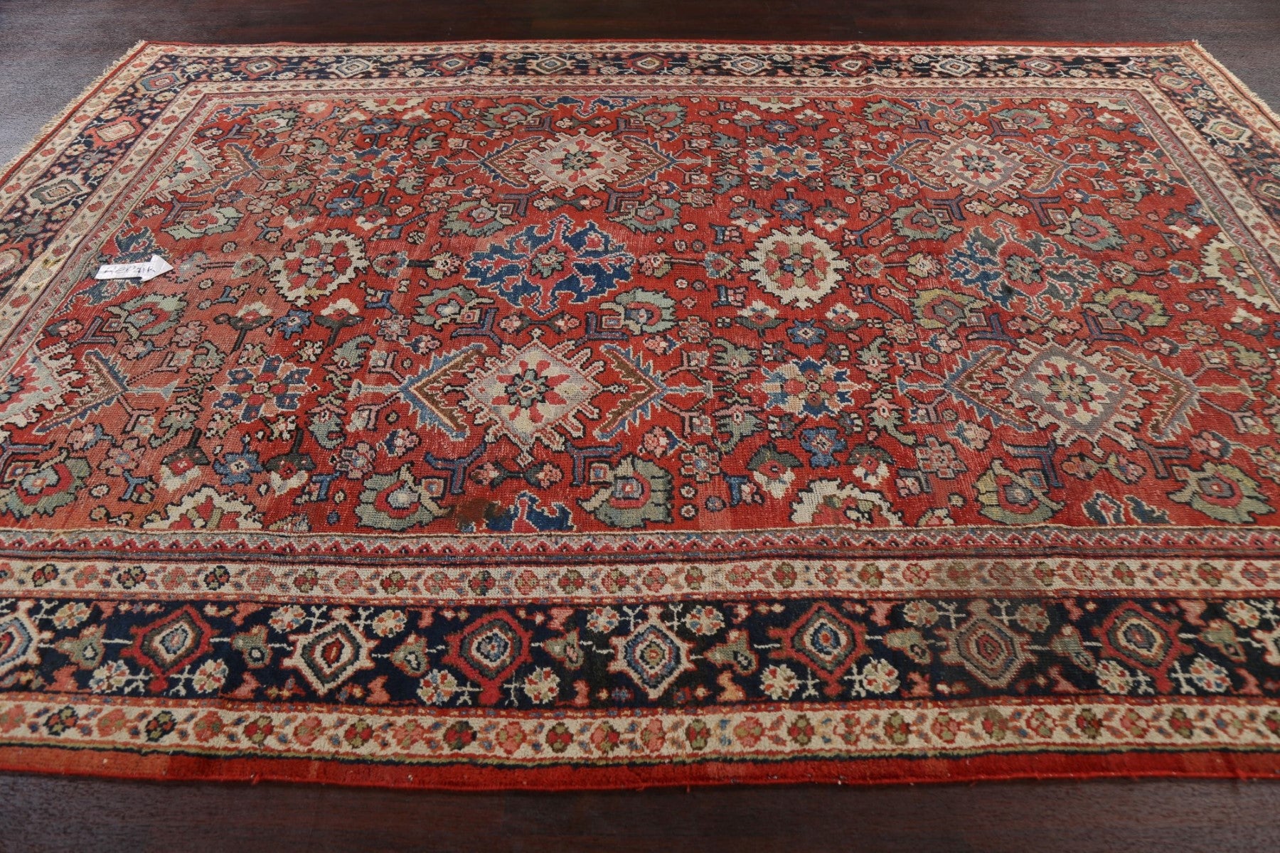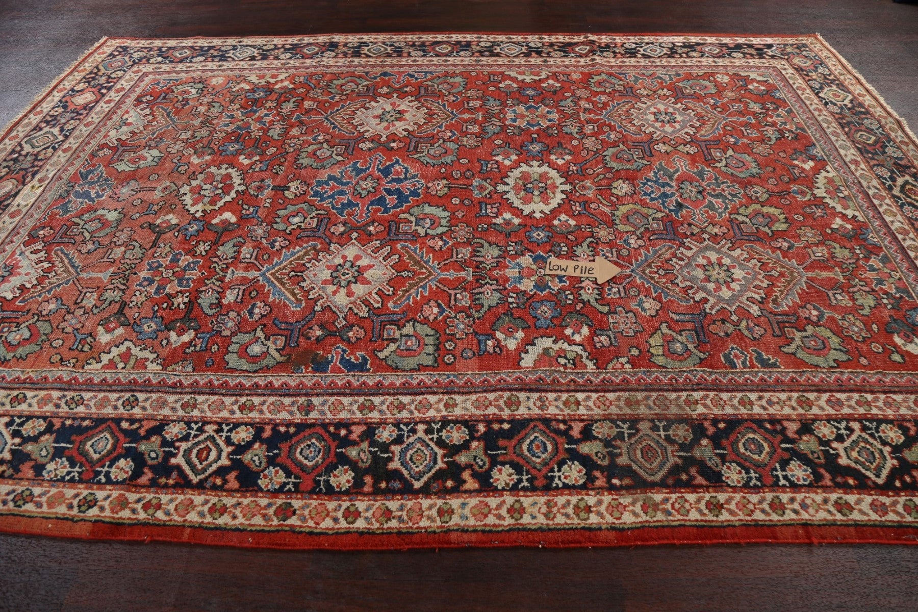 A Beautiful Genuine Persia ( Persia ) Mahal rug is Hand Knotted by skillful weavers in Persia ( Persia ) with 100% Wool Material. This rug is in Very Good (Low Pile-Repair) condition. dimensions are 10' 8'' X 7' 4'' in foot and 325 X 224 in centimeter. the primary color is Red.