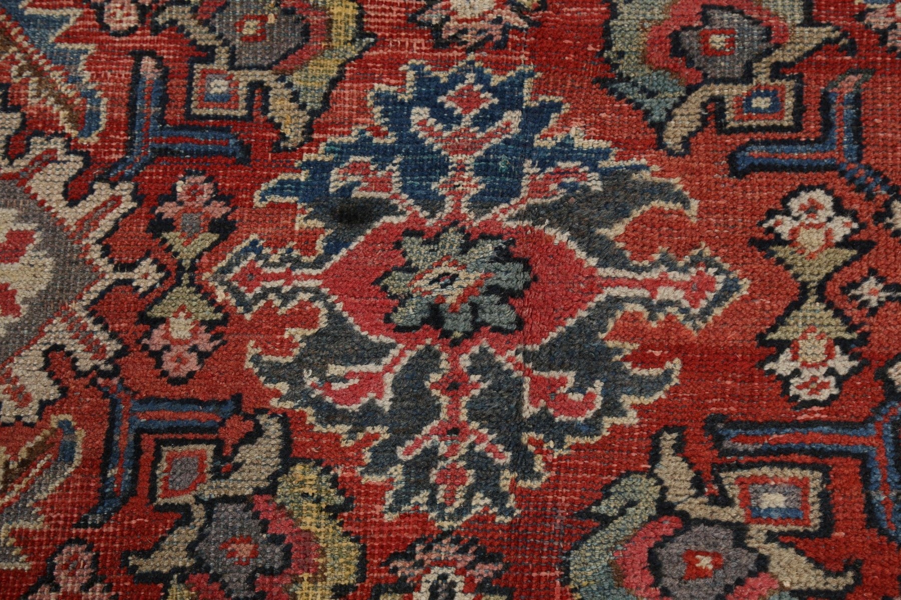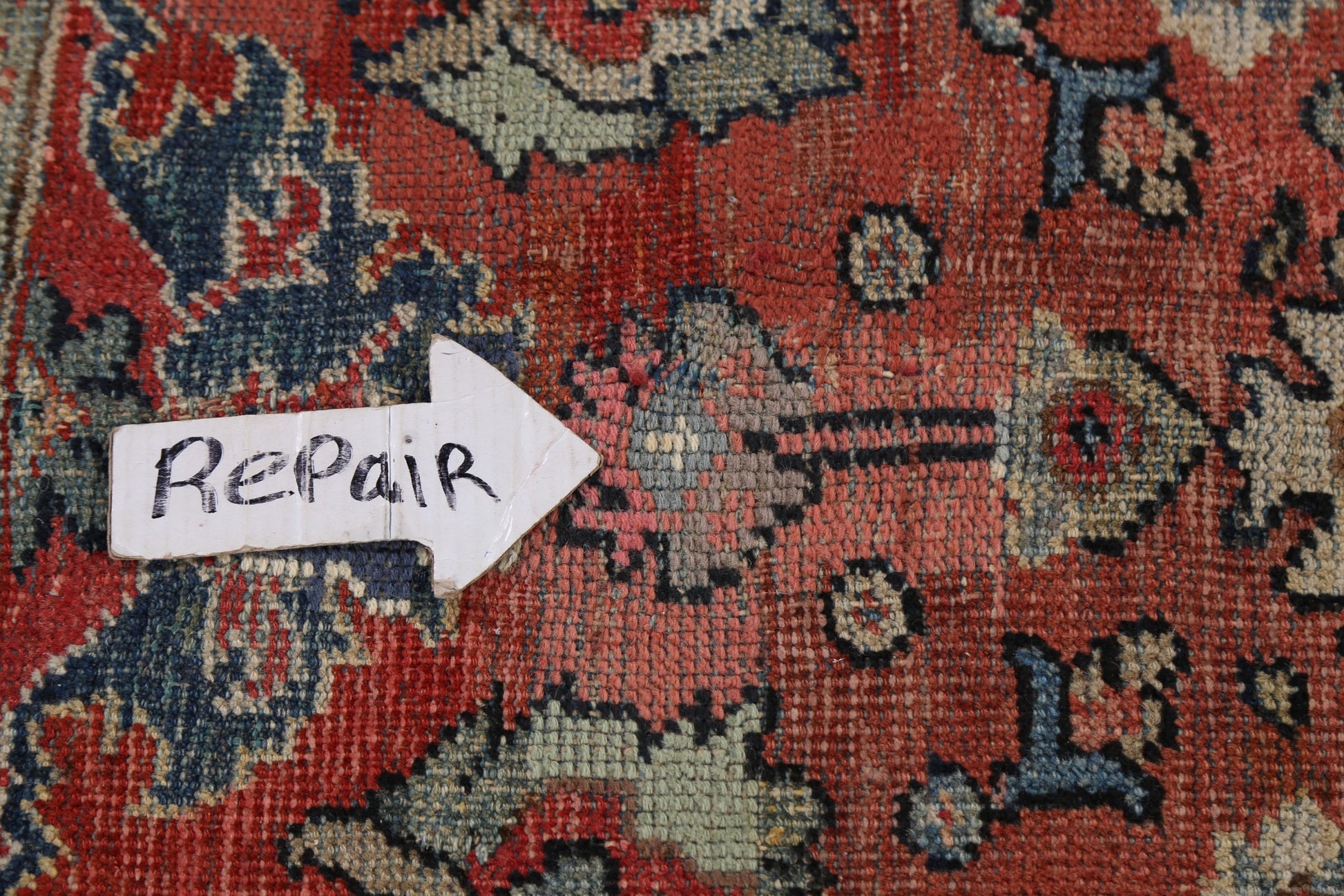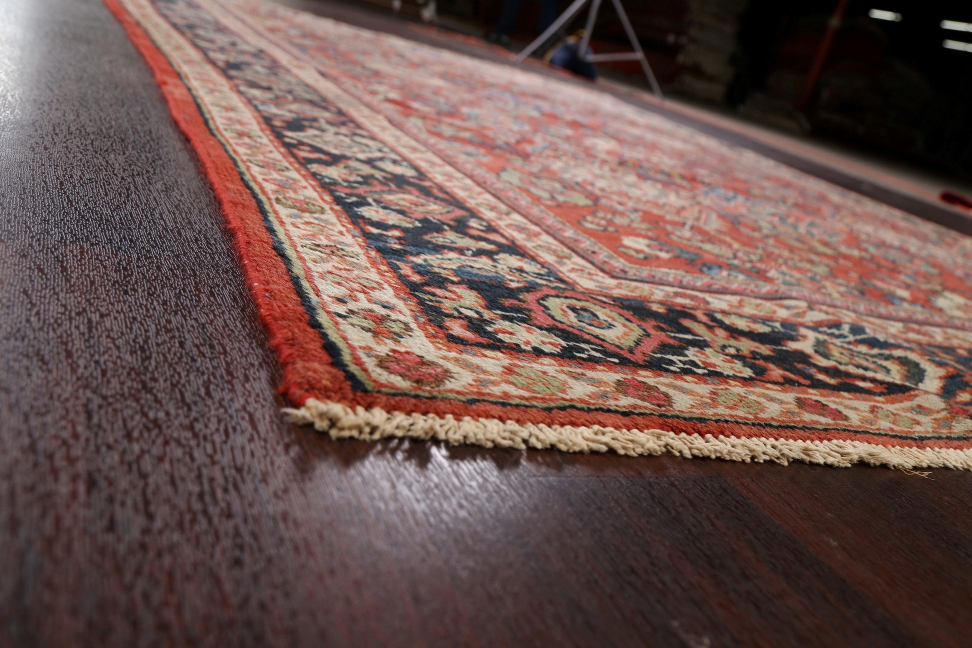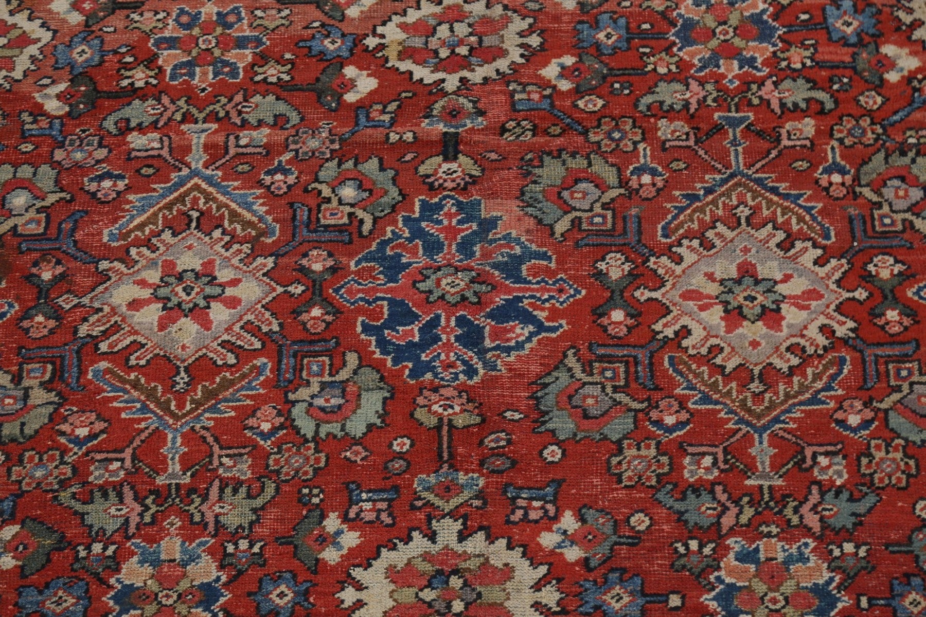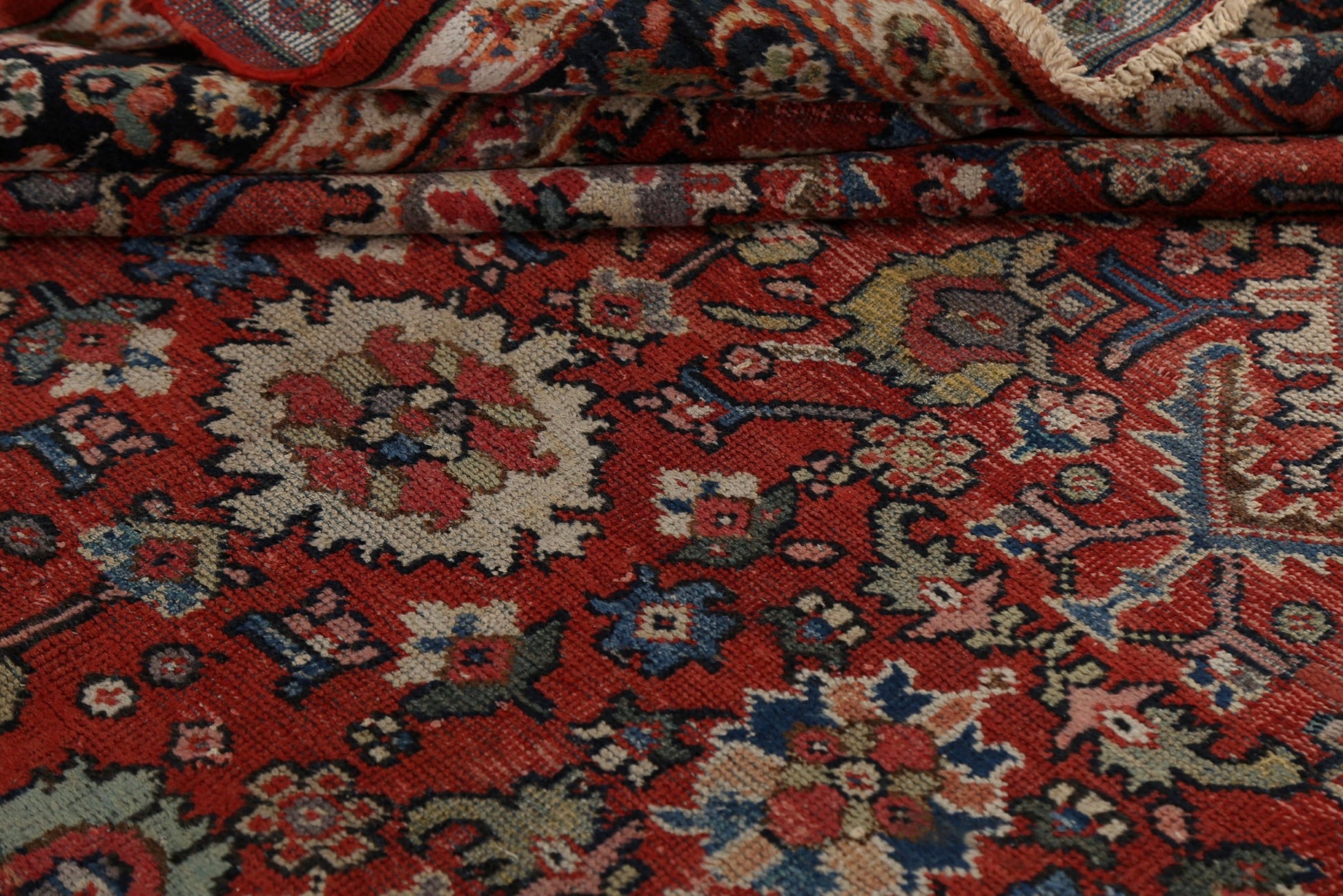 A Beautiful Genuine Persia ( Persia ) Mahal rug is Hand Knotted by skillful weavers in Persia ( Persia ) with 100% Wool Material. This rug is in Very Good (Low Pile-Repair) condition. dimensions are 10' 8'' X 7' 4'' in foot and 325 X 224 in centimeter. the primary color is Red.