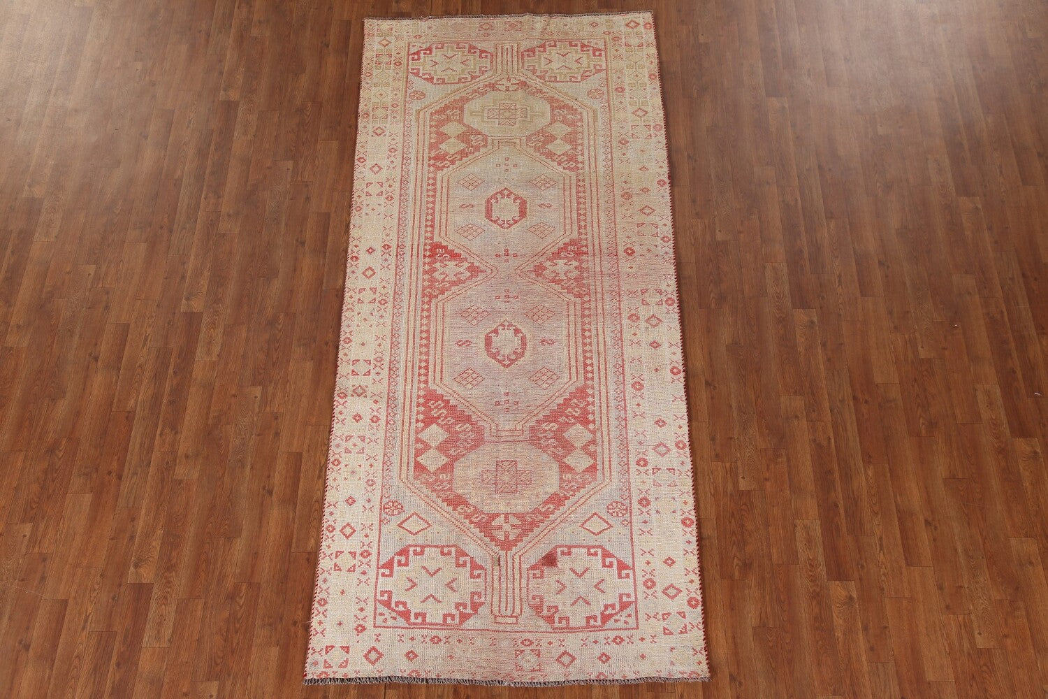 A Beautiful Genuine Persia ( Persia ) Bakhtiari rug is Hand Knotted by skillful weavers in Persia ( Persia ) with 100% Wool Material. This rug is in Very Good (Evenly Low Pile-Repair) condition. dimensions are 9' 1'' X 4' 0'' in foot and 277 X 122 in centimeter. the primary color is Beige & Ivories.