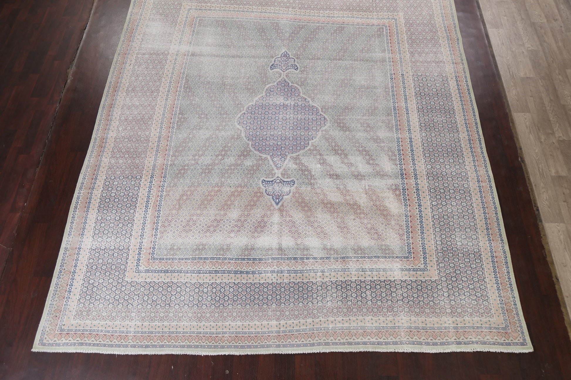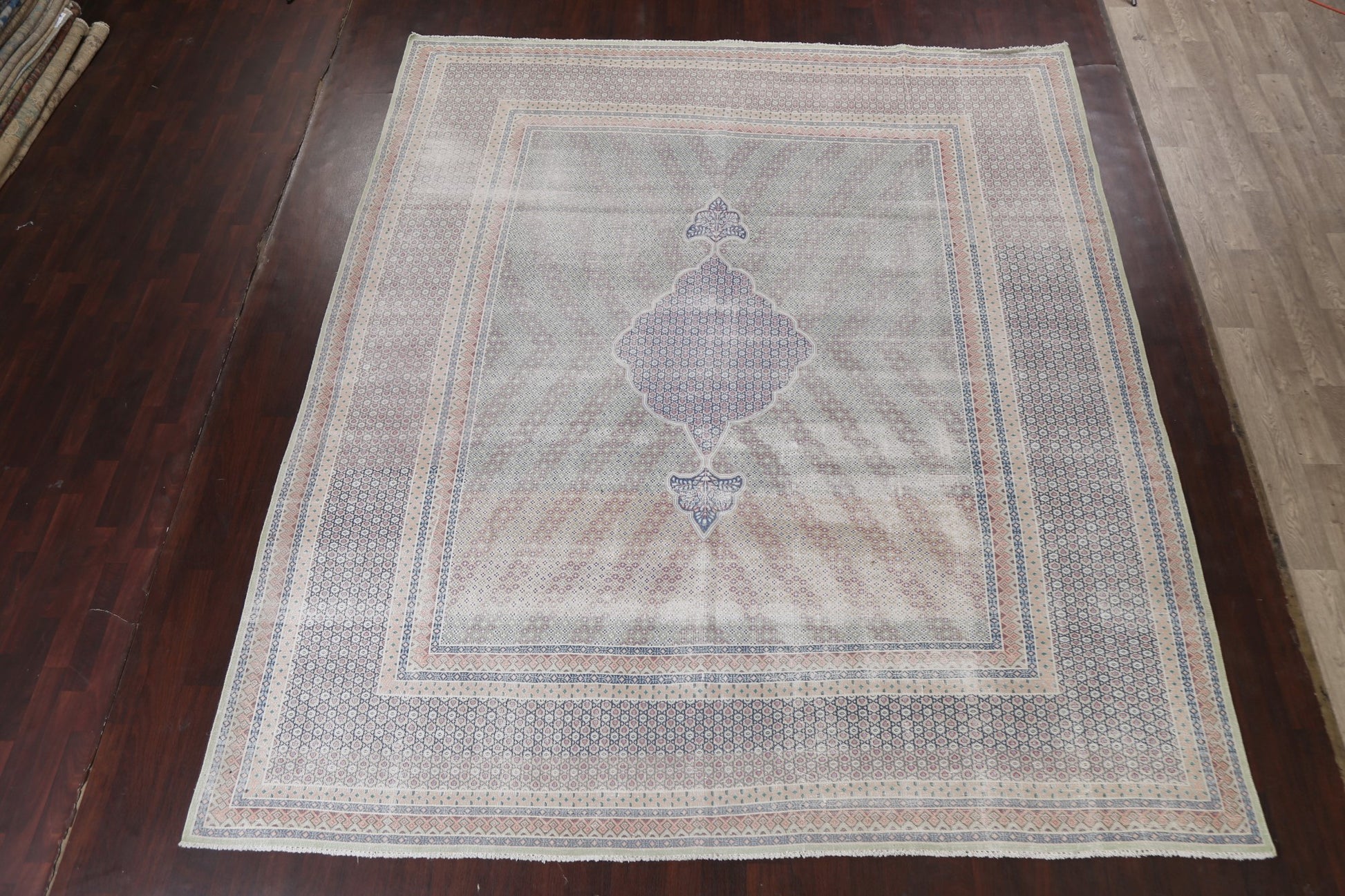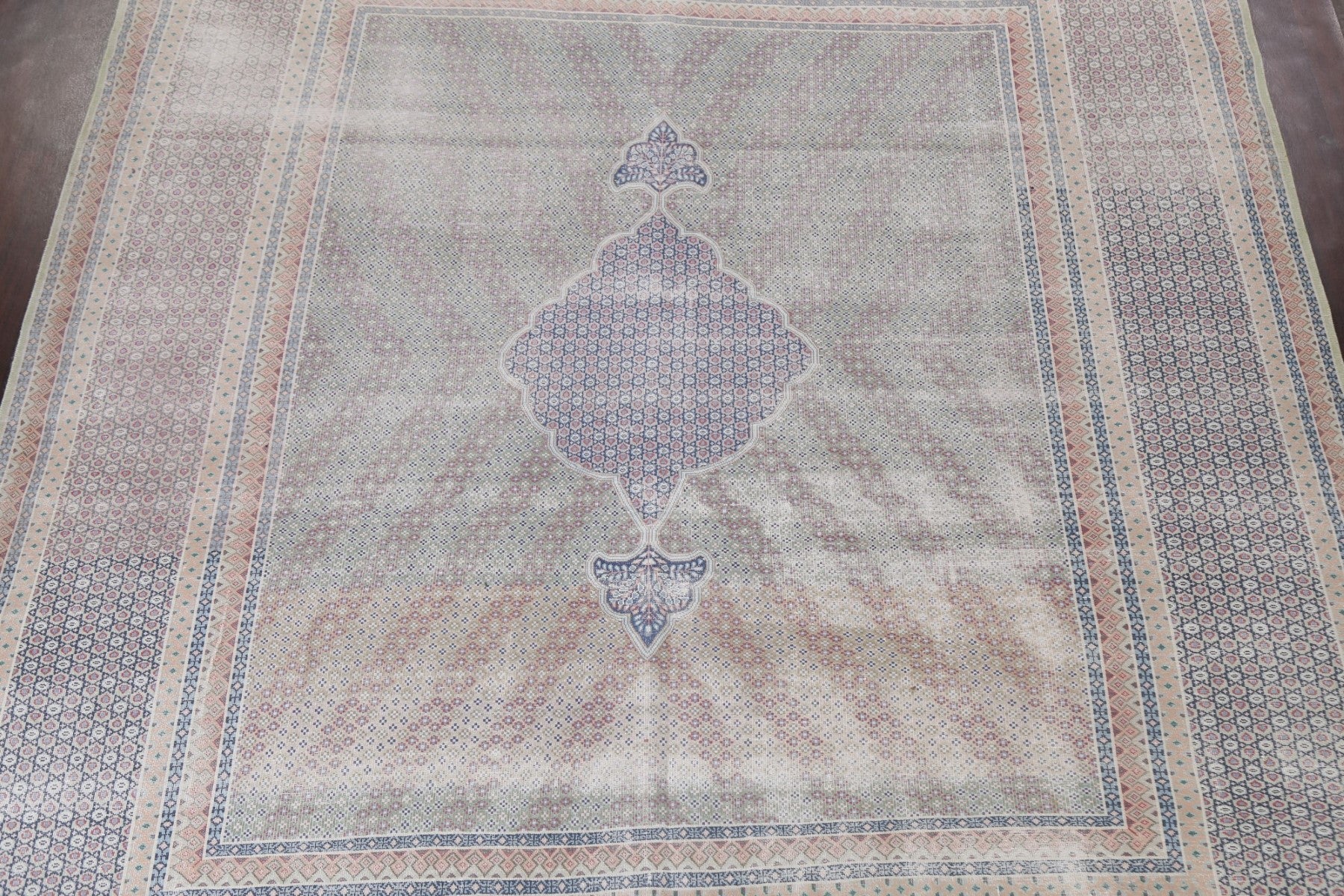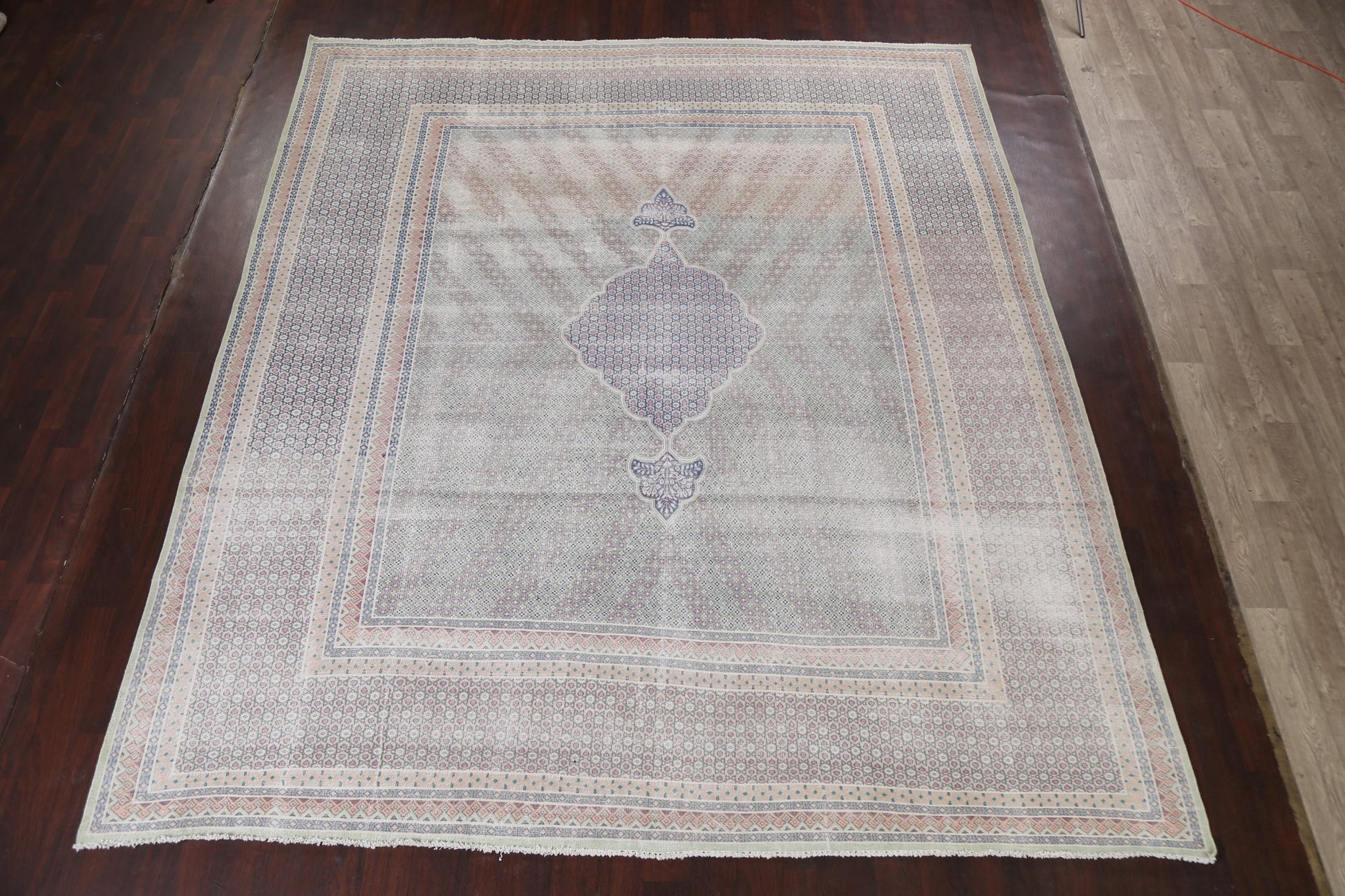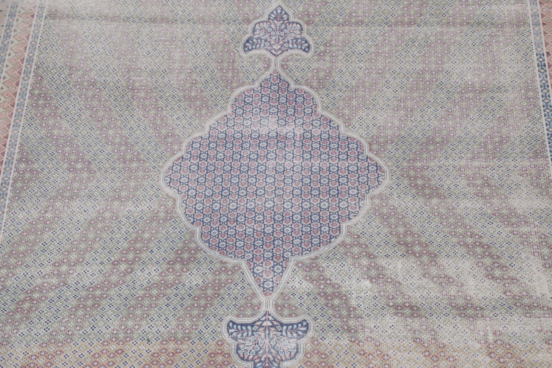 A Beautiful Genuine Persia ( Persia ) Kerman rug is Hand Knotted by skillful weavers in Persia ( Persia ) with 100% Wool Material. This rug is in Very Good (Evenly Low Pile) condition. dimensions are 11' 8'' X 10' 2'' in foot and 356 X 310 in centimeter. the primary color is Multi-Colored.