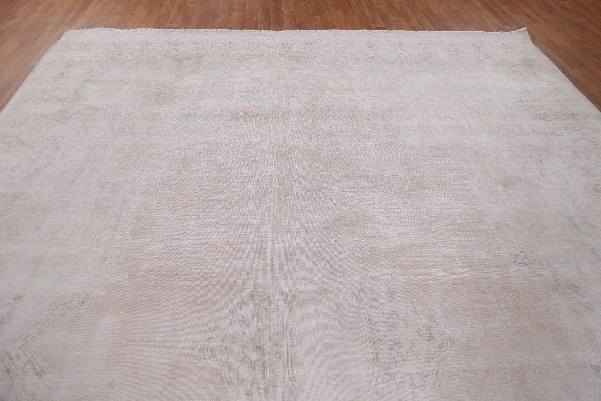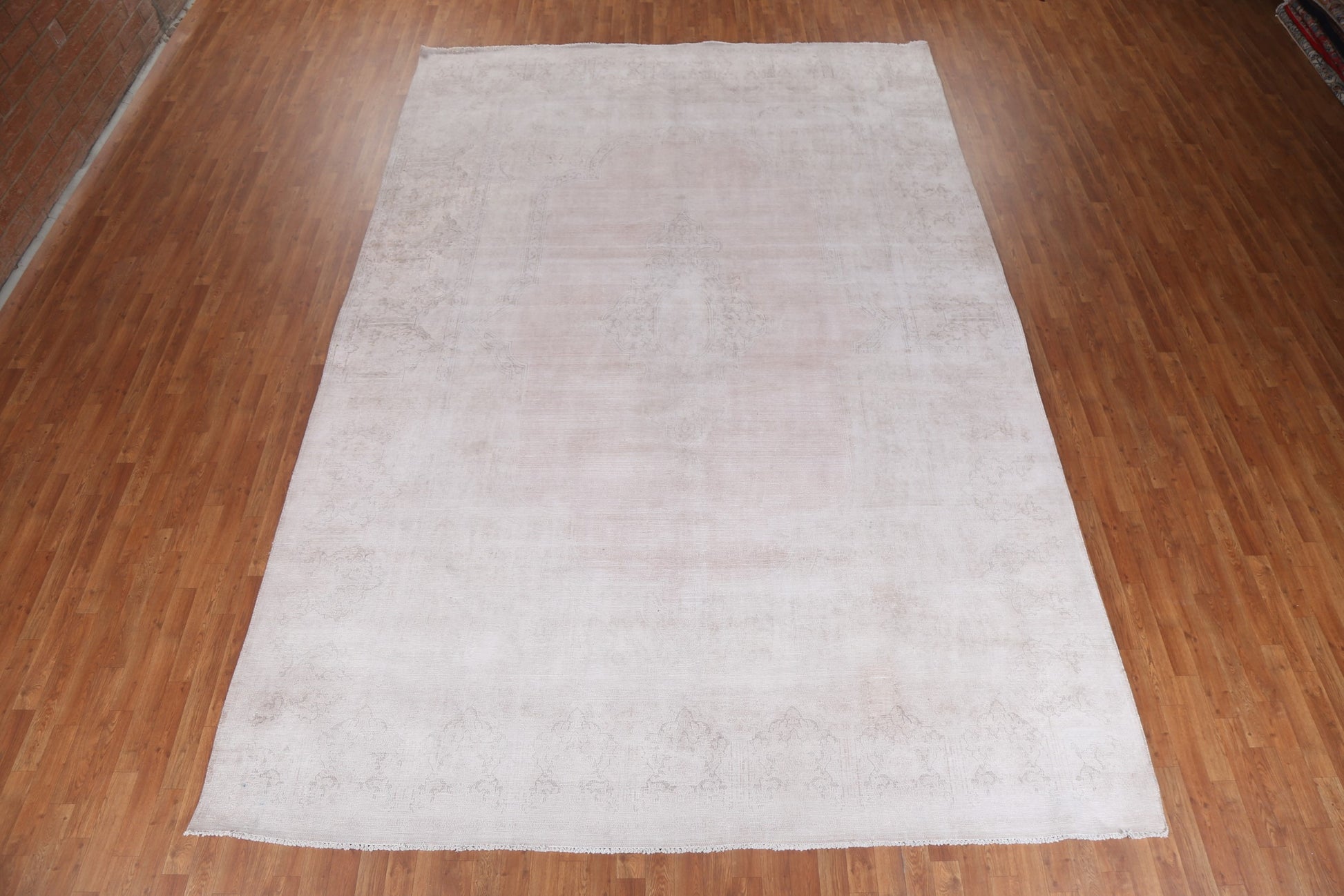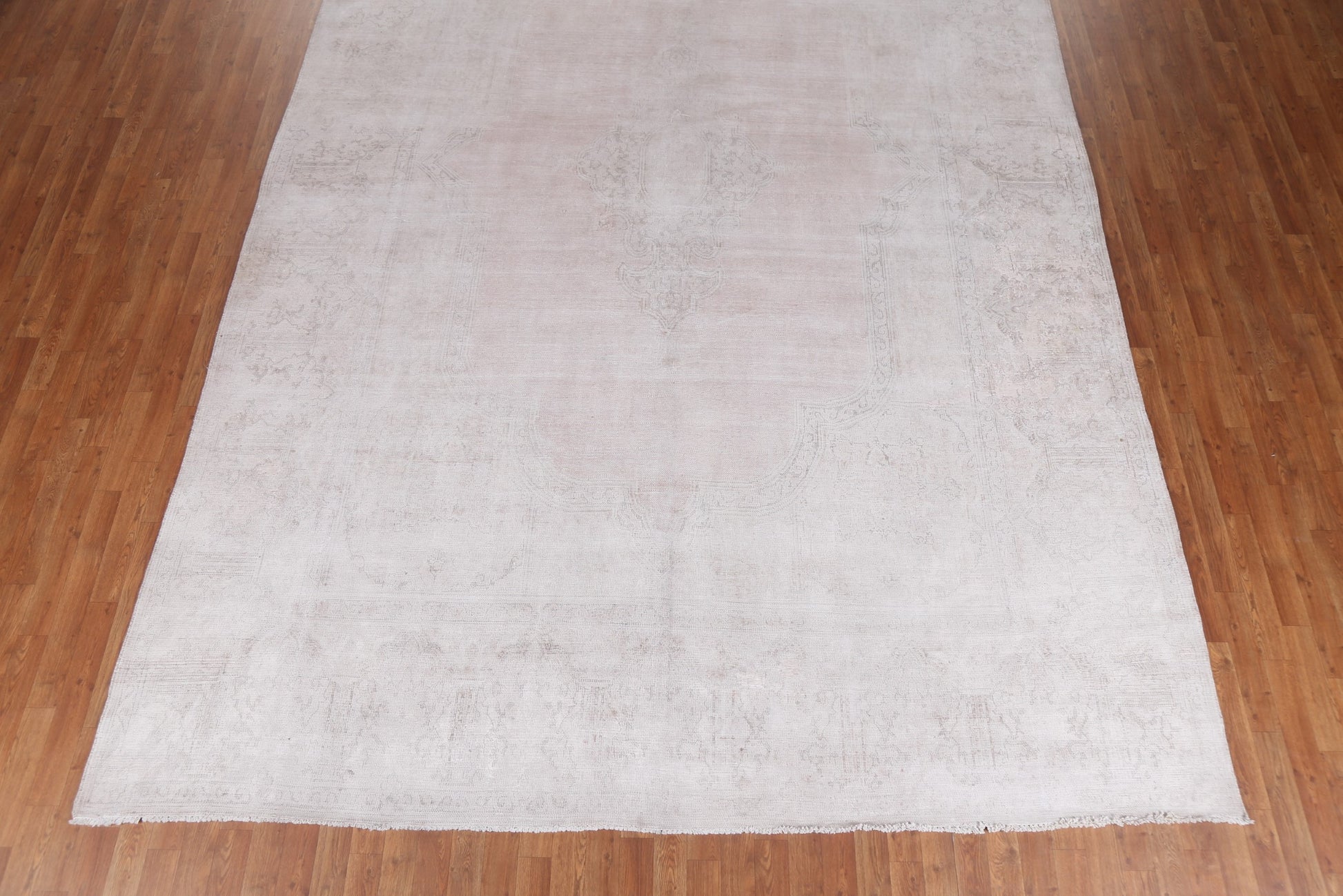 A Beautiful Genuine Persia ( Persia ) Kerman rug is Hand Knotted by skillful weavers in Persia ( Persia ) with 100% Wool Material. This rug is in Very Good (Evenly Low Pile-Repair) condition. dimensions are 14' 4'' X 9' 10'' in foot and 437 X 300 in centimeter. the primary color is Beige & Ivories.