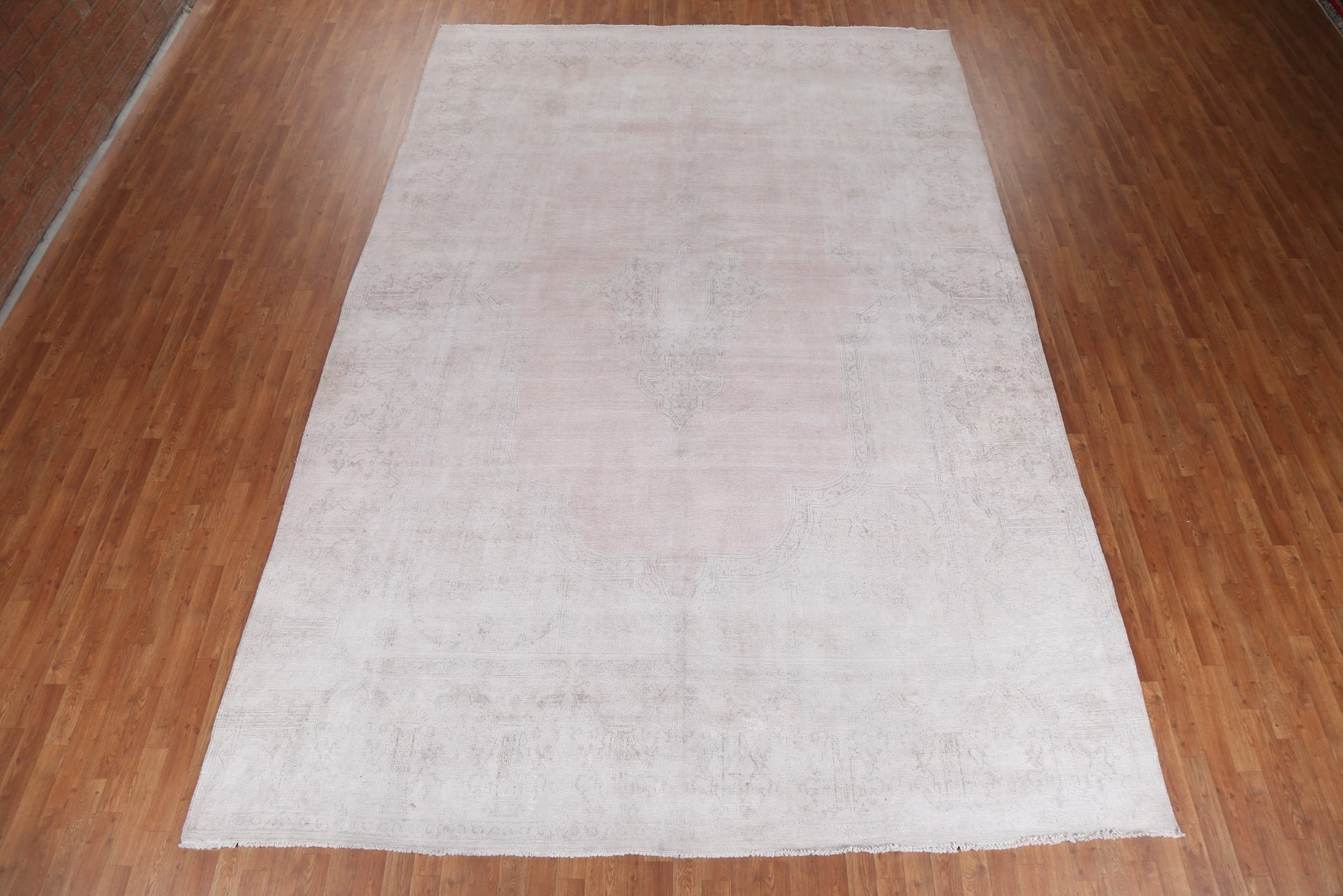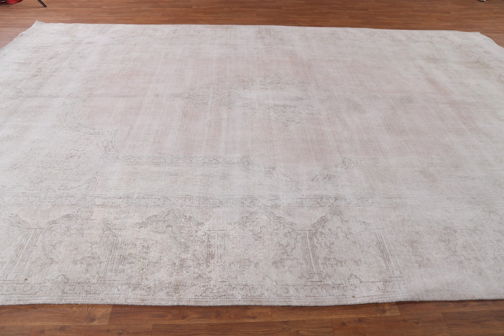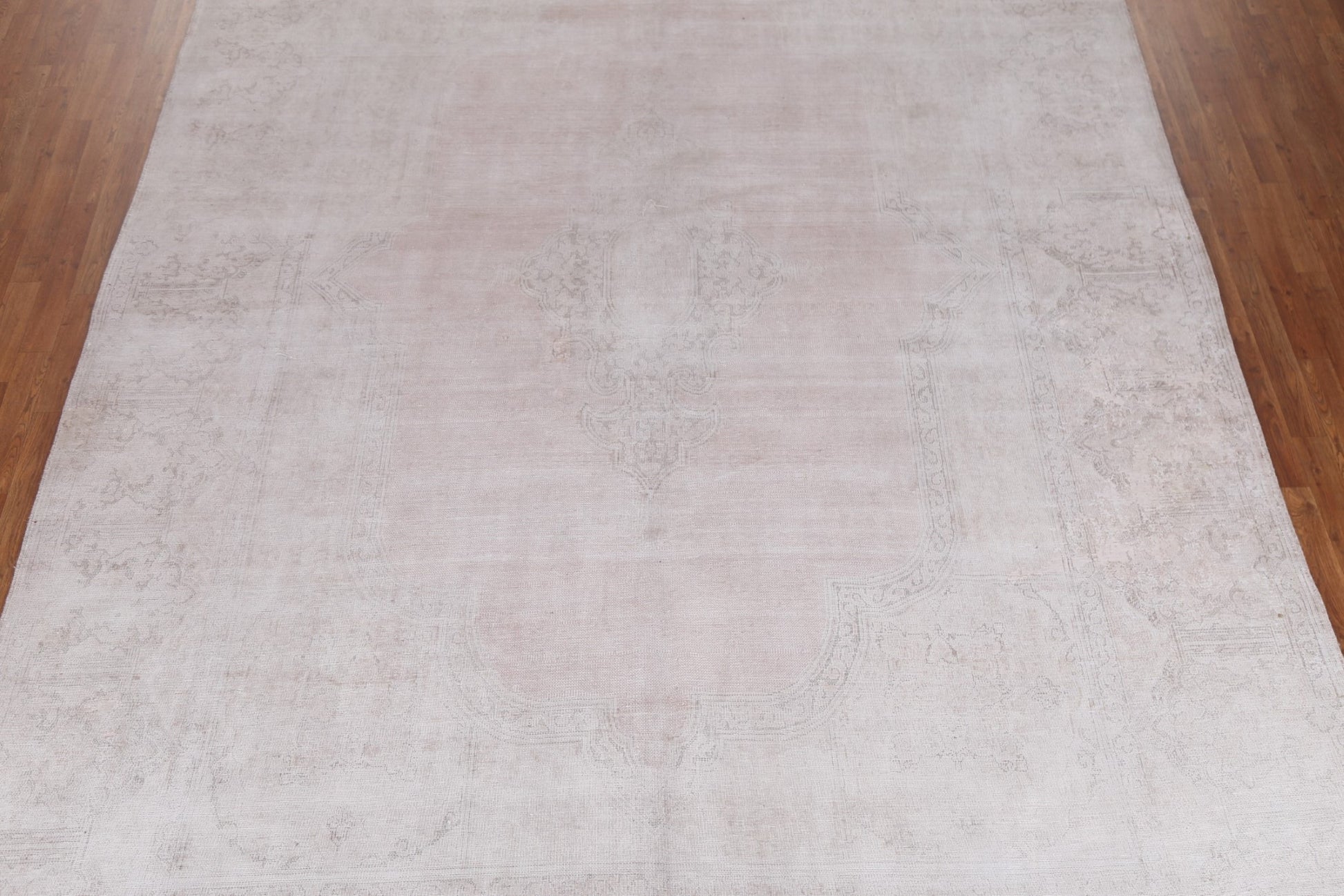 A Beautiful Genuine Persia ( Persia ) Kerman rug is Hand Knotted by skillful weavers in Persia ( Persia ) with 100% Wool Material. This rug is in Very Good (Evenly Low Pile-Repair) condition. dimensions are 14' 4'' X 9' 10'' in foot and 437 X 300 in centimeter. the primary color is Beige & Ivories.