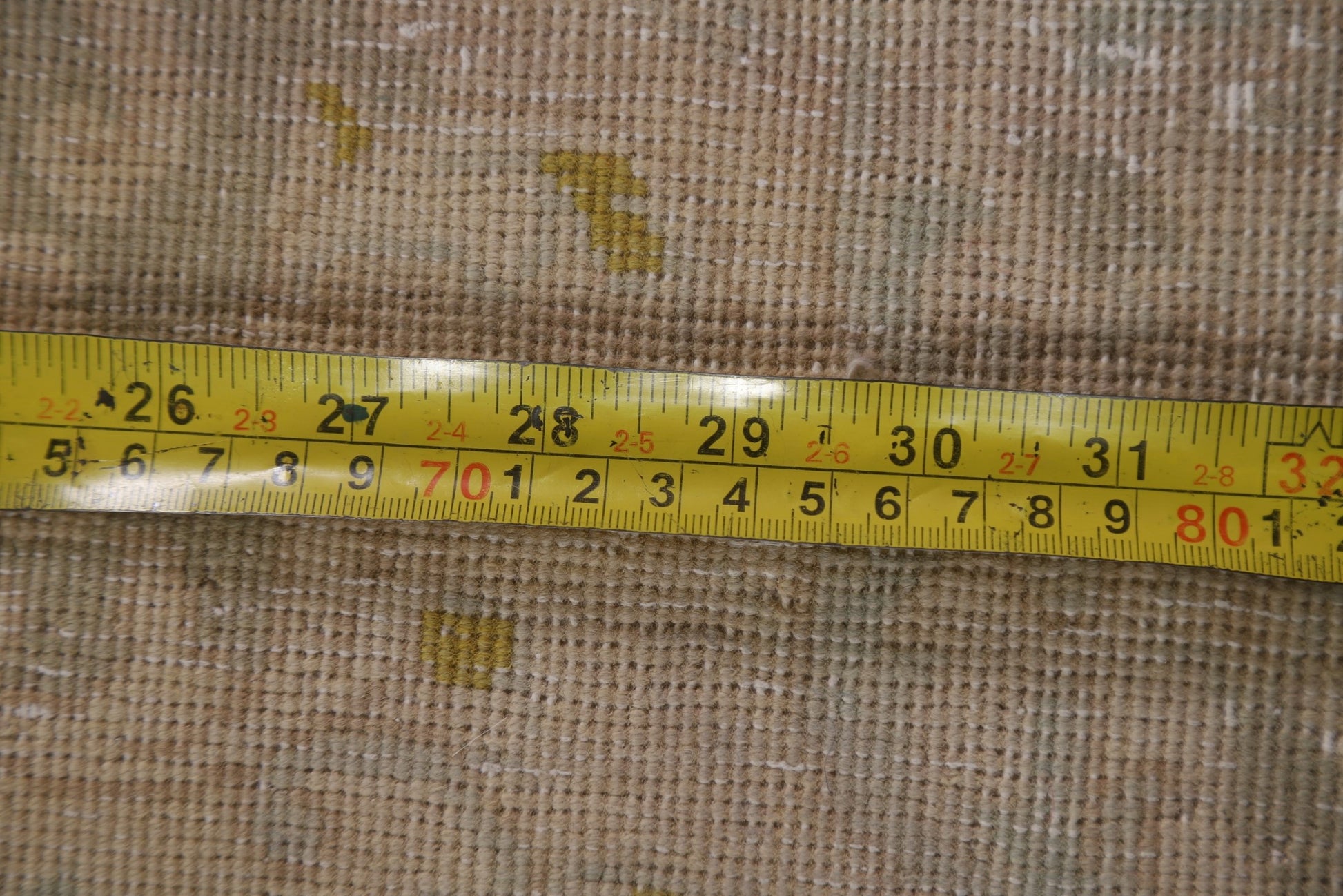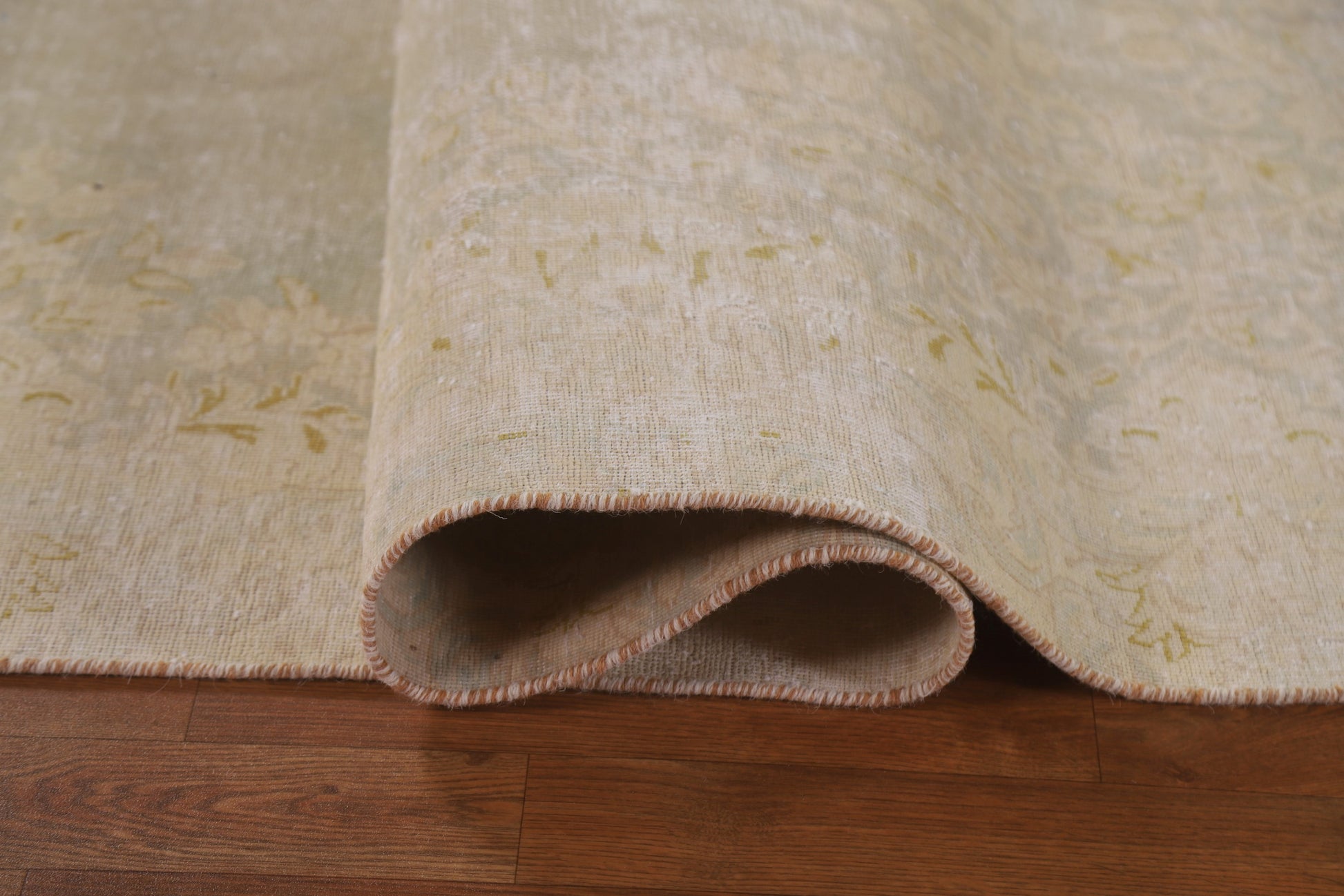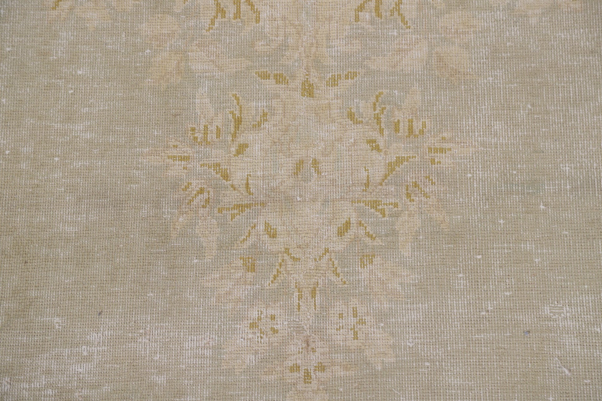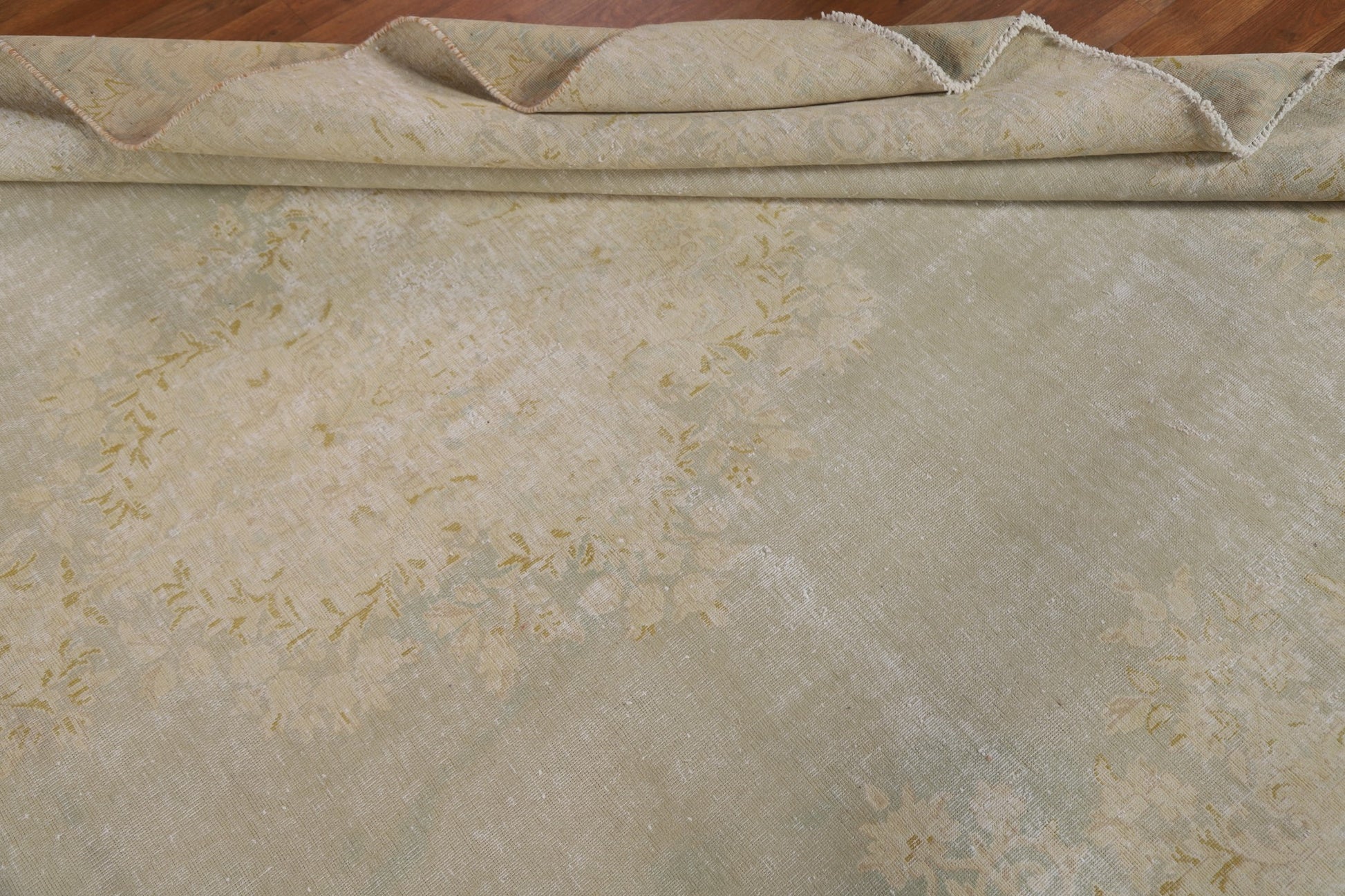 A Beautiful Genuine Persia ( Persia ) Kerman rug is Hand Knotted by skillful weavers in Persia ( Persia ) with 100% Wool Material. This rug is in Good (Evenly Low Pile-Repair) condition. dimensions are 9' 3'' X 7' 1'' in foot and 282 X 216 in centimeter. the primary color is Green.