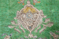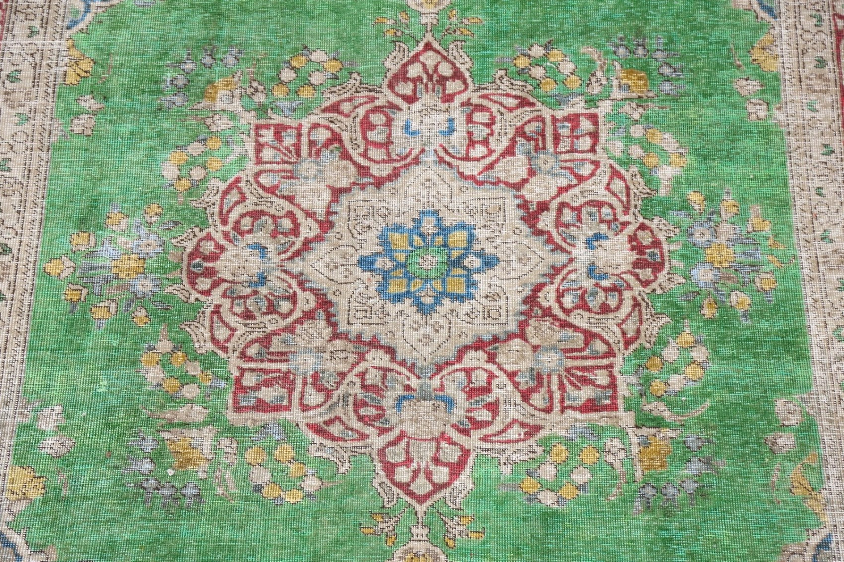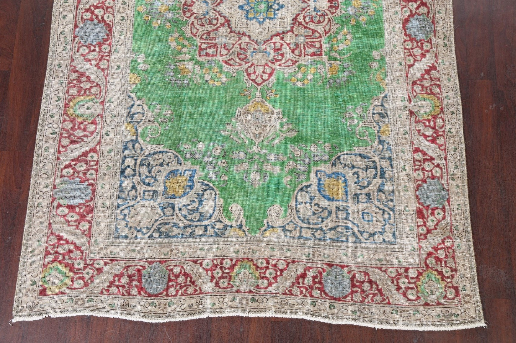 A Beautiful Genuine Persia ( Persia ) Tabriz rug is Hand Knotted by skillful weavers in Persia ( Persia ) with 100% Wool Material. This rug is in Good (Evenly Worn) condition. dimensions are 9' 8'' X 6' 4'' in foot and 295 X 193 in centimeter. the primary color is Green.