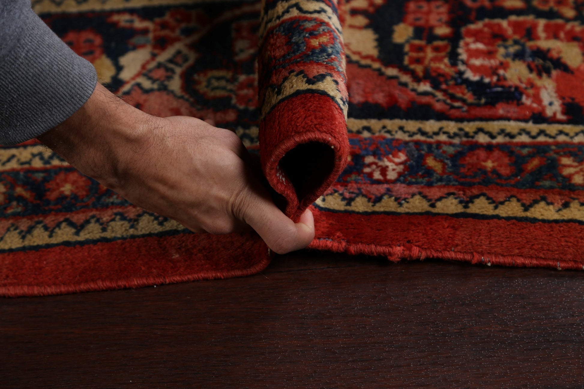 A Beautiful Genuine Persia ( Persia ) Mahal rug is Hand Knotted by skillful weavers in Persia ( Persia ) with 100% Wool Material. This rug is in Very Good ( Low Pile ) condition. dimensions are 11' 1'' X 7' 10'' in foot and 338 X 239 in centimeter. the primary color is Red.