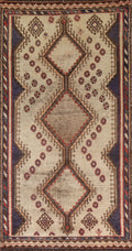 A Beautiful Genuine Persia ( Persia ) Gabbeh rug is Hand Knotted by skillful weavers in Persia ( Persia ) with 100% Wool Material. This rug is in Very Good(Evenly Low Pile) condition. dimensions are 6' 9'' X 3' 1'' in foot and 206 X 94 in centimeter. the primary color is Beige & Ivories.