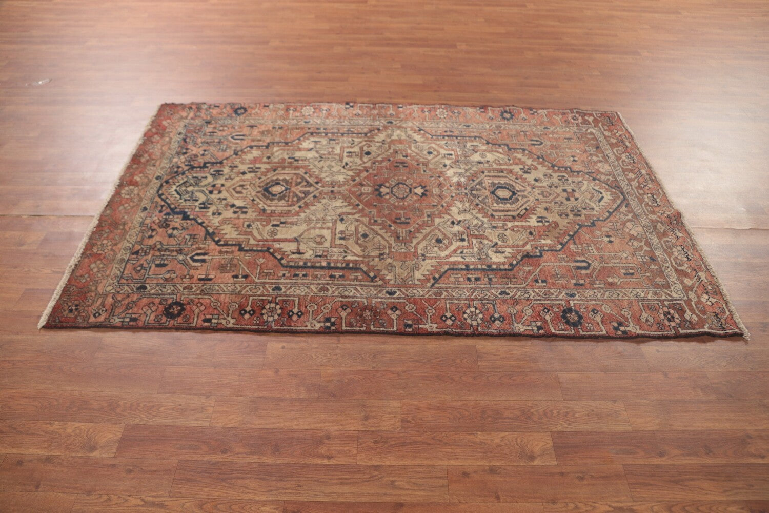 A Beautiful Genuine Persia ( Persia ) Bakhtiari rug is Hand Knotted by skillful weavers in Persia ( Persia ) with 100% Wool Material. This rug is in Very Good (Evenly Low Pile-small Repair) condition. dimensions are 6' 6'' X 4' 1'' in foot and 198 X 124 in centimeter. the primary color is Beige & Ivories.