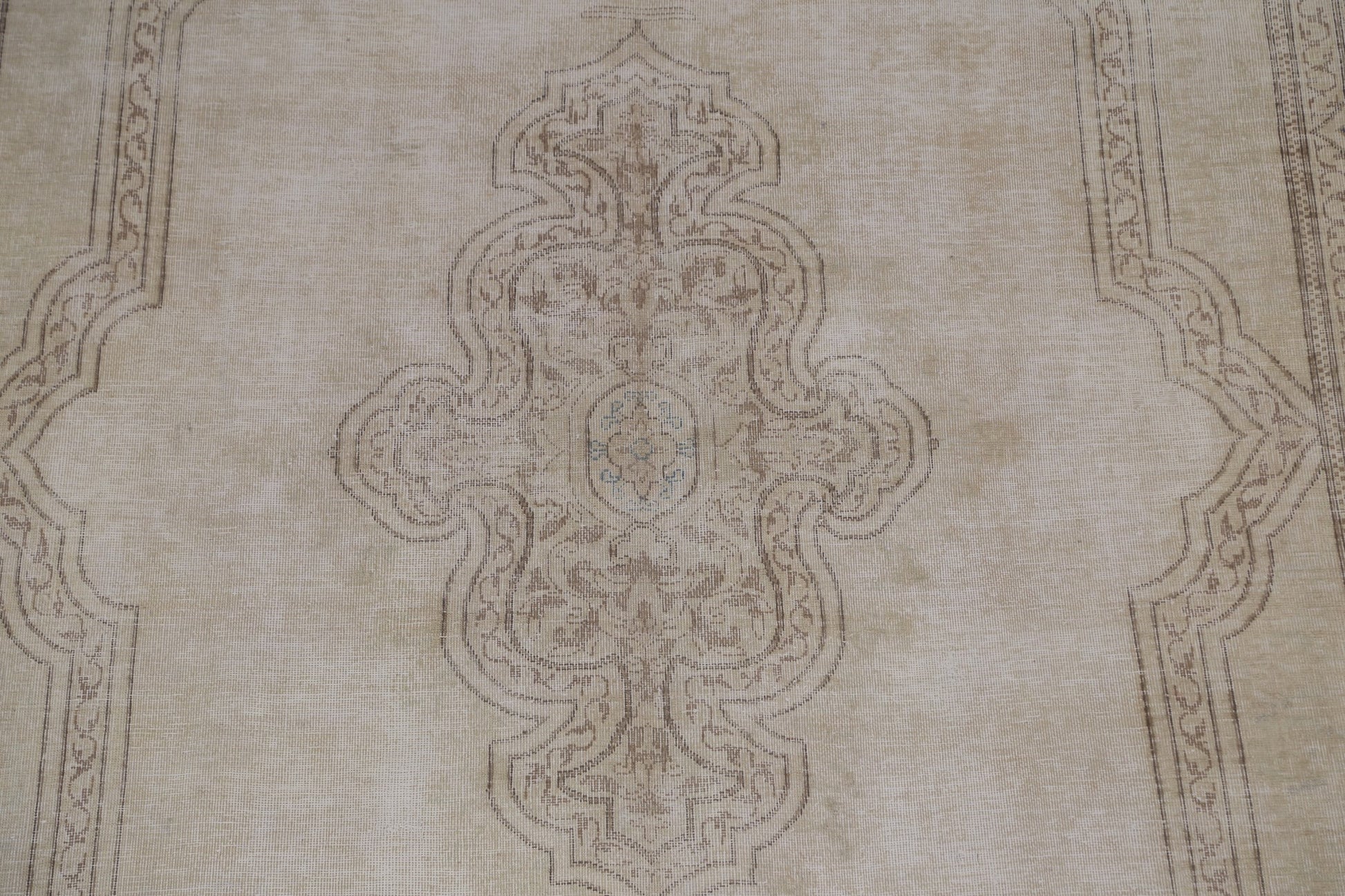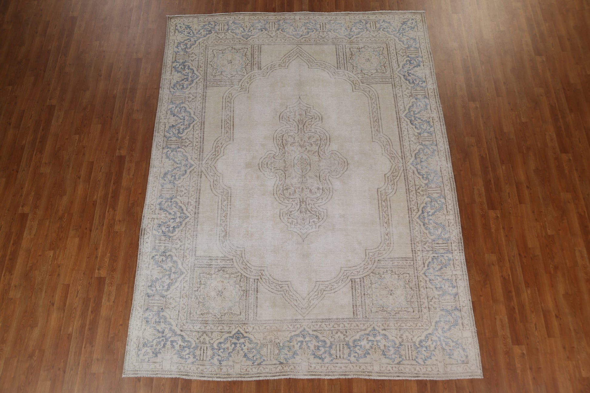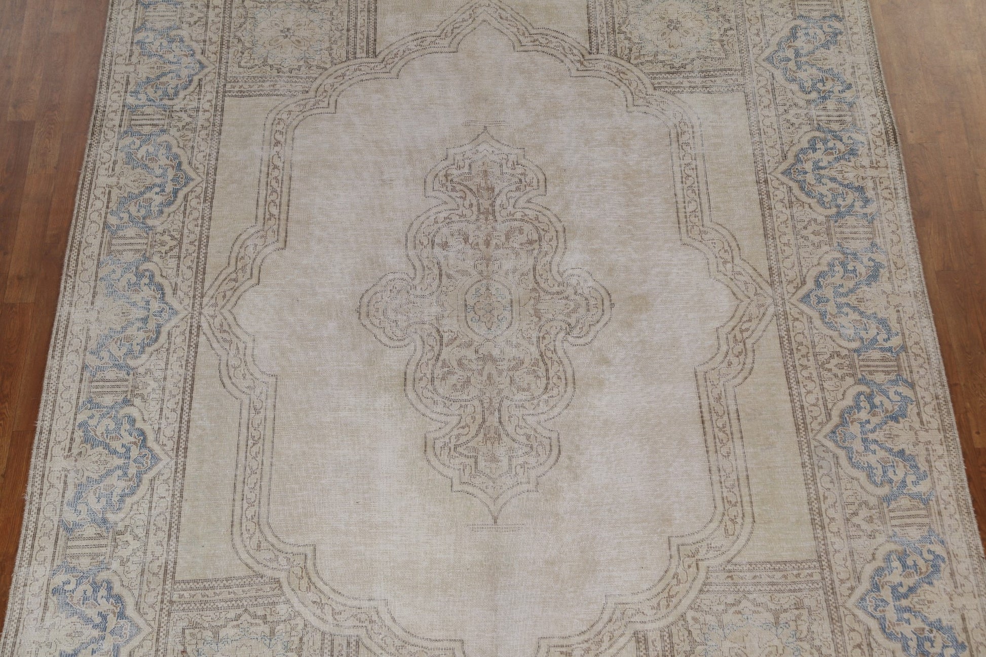 A Beautiful Genuine Persia ( Persia ) Kerman rug is Hand Knotted by skillful weavers in Persia ( Persia ) with 100% Wool Material. This rug is in Very Good (Evenly Low Pile) condition. dimensions are 10' 6'' X 7' 9'' in foot and 320 X 236 in centimeter. the primary color is Beige & Ivories.