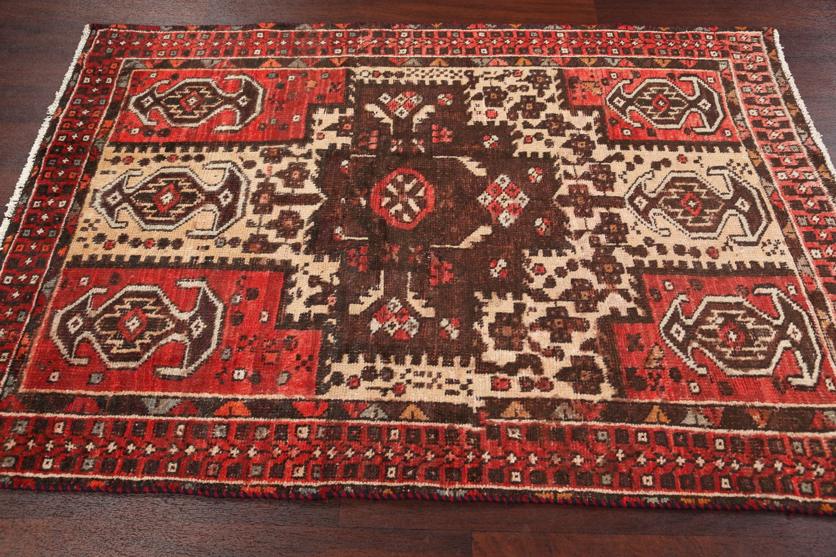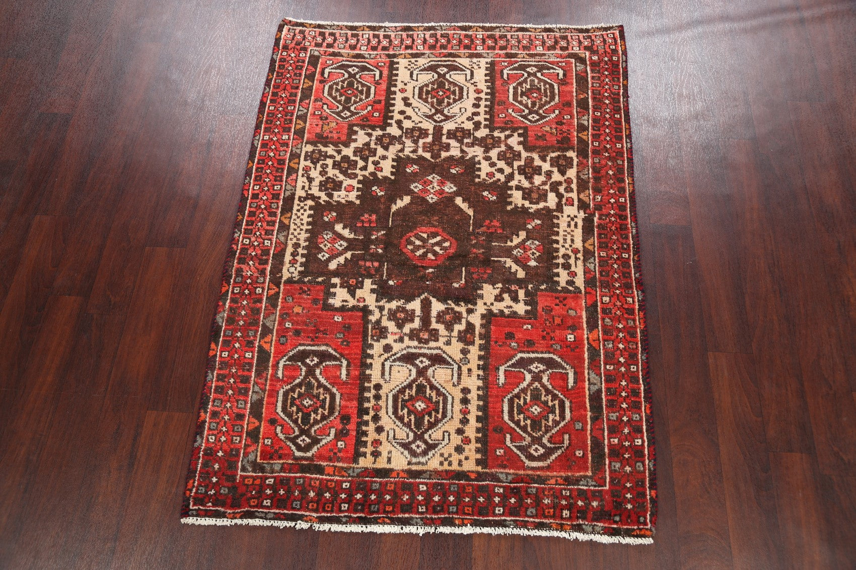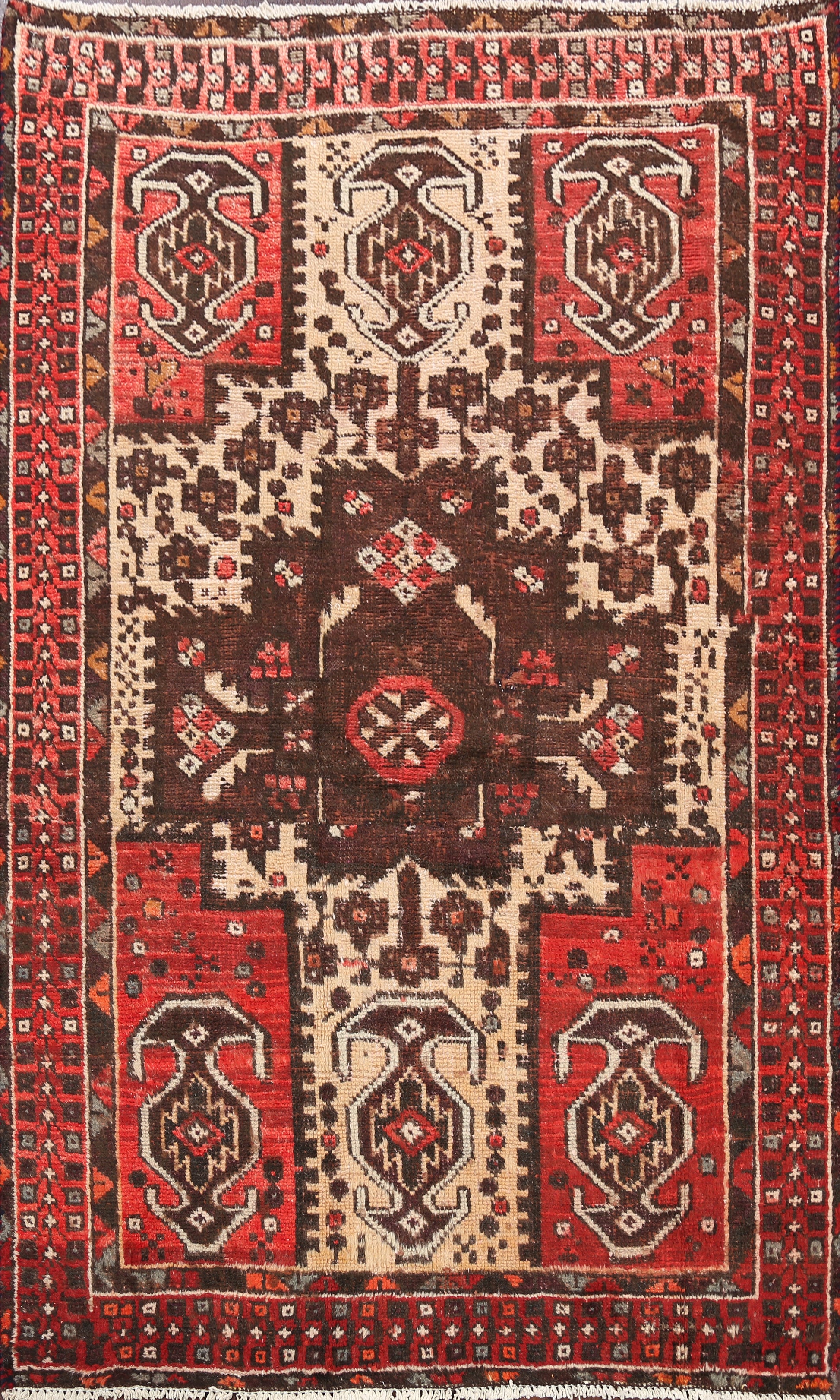 Antique Geometric Hamedan Persian Area Rug 4x6