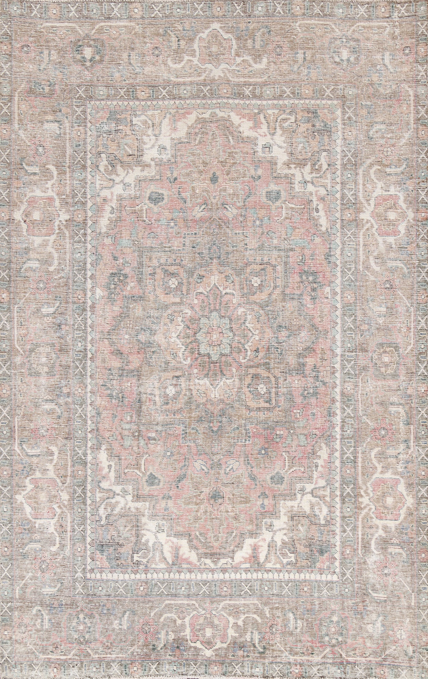 Antique Geometric Heriz Persian Area Rug 7x9