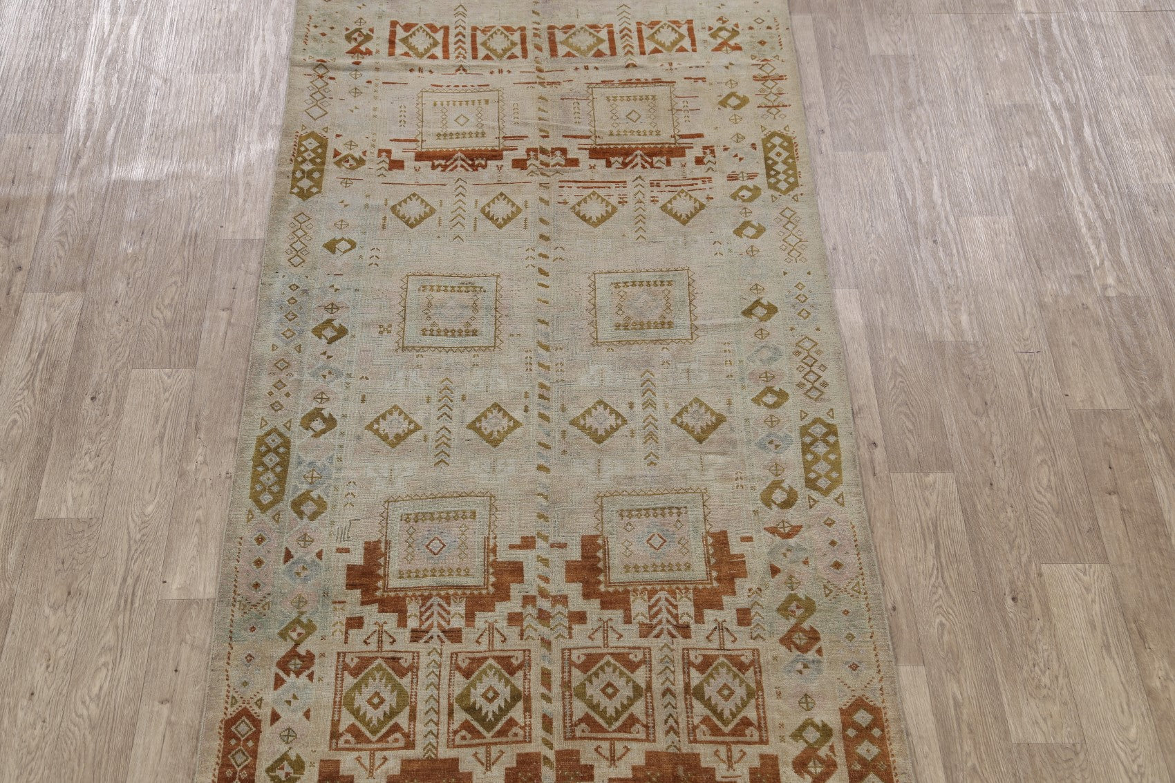 Antique Geometric Kazak Vegetable Dye Russian Area Rug 5x12