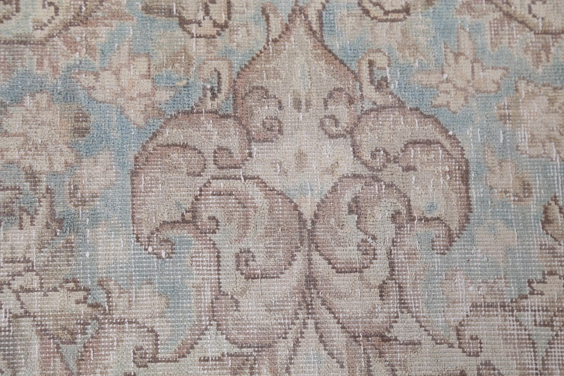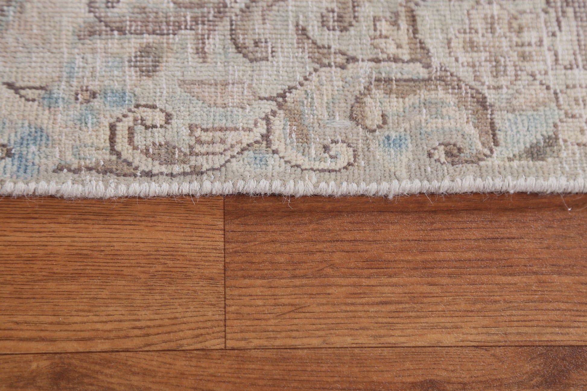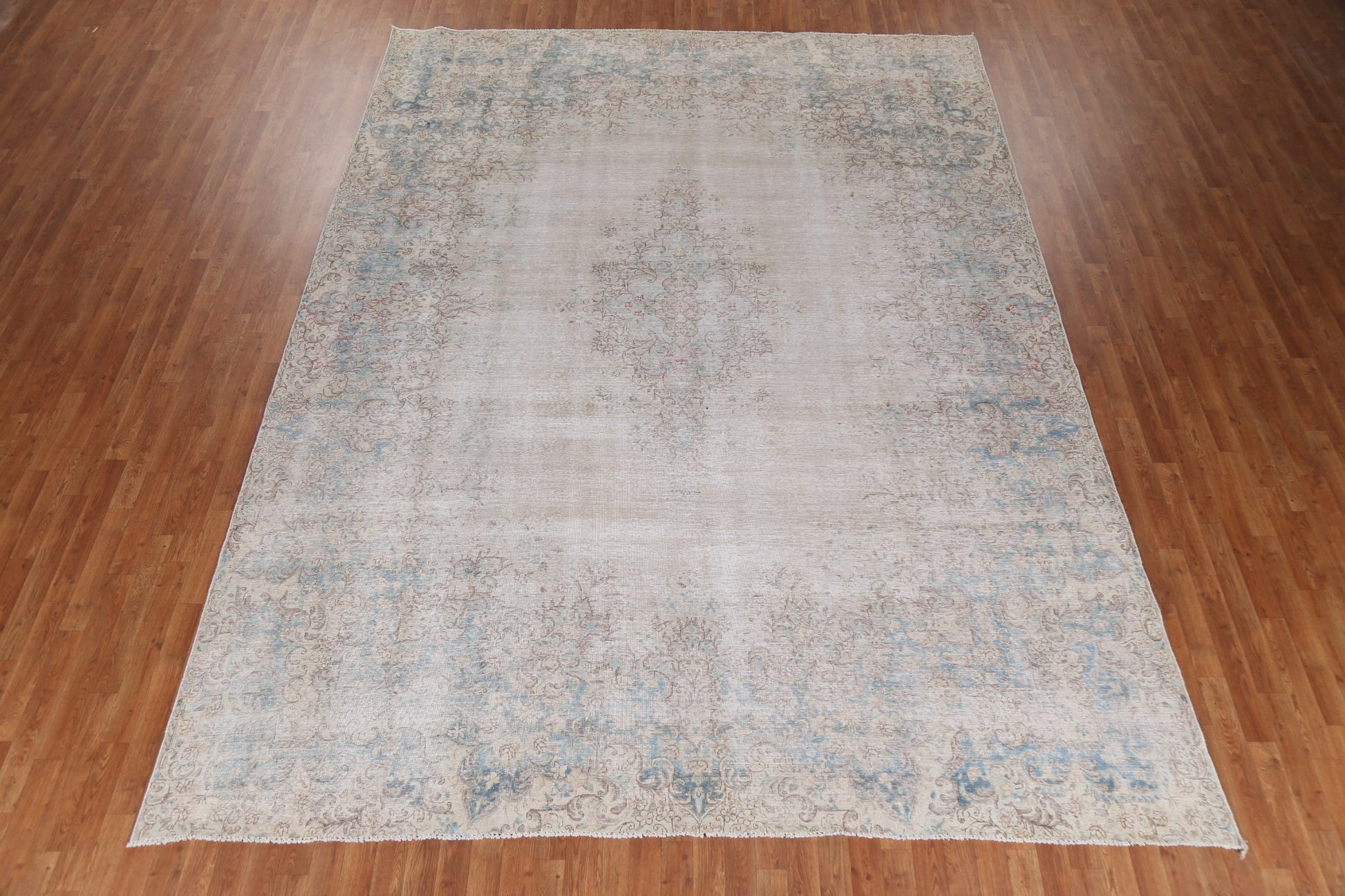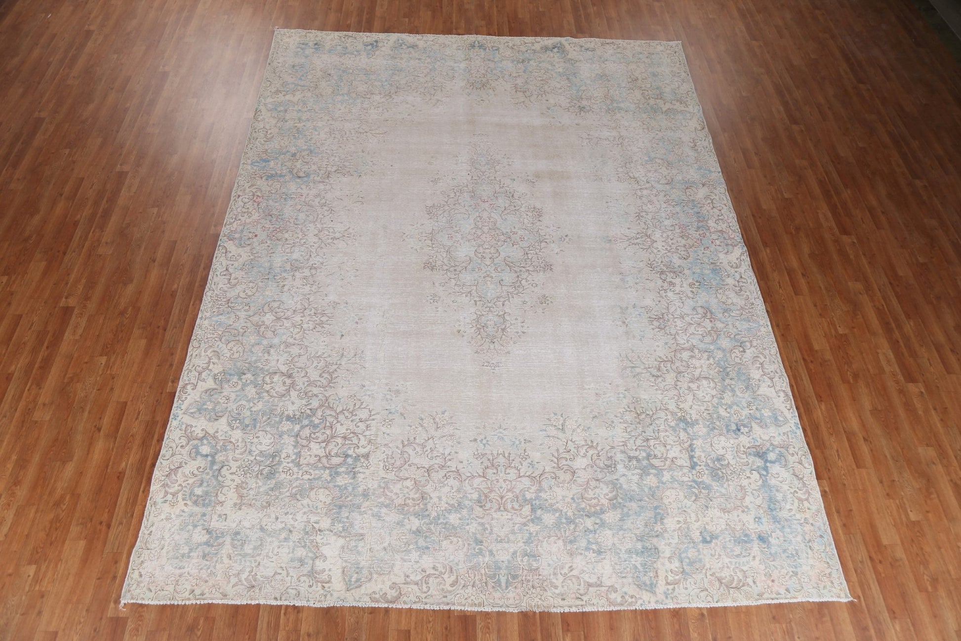 A Beautiful Genuine Persia ( Persia ) Kerman rug is Hand Knotted by skillful weavers in Persia ( Persia ) with 100% Wool Material. This rug is in Very Good (Evenly Low Pile-Repair) condition. dimensions are 12' 11'' X 9' 7'' in foot and 394 X 292 in centimeter. the primary color is Beige & Ivories.