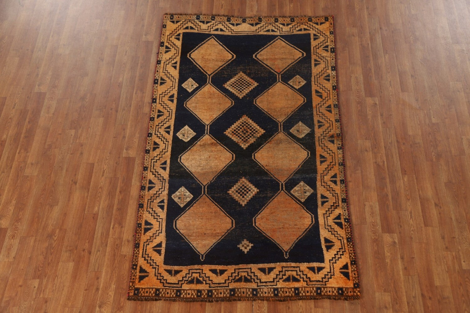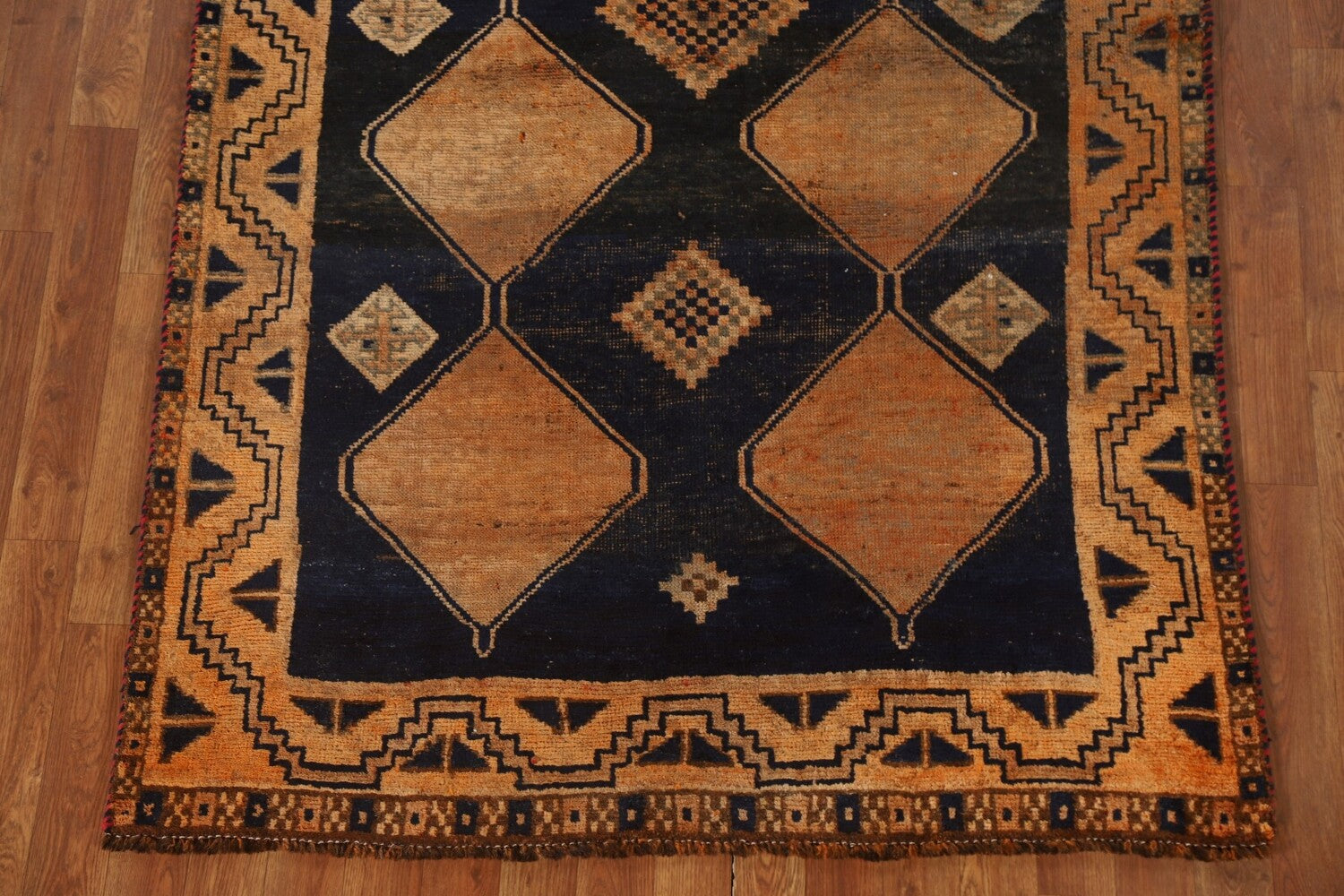A Beautiful Genuine Persia ( Persia ) Lori rug is Hand Knotted by skillful weavers in Persia ( Persia ) with 100% Wool Material. This rug is in Very Good (Evenly Low Pile) condition. dimensions are 7' 0'' X 4' 3'' in foot and 213 X 130 in centimeter. the primary color is Navy Blue & Blues.