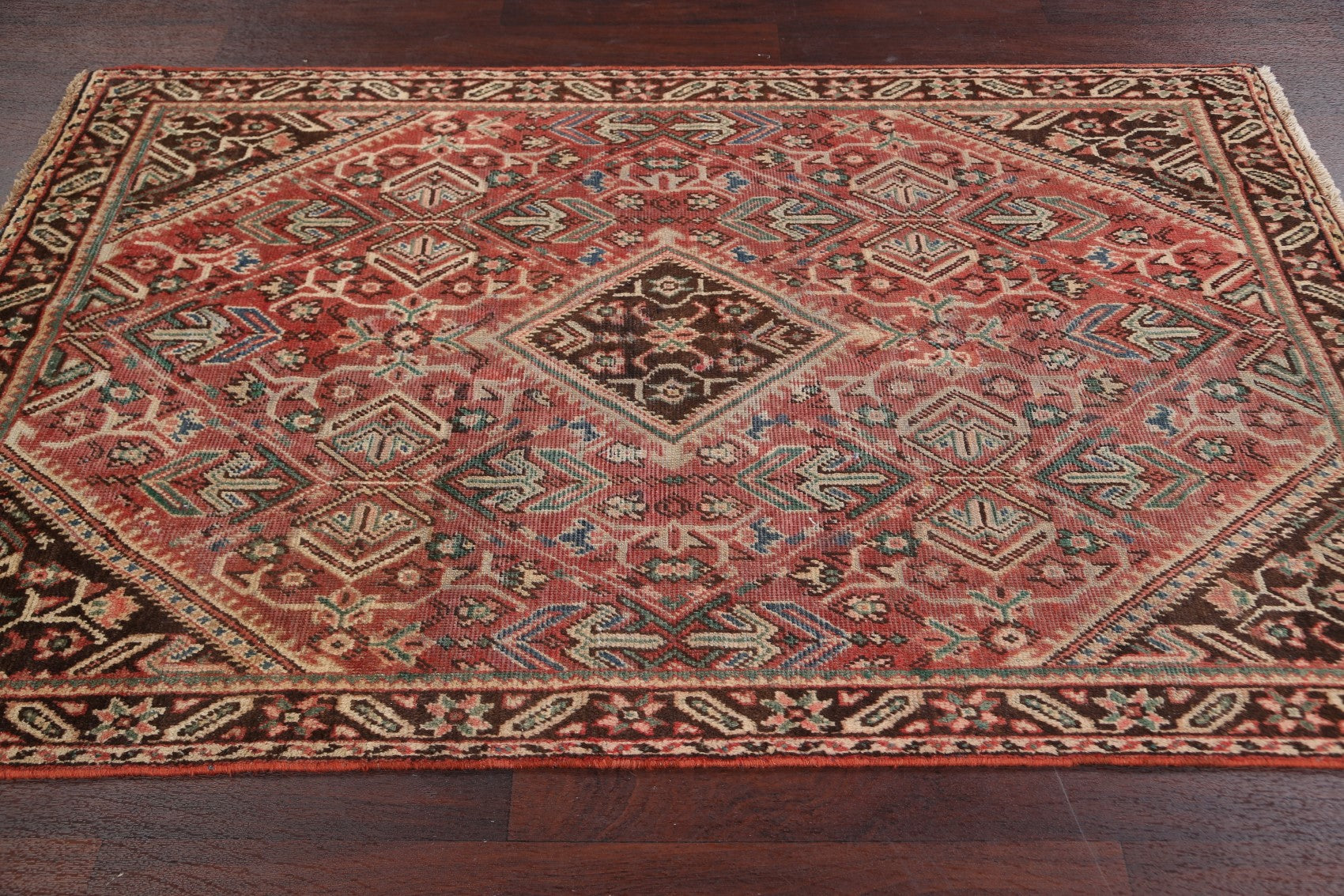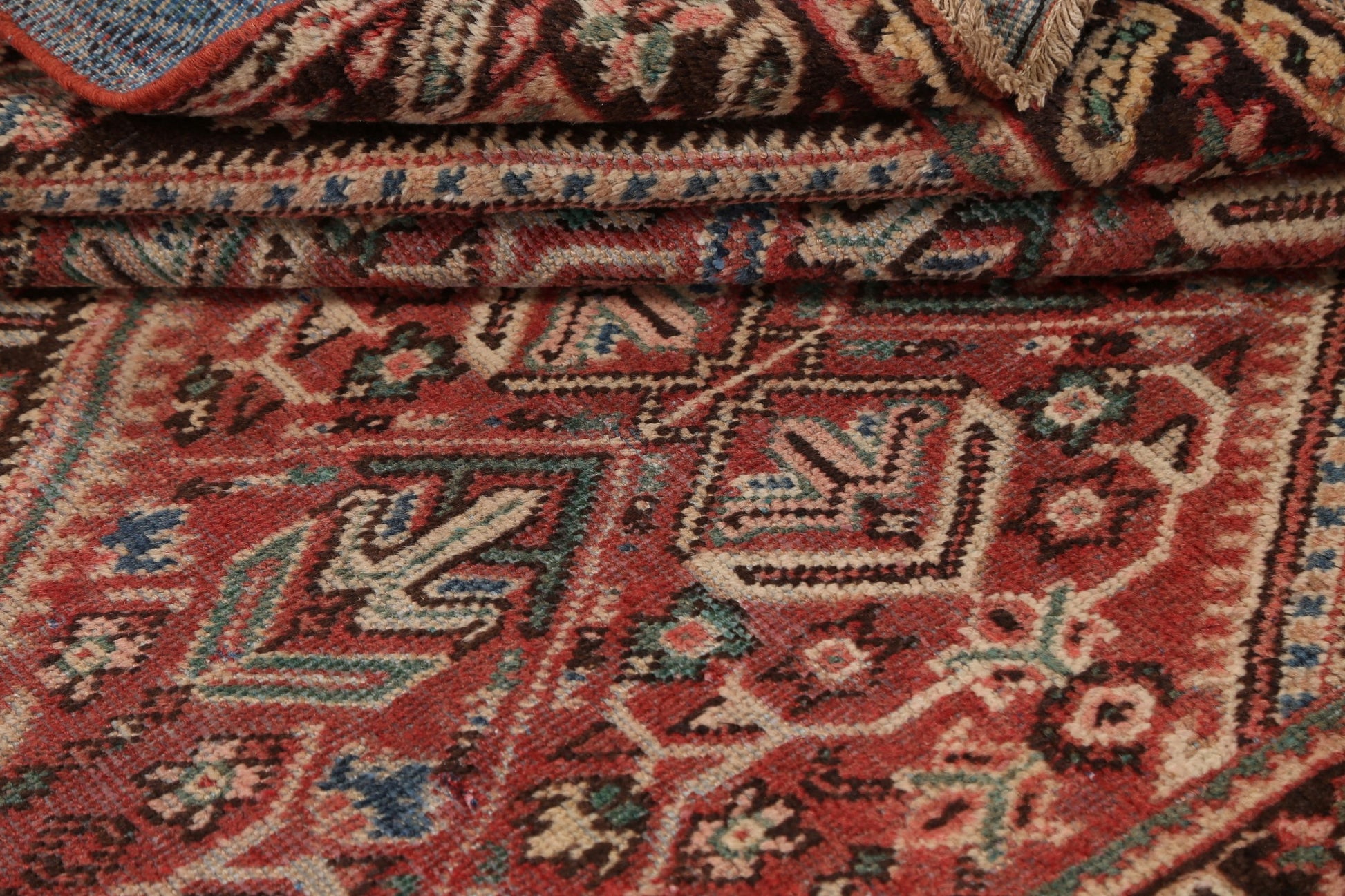 A Beautiful Genuine Persia ( Persia ) Mahal rug is Hand Knotted by skillful weavers in Persia ( Persia ) with 100% Wool Material. This rug is in Very Good (Low Pile-Repair) condition. dimensions are 6' 6'' X 4' 2'' in foot and 198 X 127 in centimeter. the primary color is Red.
